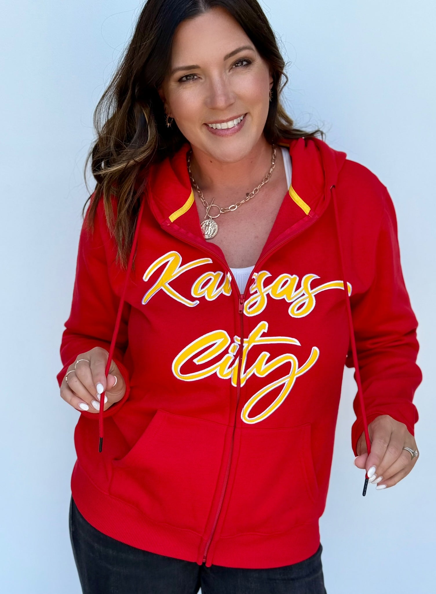 Celebrate your Kansas City football pride with our exclusive long cardigan! Perfect for layering on game day or any day you want to show your team spirit. Made with high-quality materials, this cardigan ensures comfort and style.