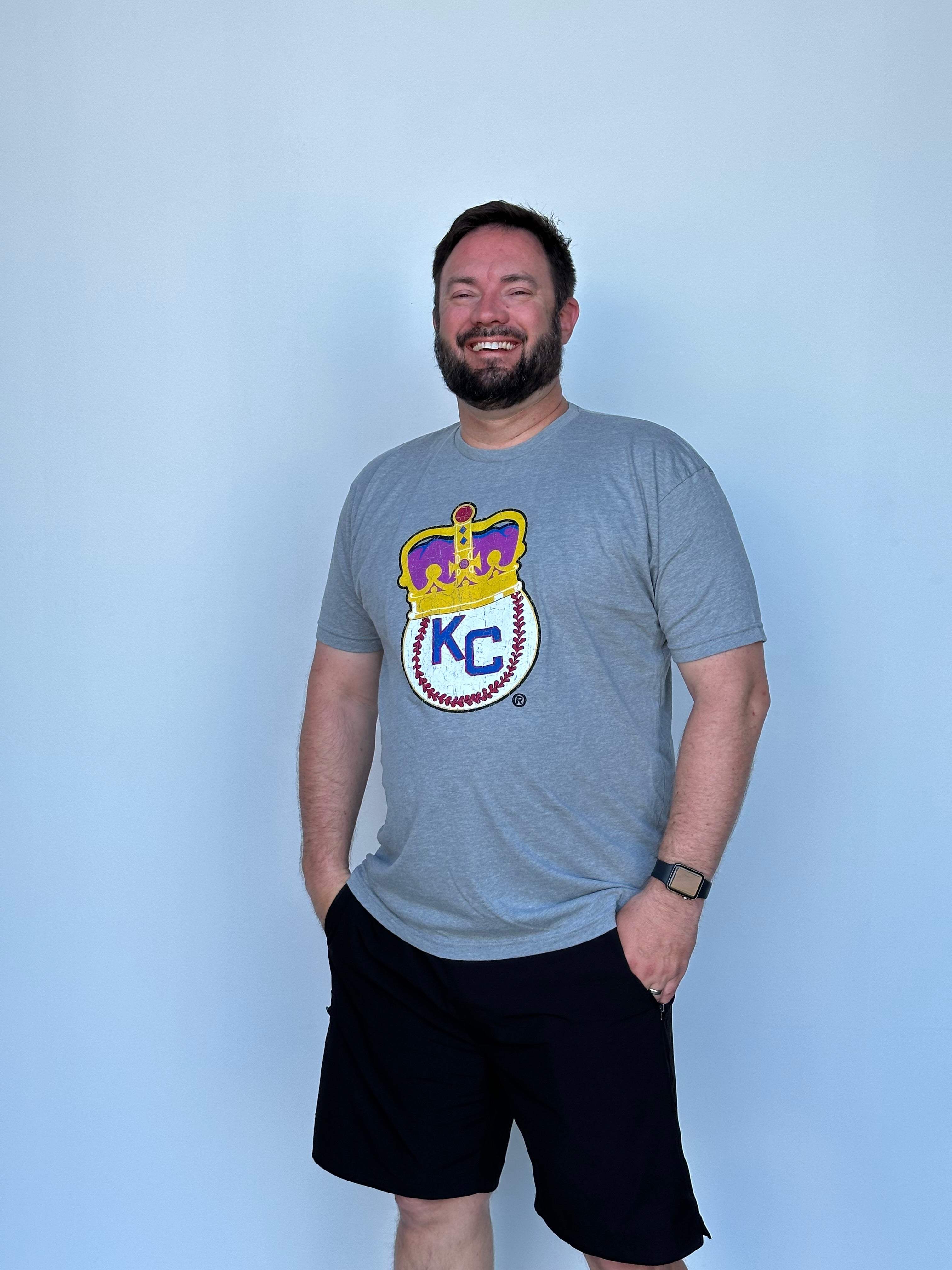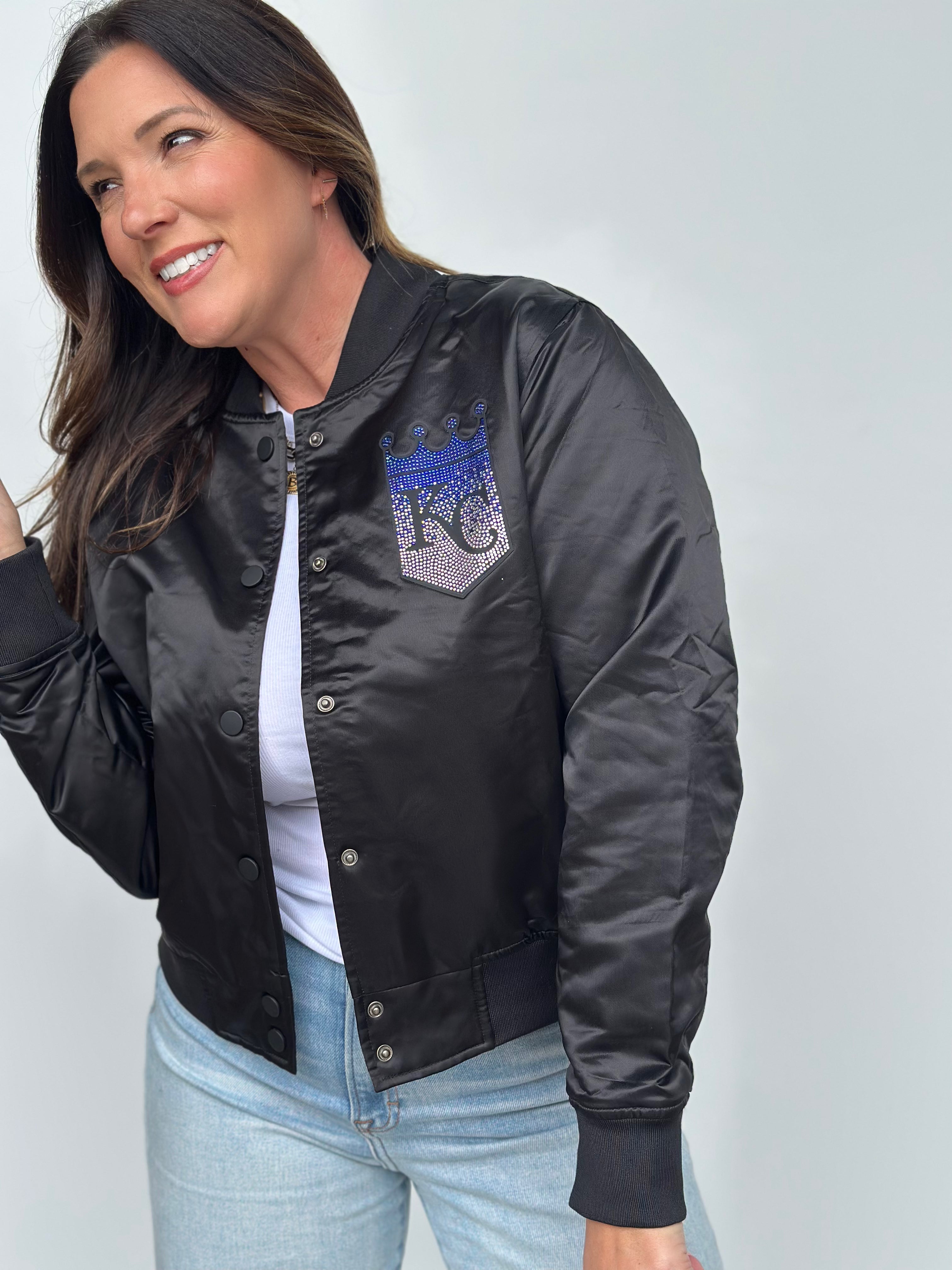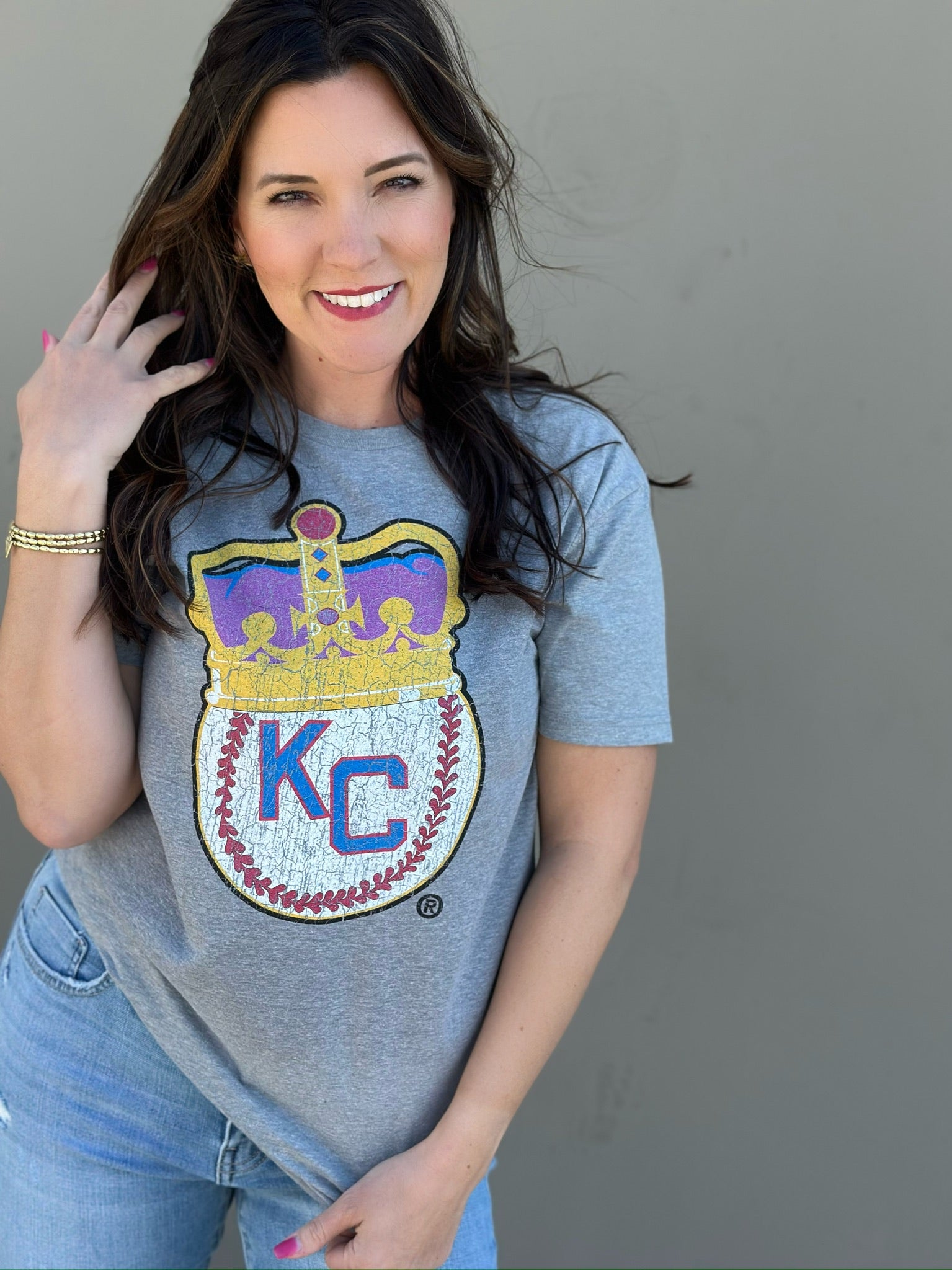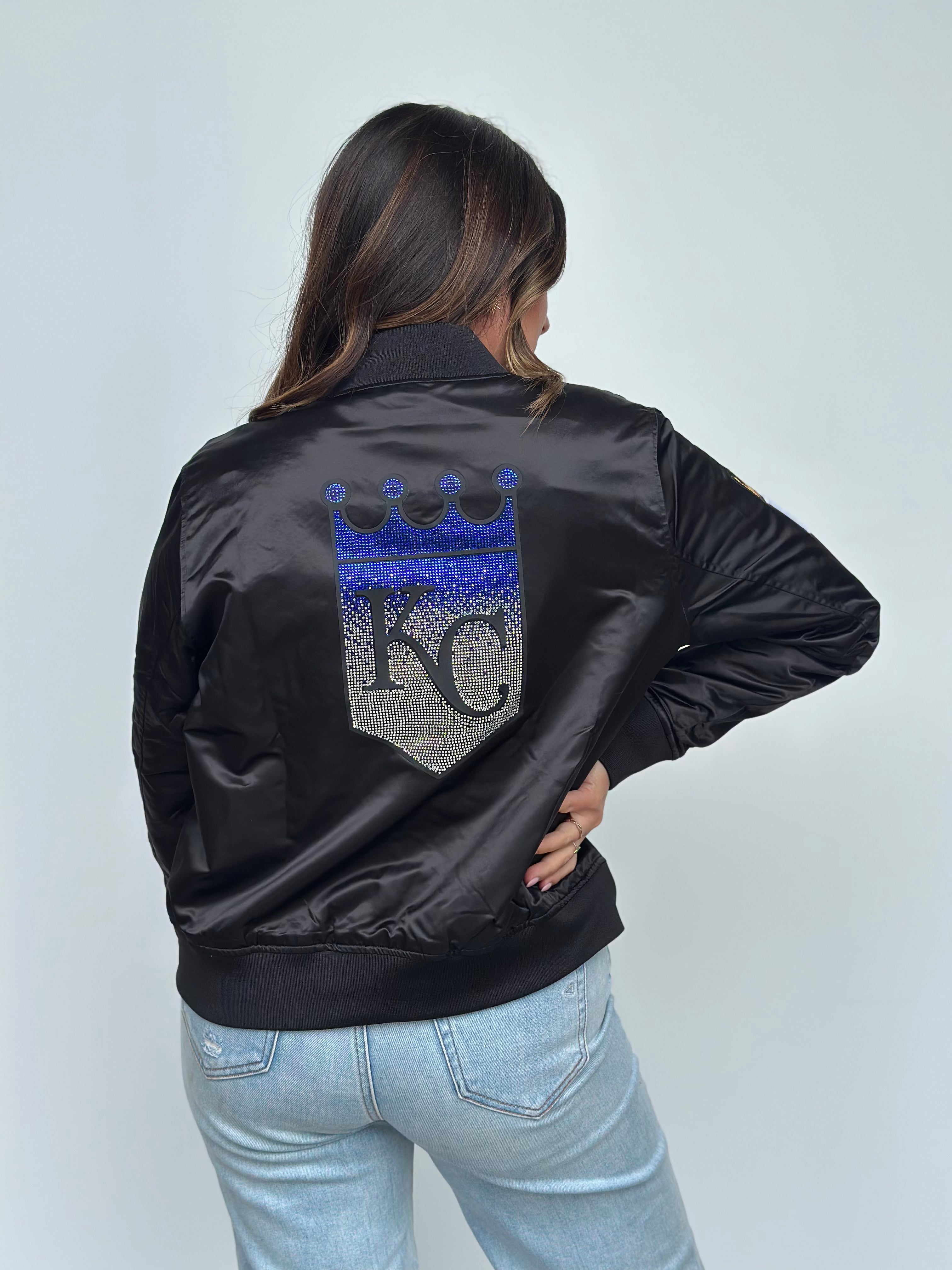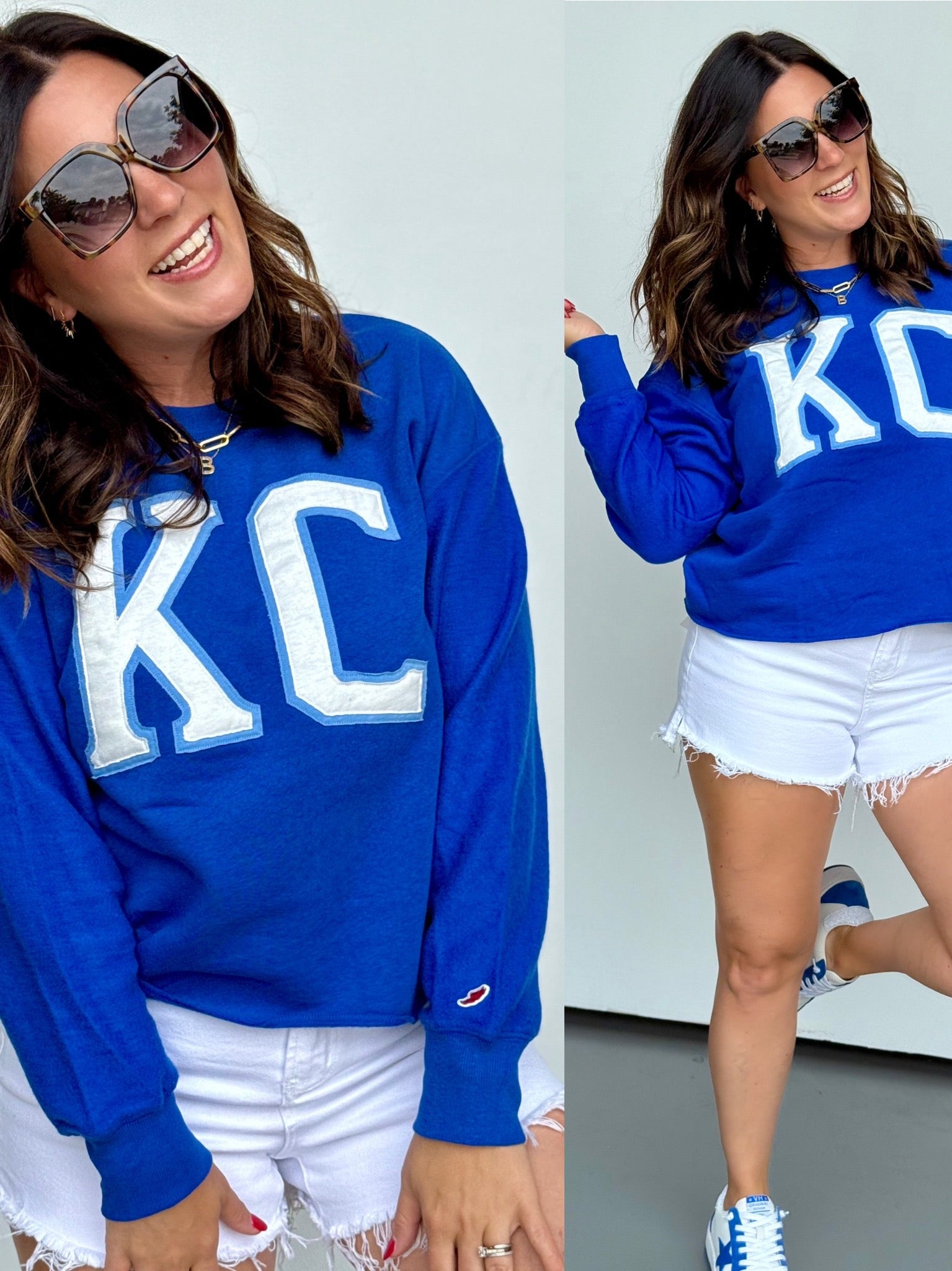 This oversized button-up cardi brings that vintage varsity vibe with a bold KC twist. Made in a vibrant game-day red with gold and white striping on the sleeves and hem, it features a detailed embroidered helmet patch on the front and “Kansas City” across the back for the ultimate fan finish.