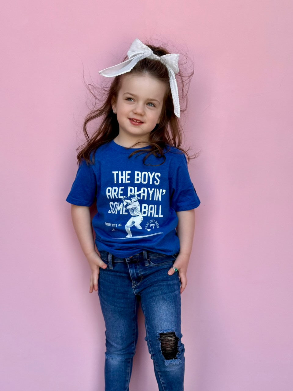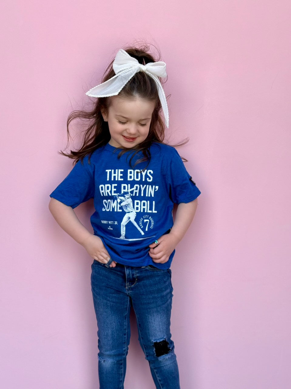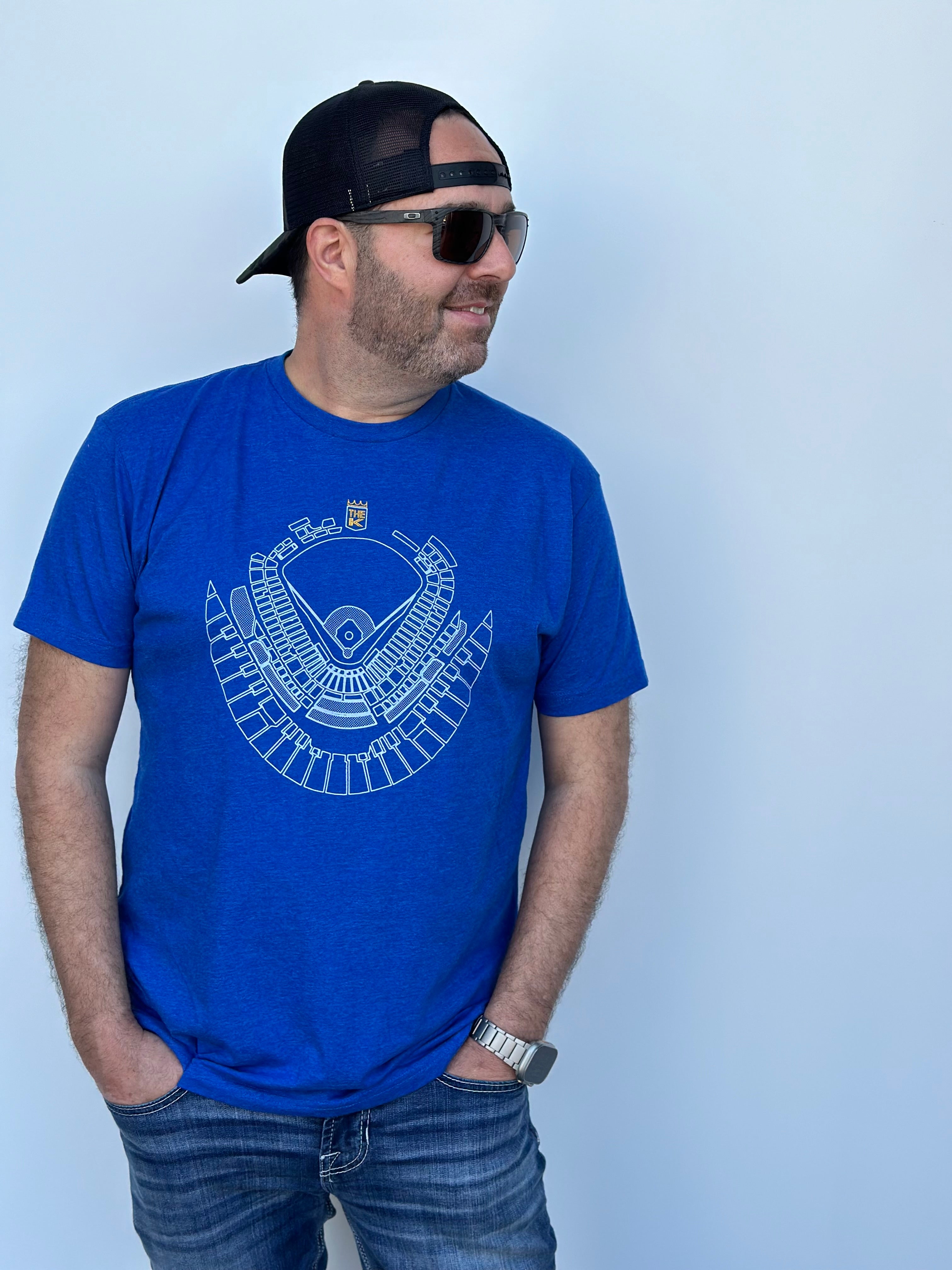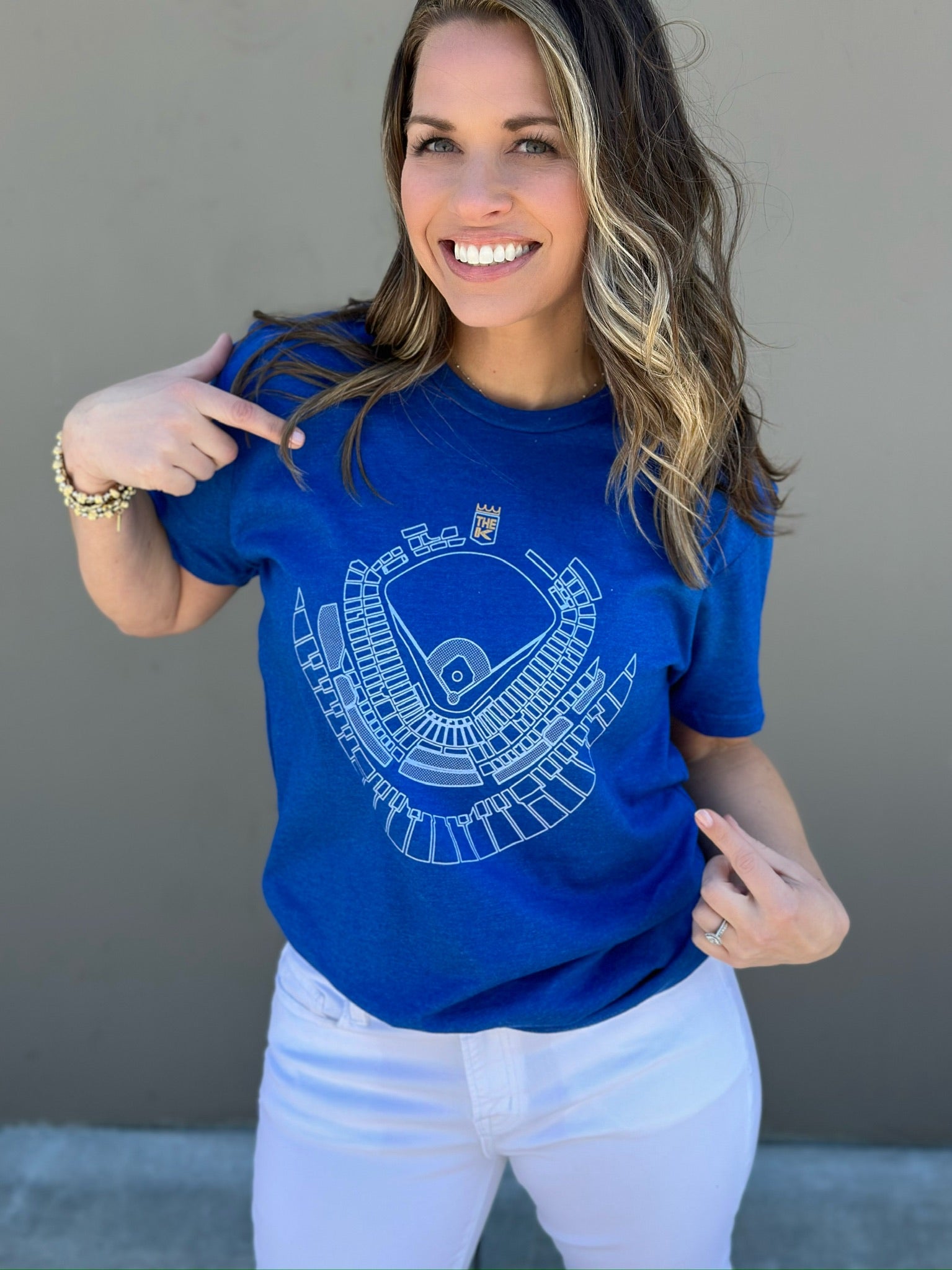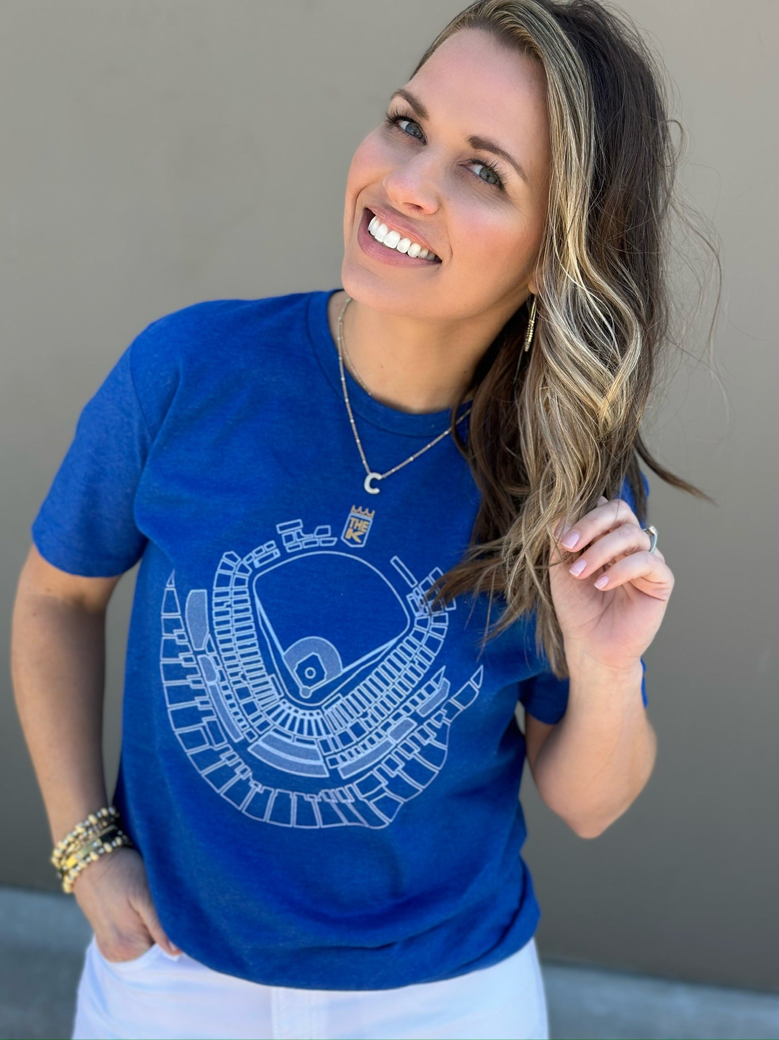 This oversized button-up cardi brings that vintage varsity vibe with a bold KC twist. Made in a vibrant game-day red with gold and white striping on the sleeves and hem, it features a detailed embroidered helmet patch on the front and “Kansas City” across the back for the ultimate fan finish.