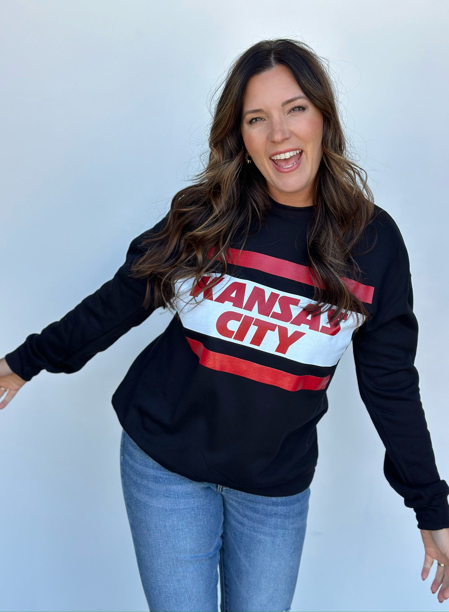 Get ready to score some style points with our End Zone Black Sweater! Made from soft material, this sweater will keep you cozy and comfortable while showing off your love for Kansas City. Perfect for game days or just everyday wear. Touchdown!