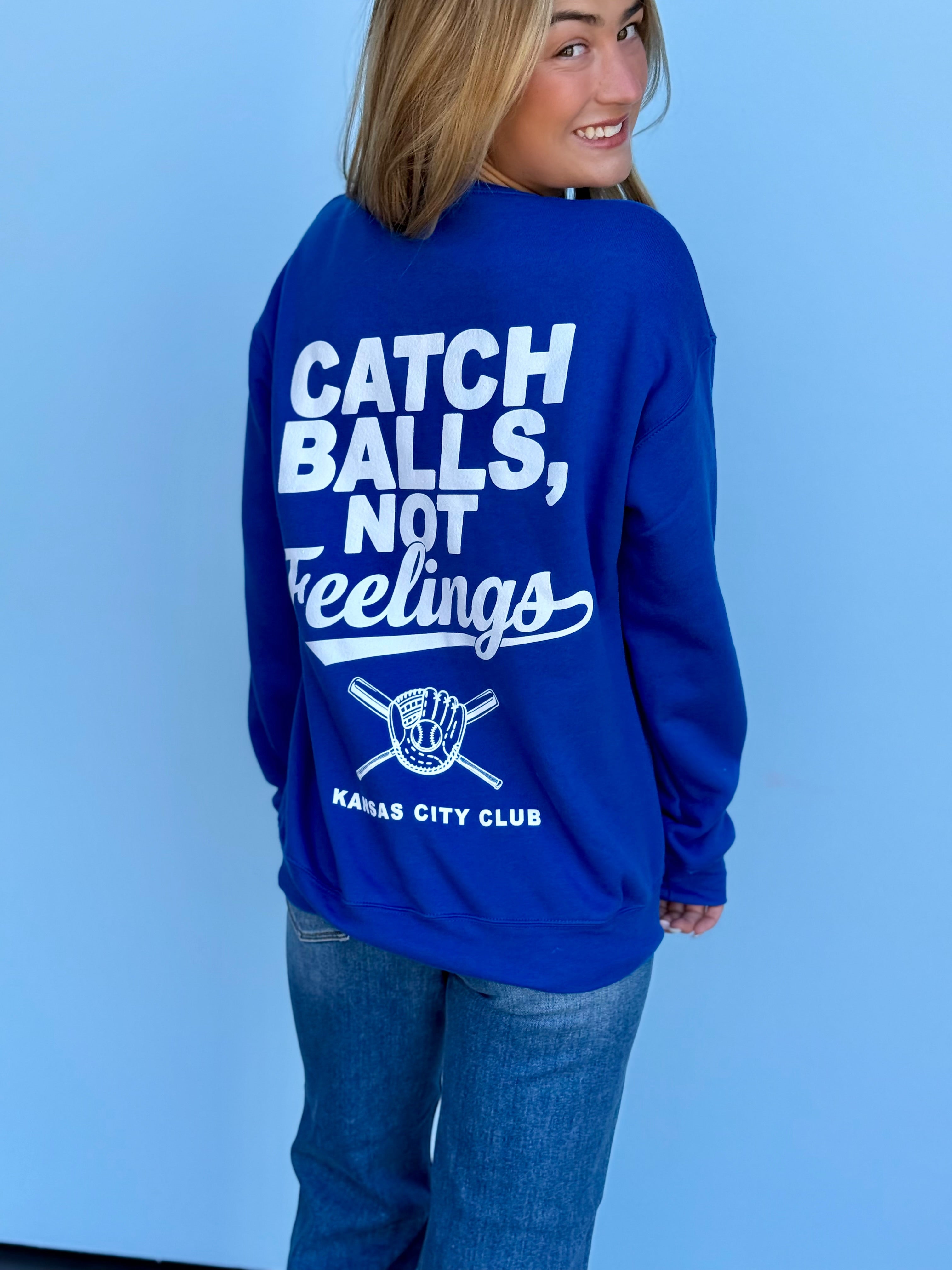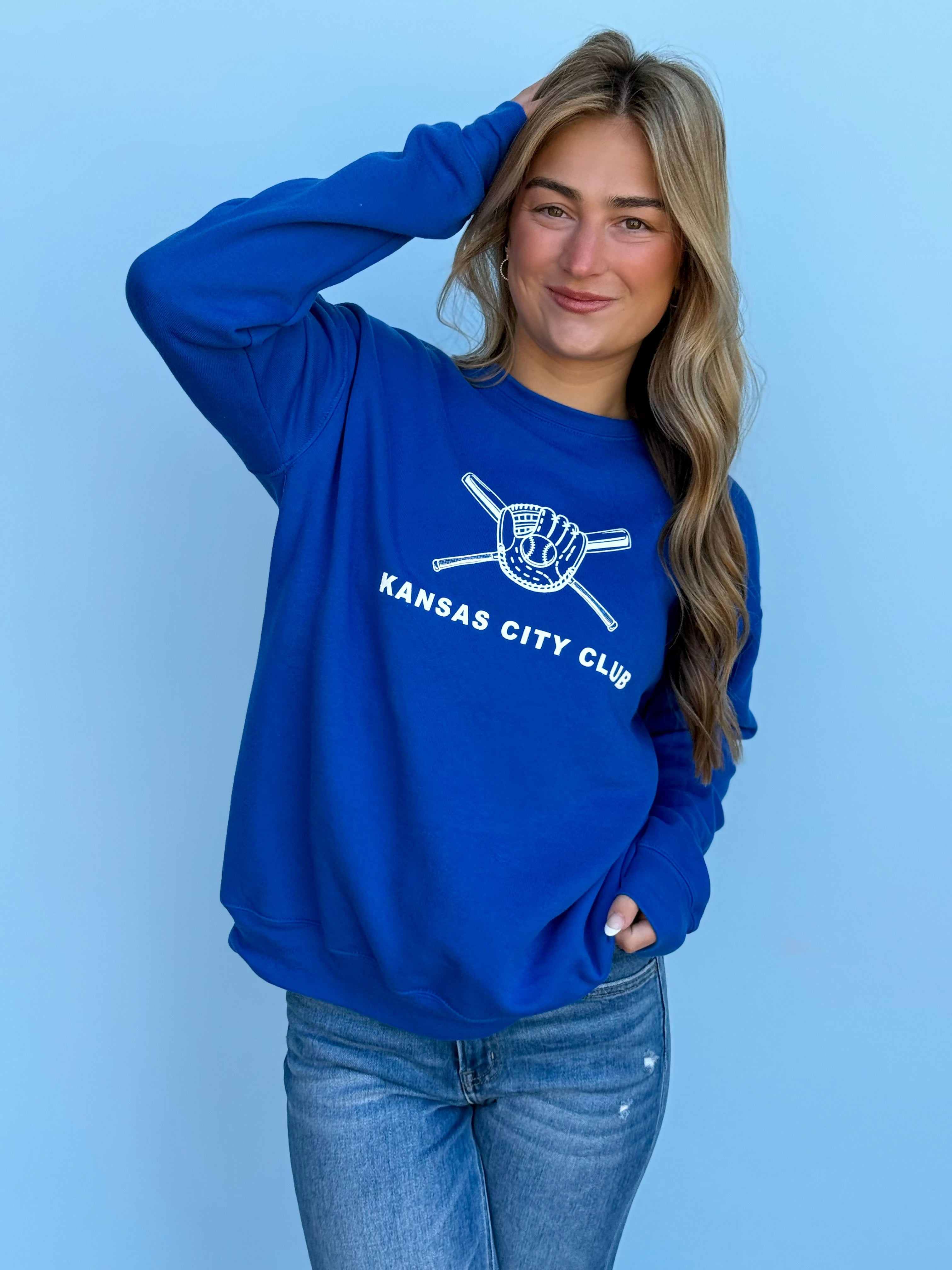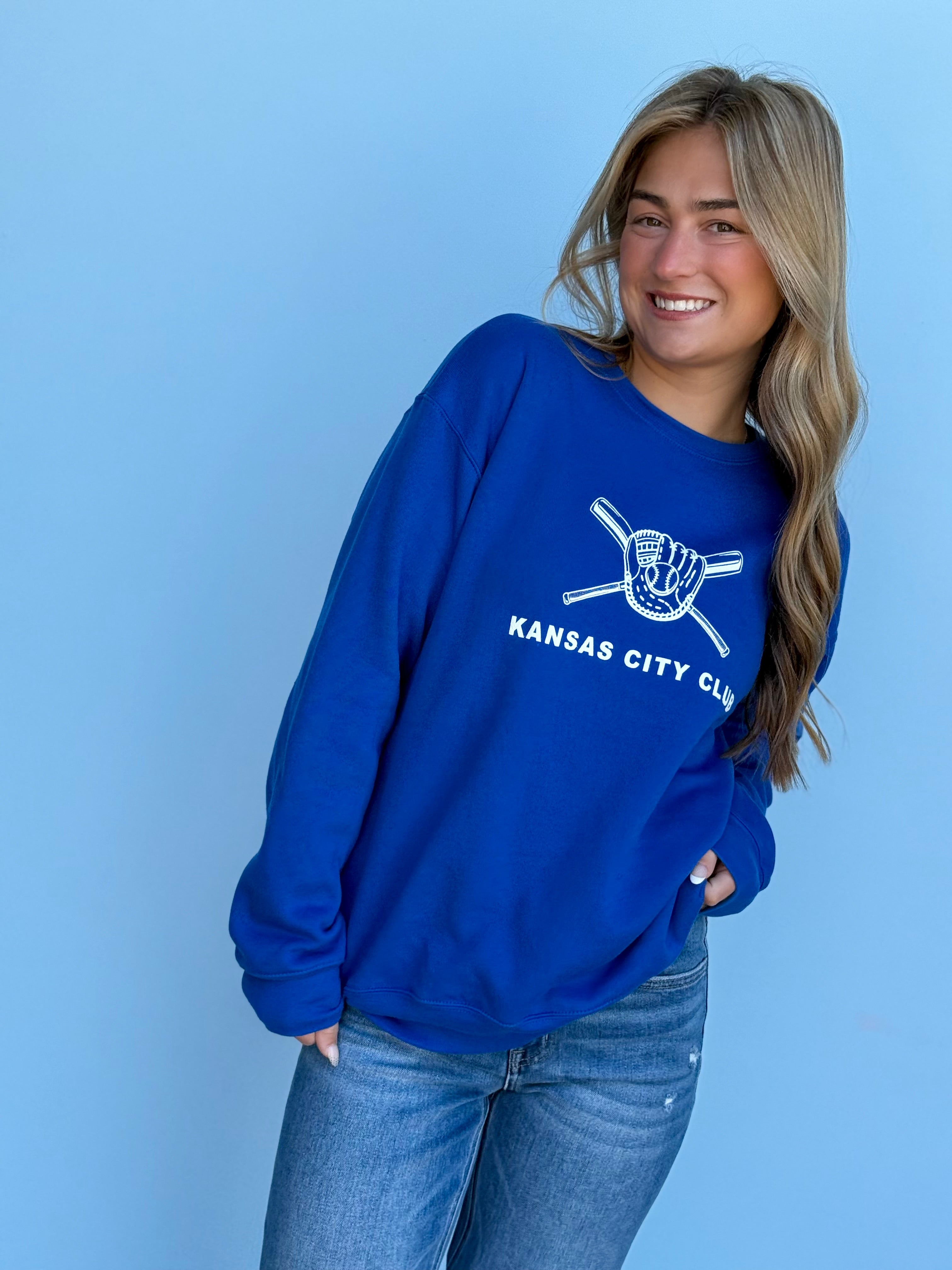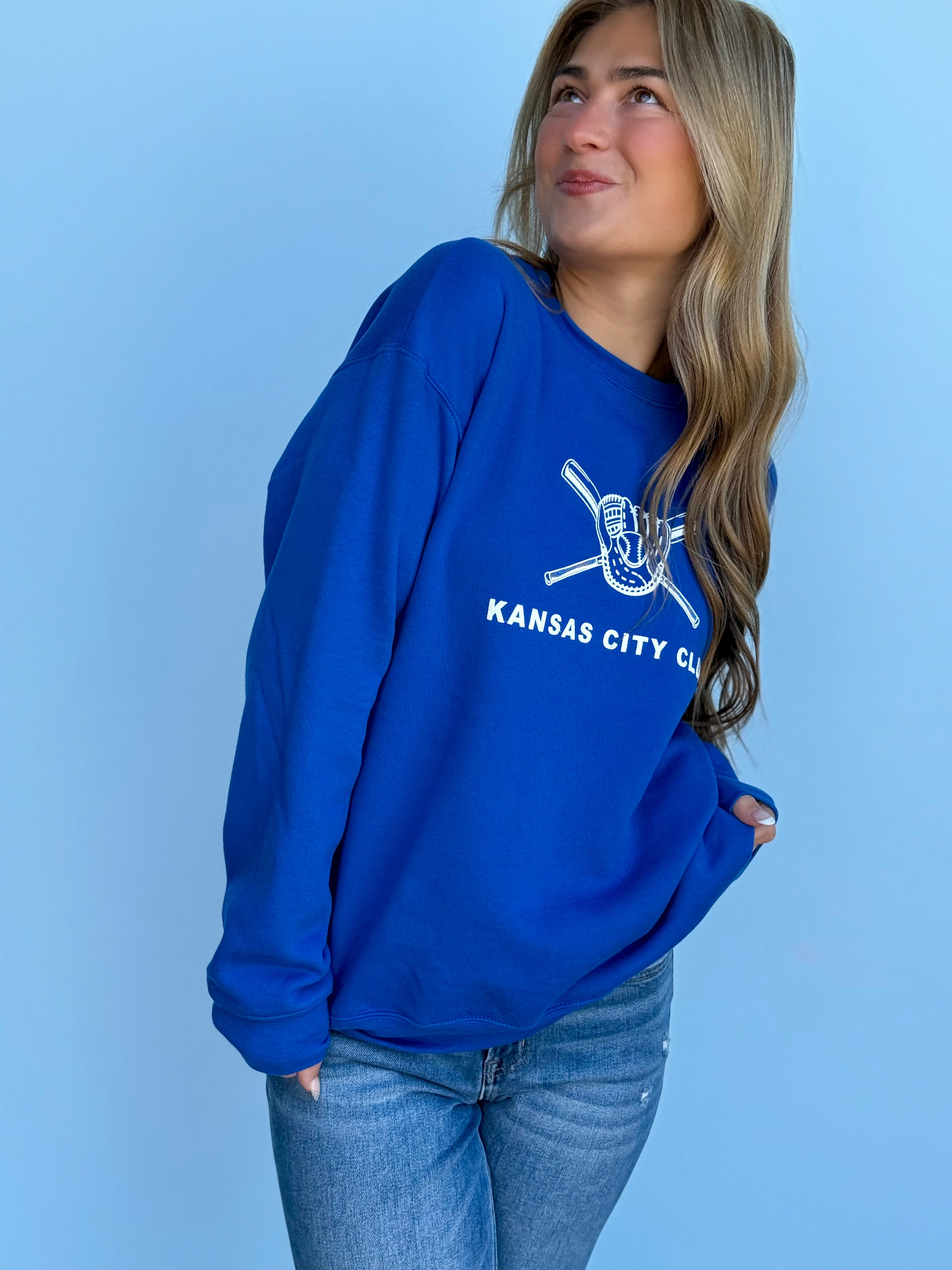 This oversized button-up cardi brings that vintage varsity vibe with a bold KC twist. Made in a vibrant game-day red with gold and white striping on the sleeves and hem, it features a detailed embroidered helmet patch on the front and “Kansas City” across the back for the ultimate fan finish.