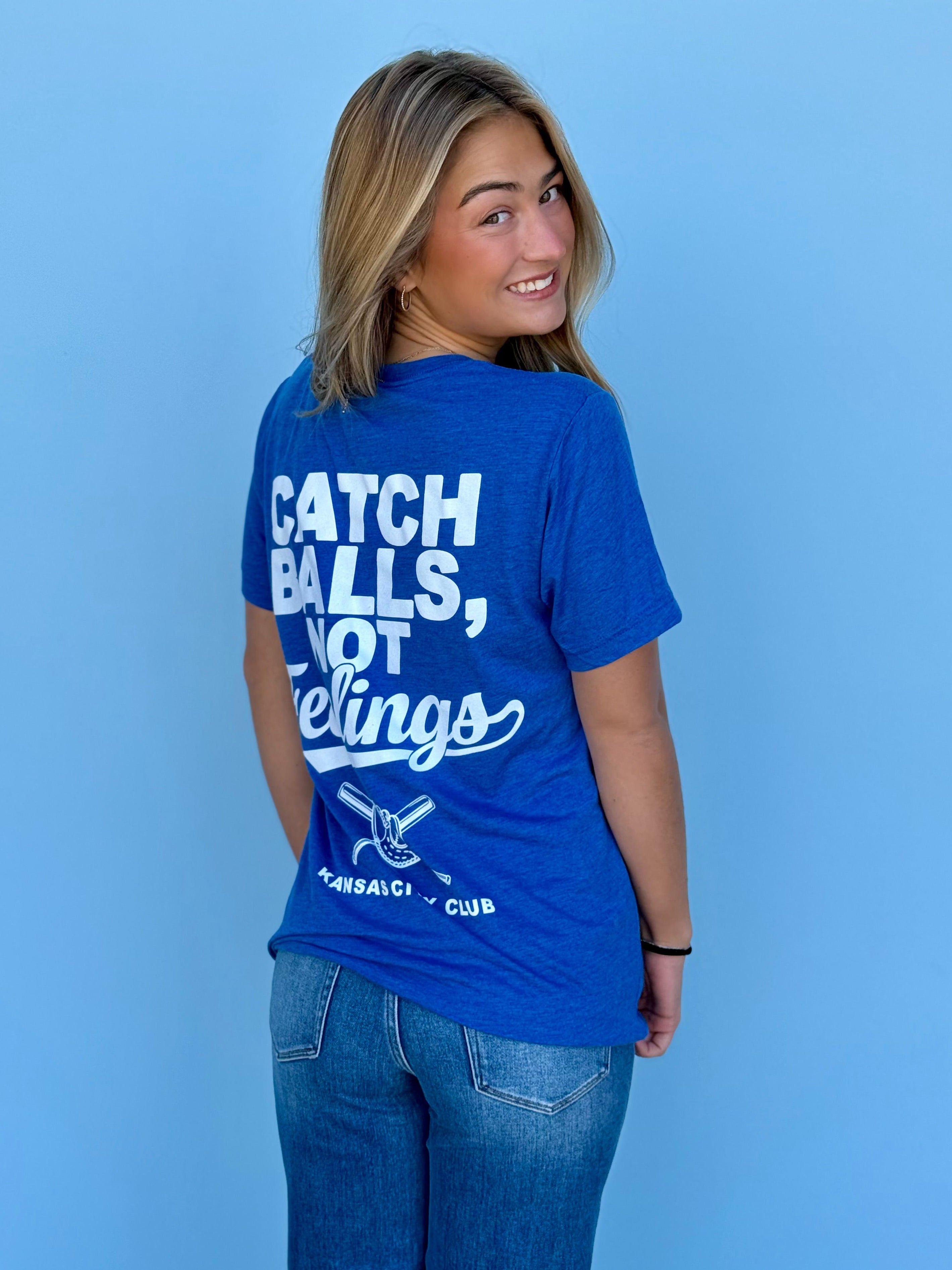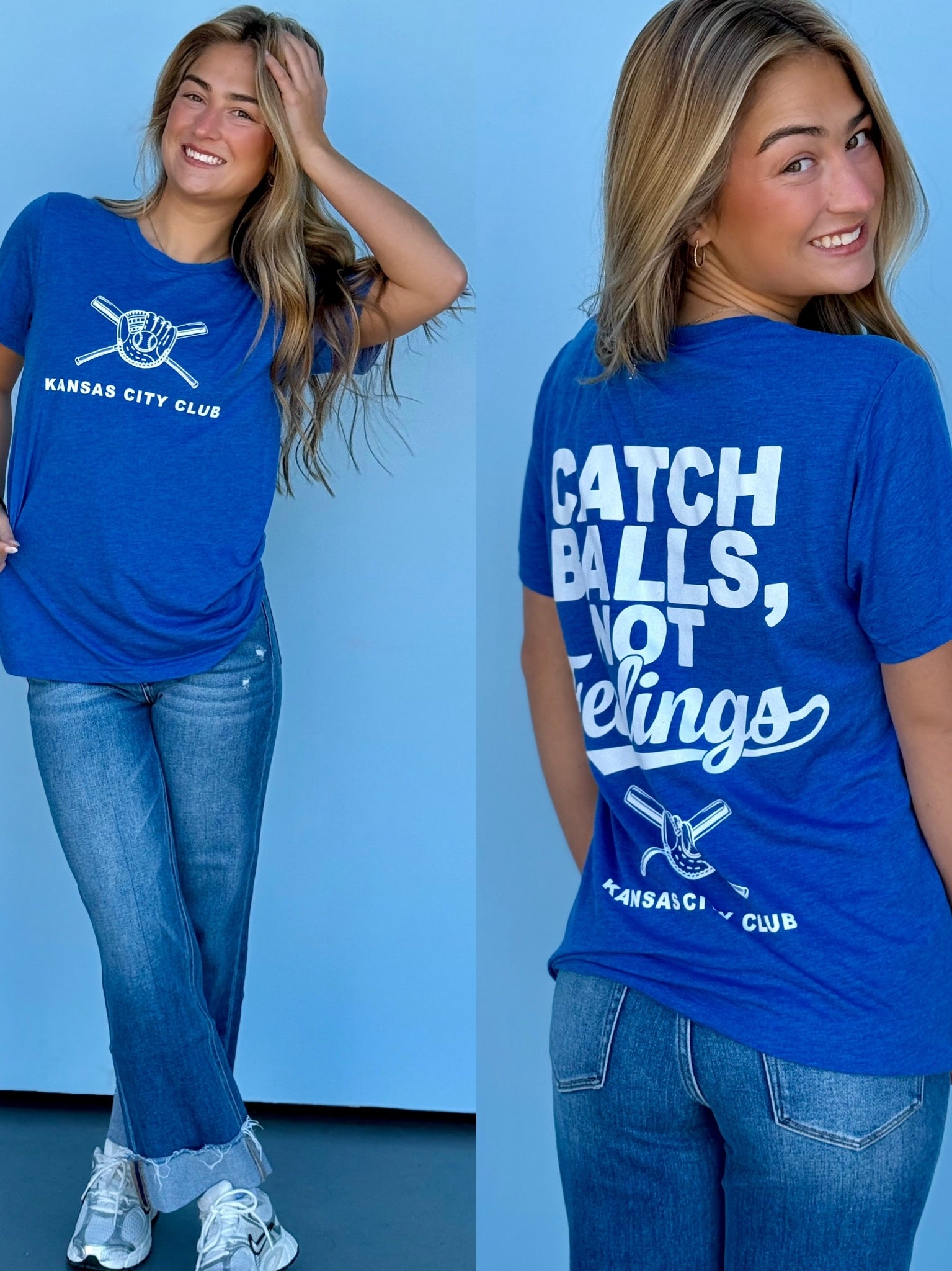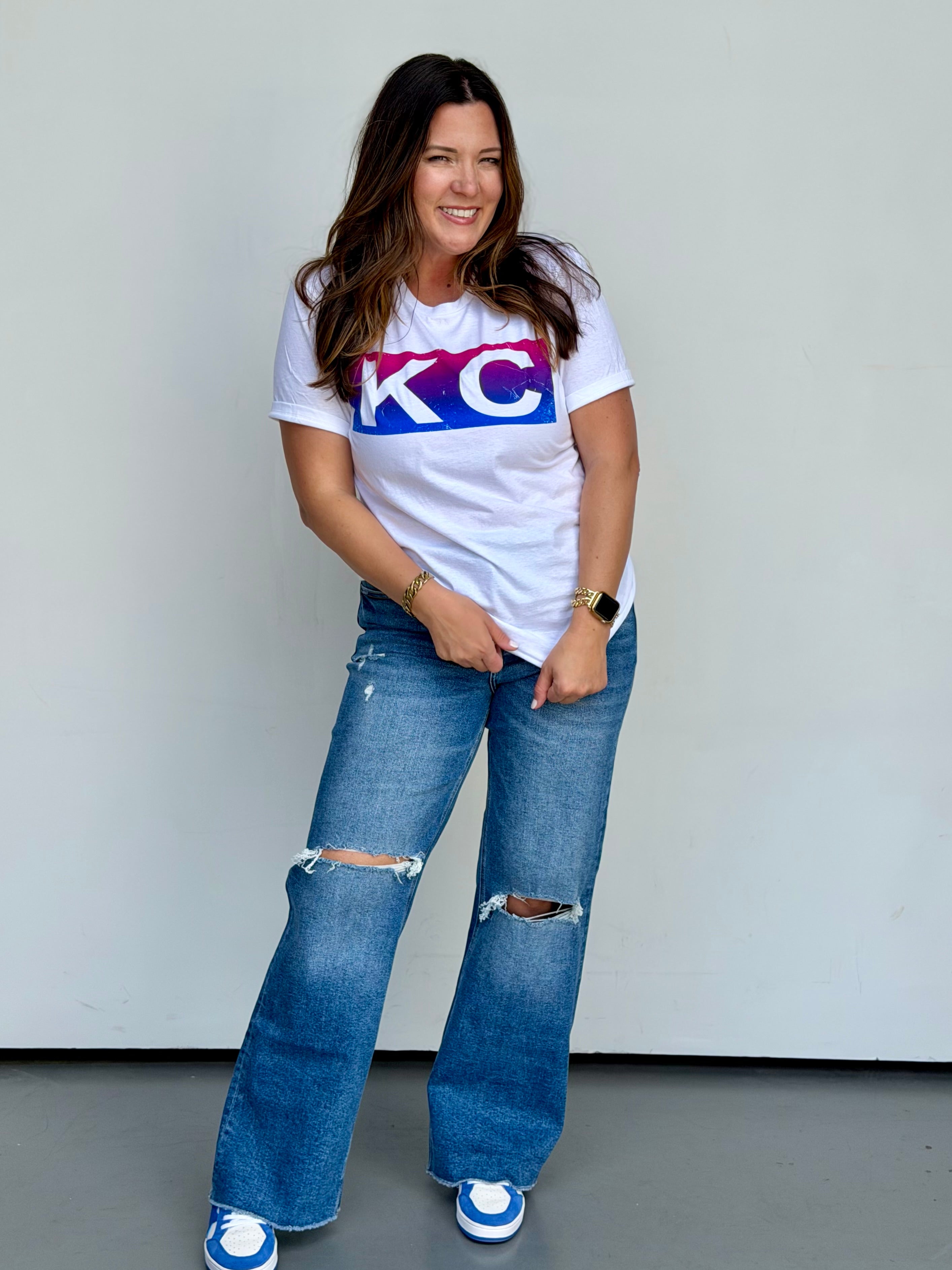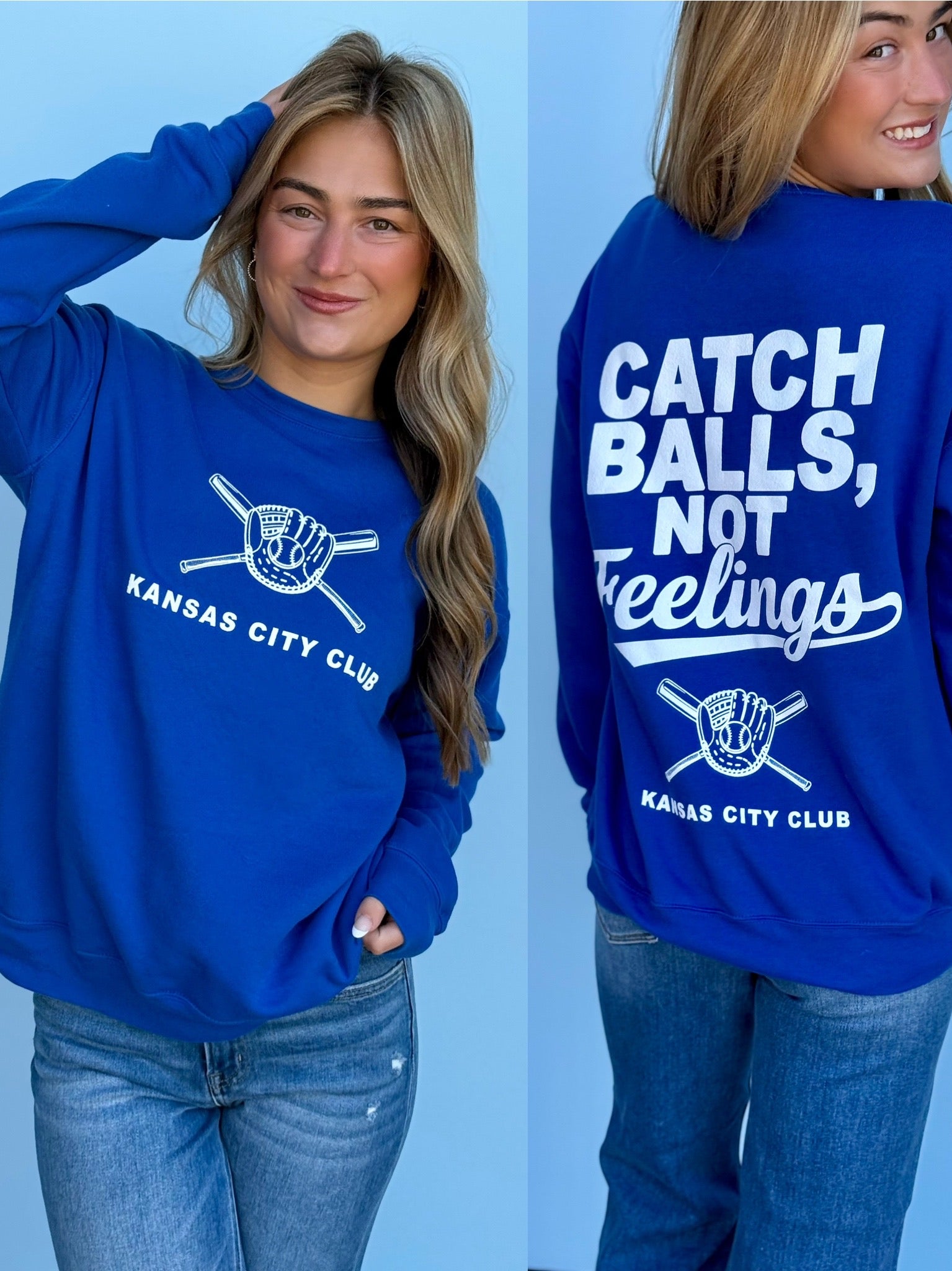 This oversized button-up cardi brings that vintage varsity vibe with a bold KC twist. Made in a vibrant game-day red with gold and white striping on the sleeves and hem, it features a detailed embroidered helmet patch on the front and “Kansas City” across the back for the ultimate fan finish.