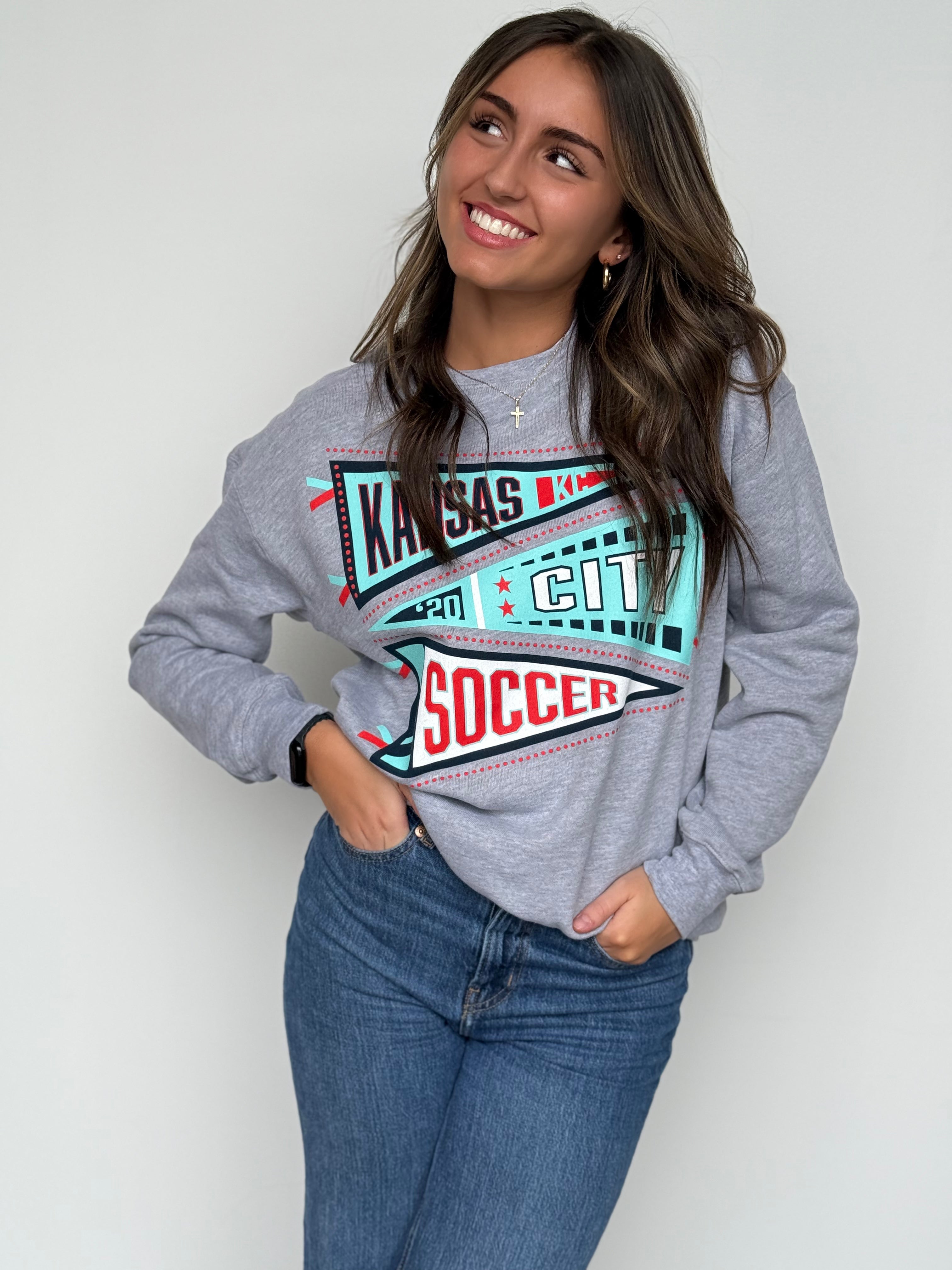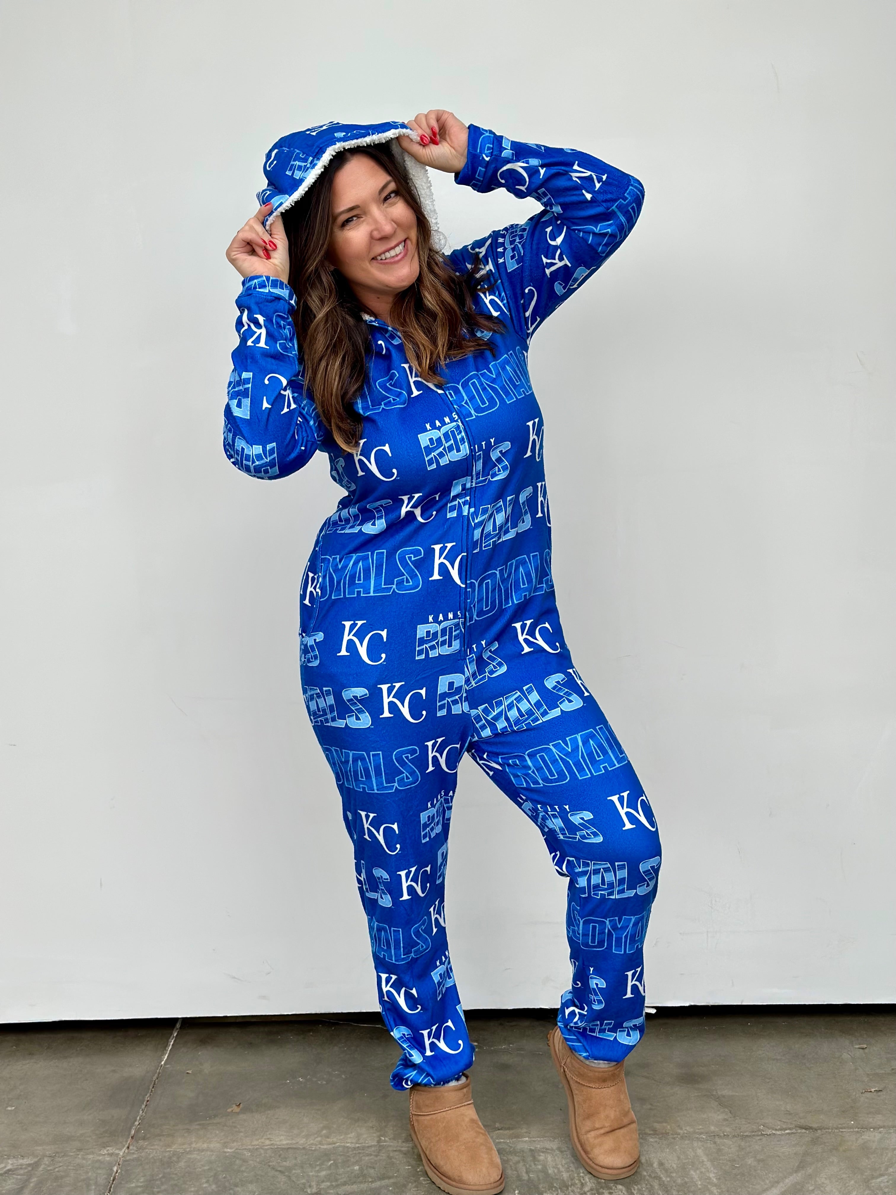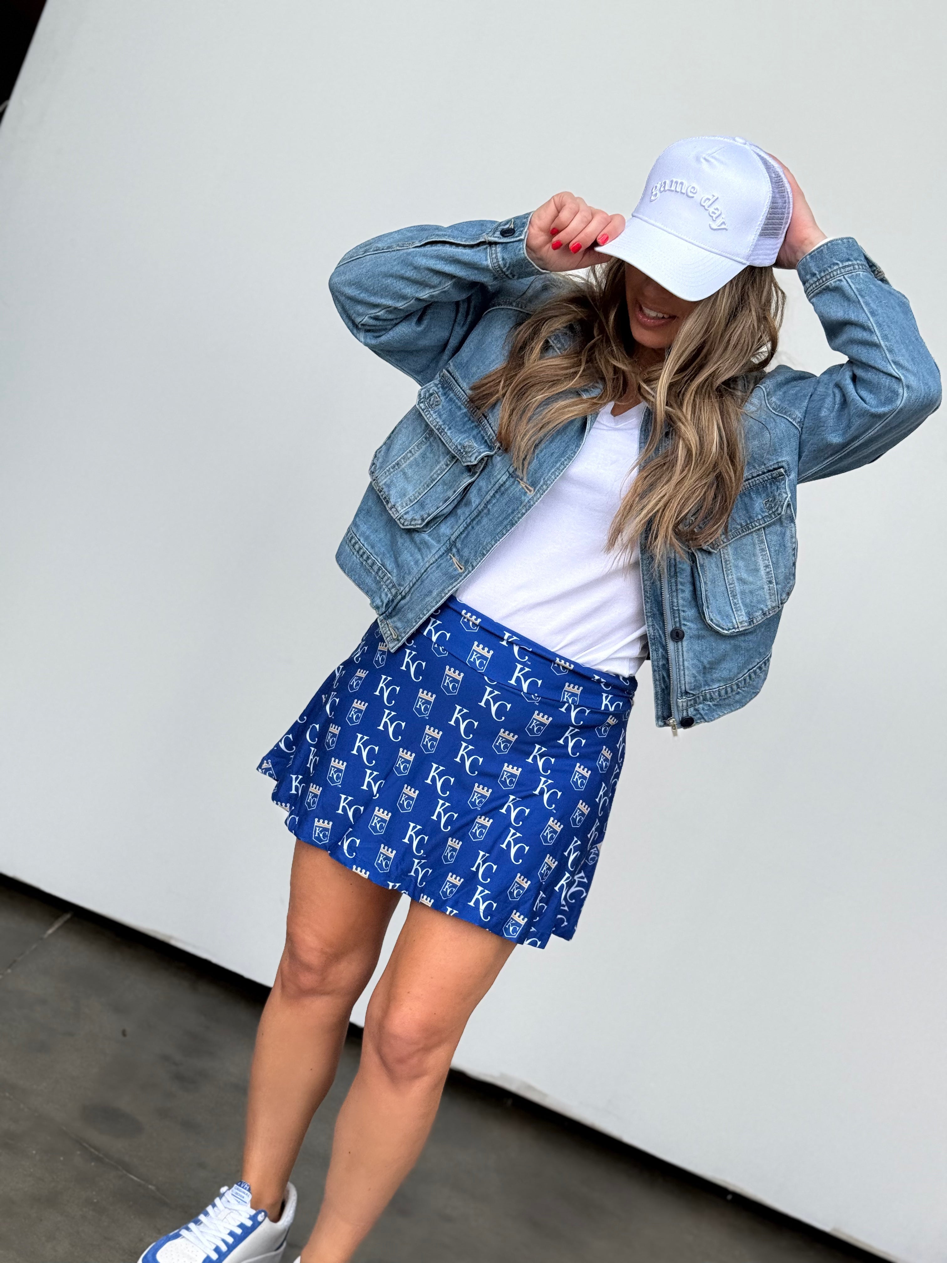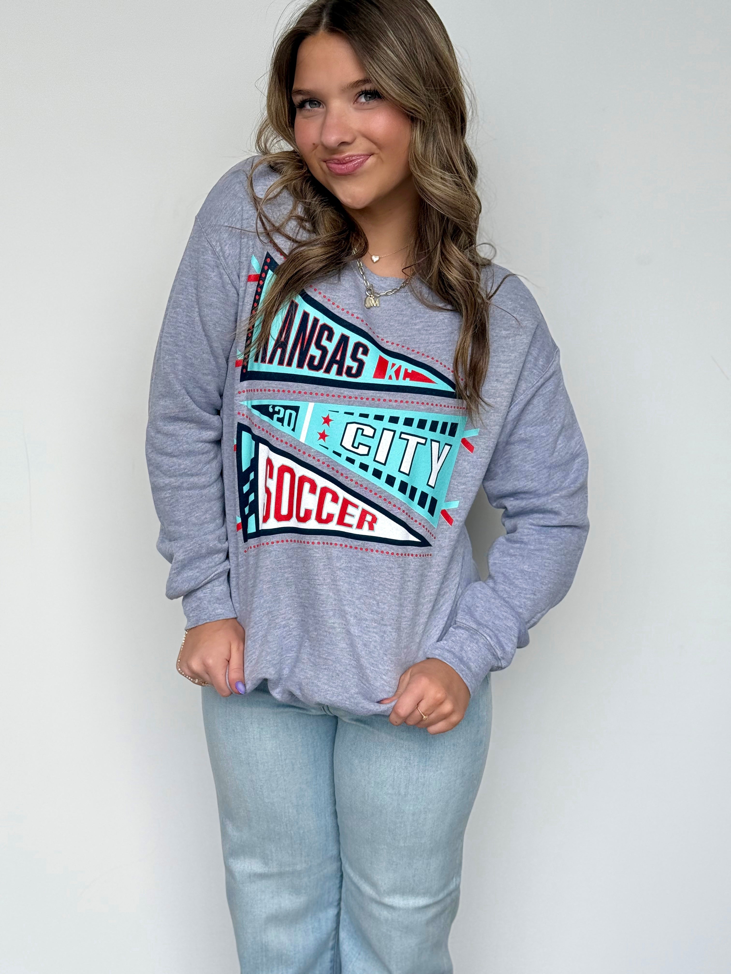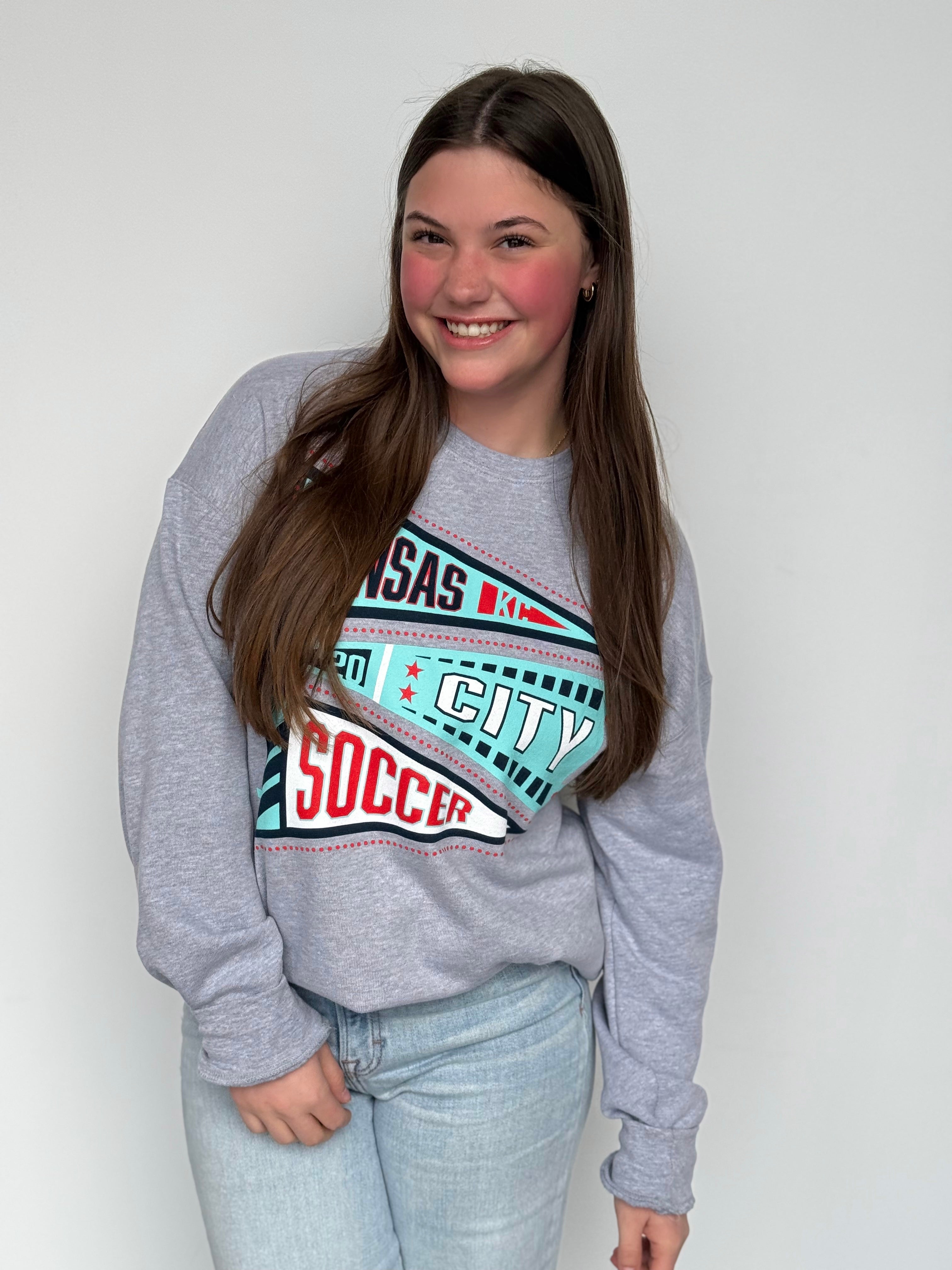 This oversized button-up cardi brings that vintage varsity vibe with a bold KC twist. Made in a vibrant game-day red with gold and white striping on the sleeves and hem, it features a detailed embroidered helmet patch on the front and “Kansas City” across the back for the ultimate fan finish.