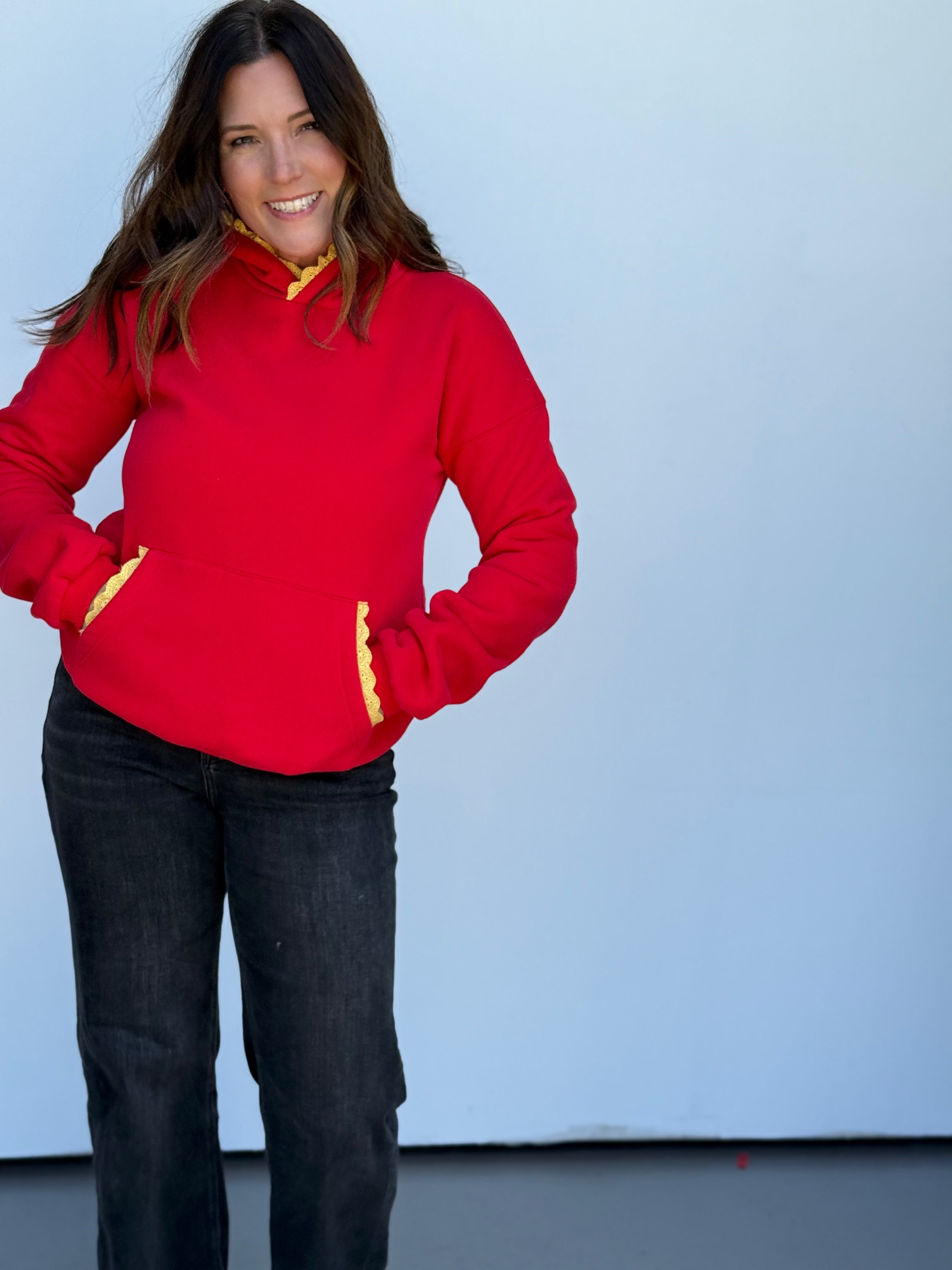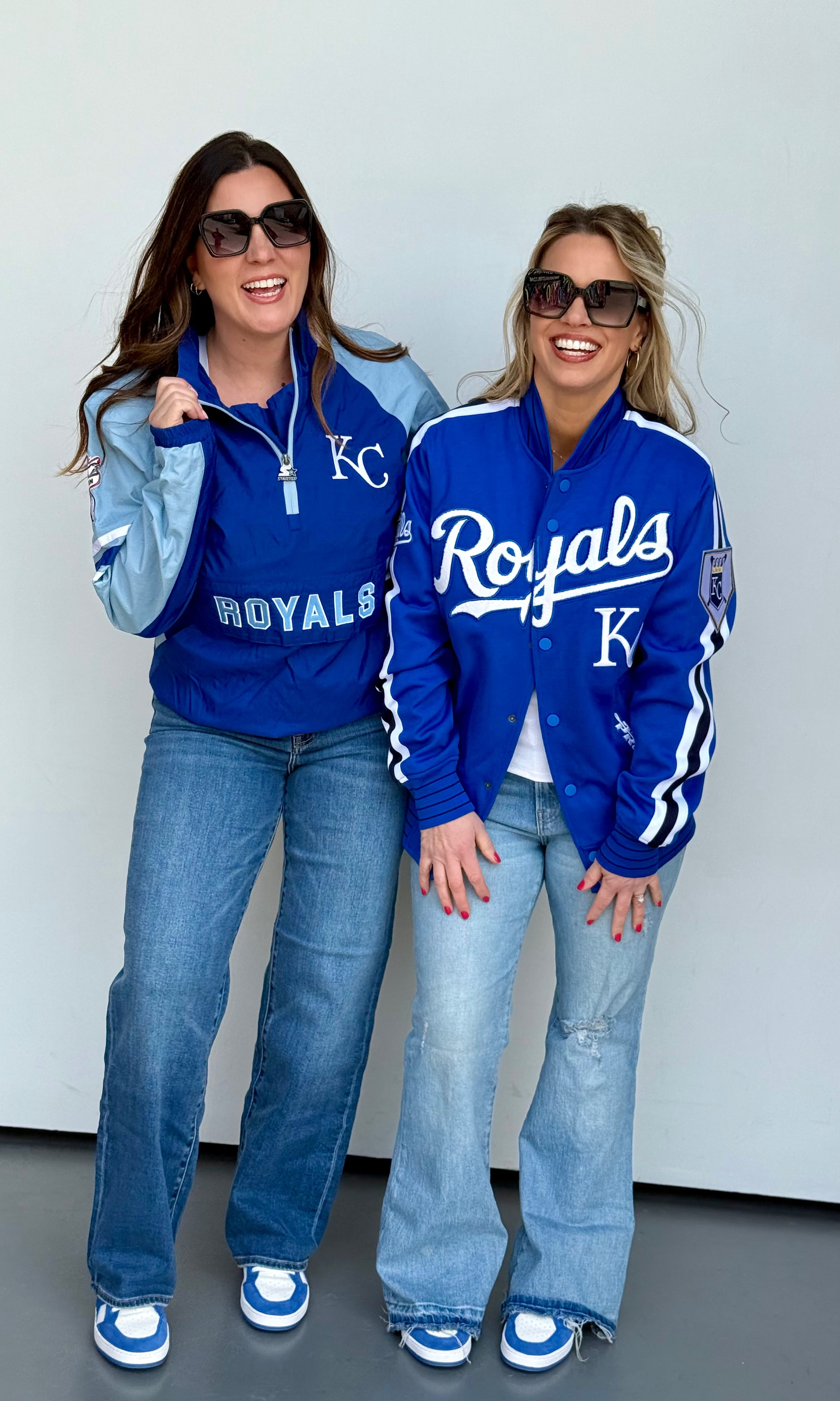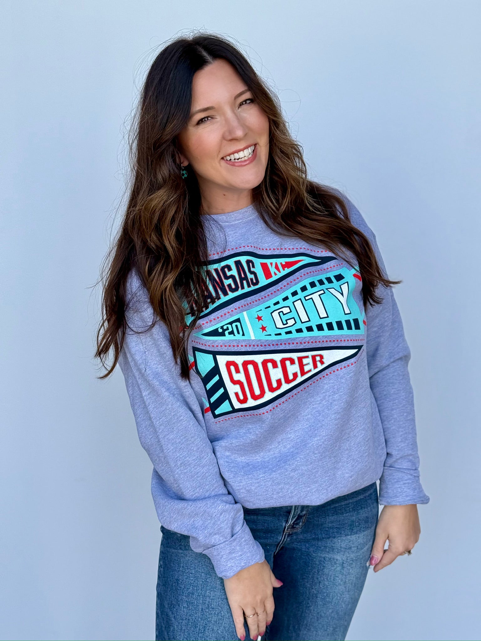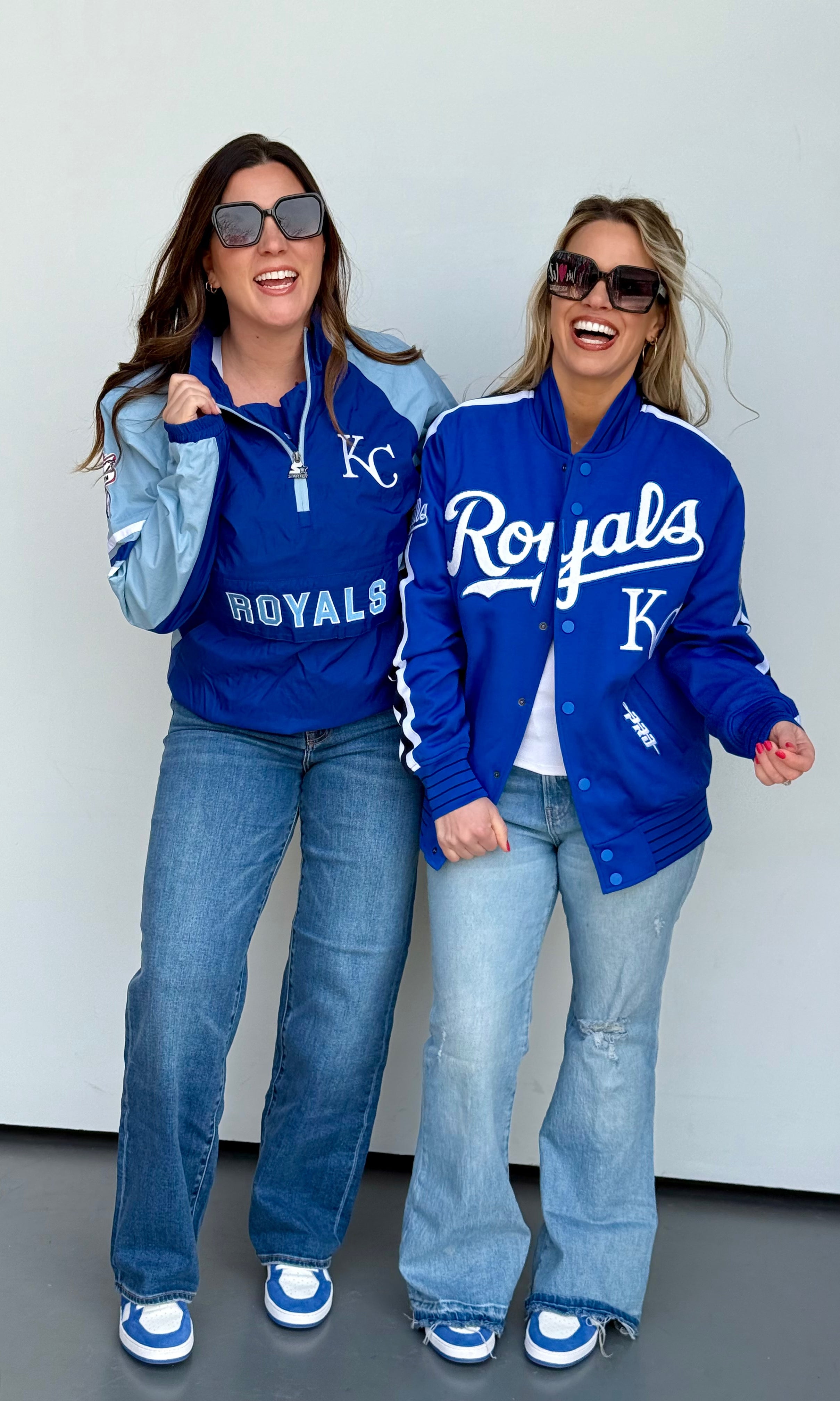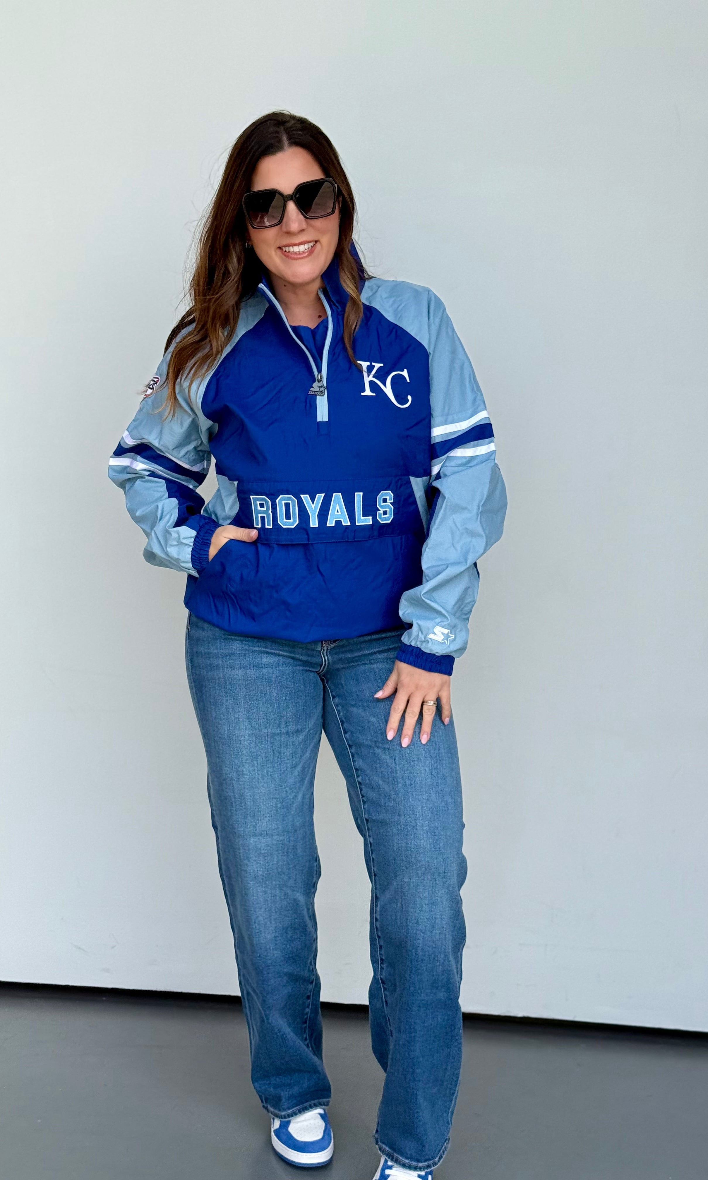 This oversized button-up cardi brings that vintage varsity vibe with a bold KC twist. Made in a vibrant game-day red with gold and white striping on the sleeves and hem, it features a detailed embroidered helmet patch on the front and “Kansas City” across the back for the ultimate fan finish.