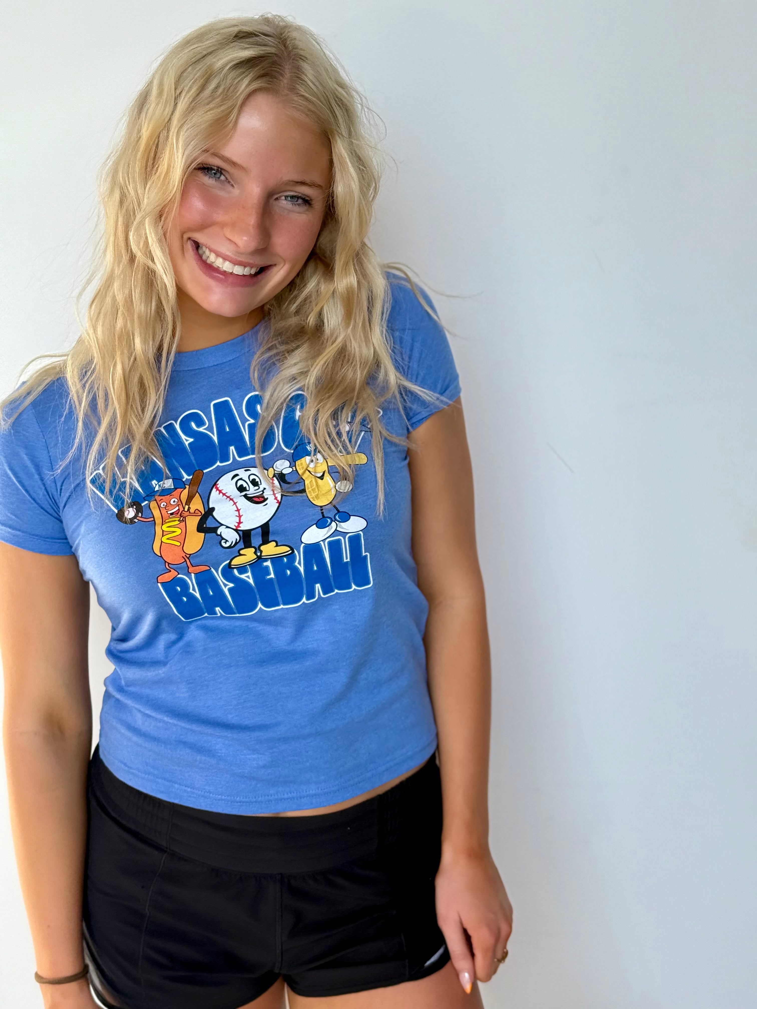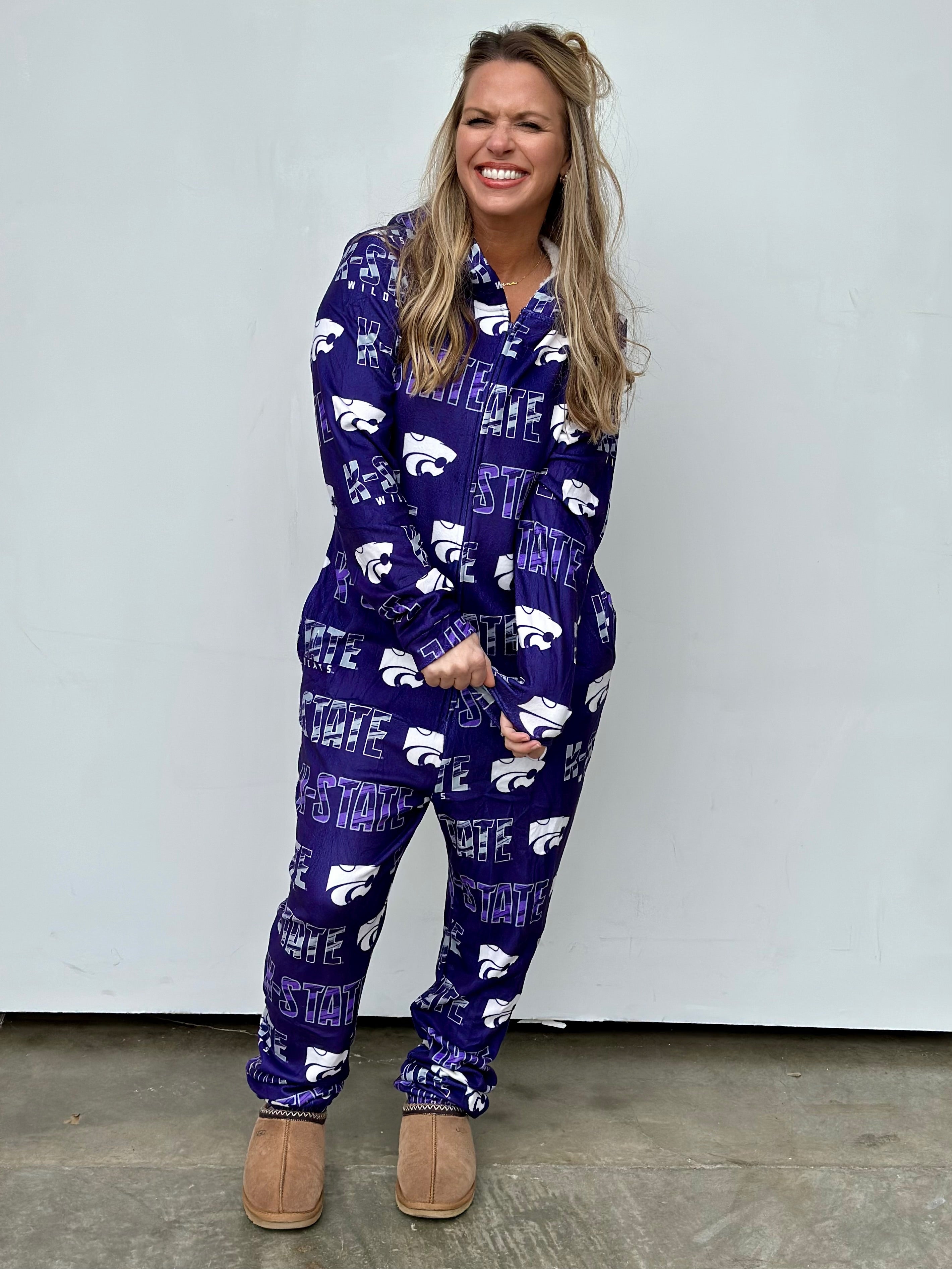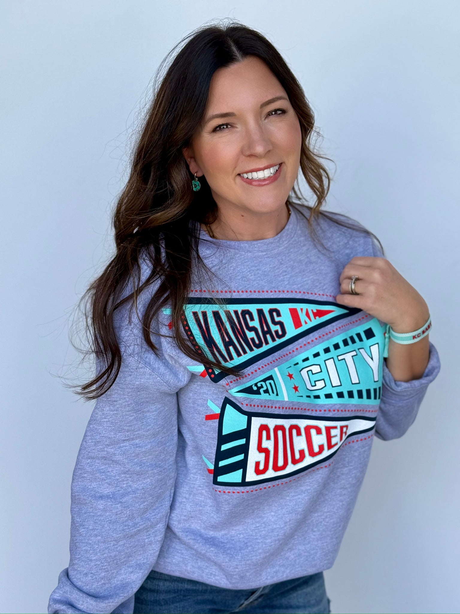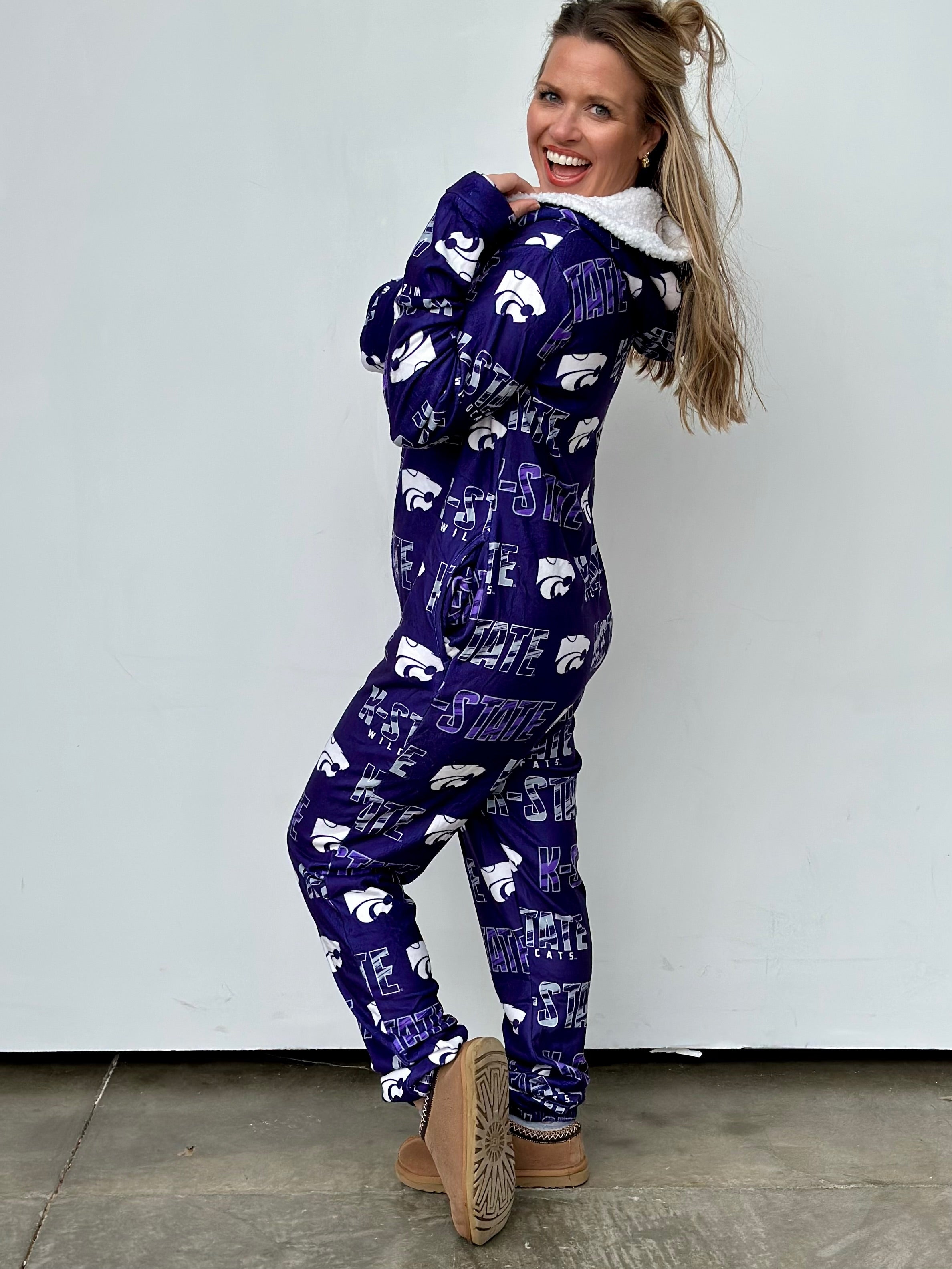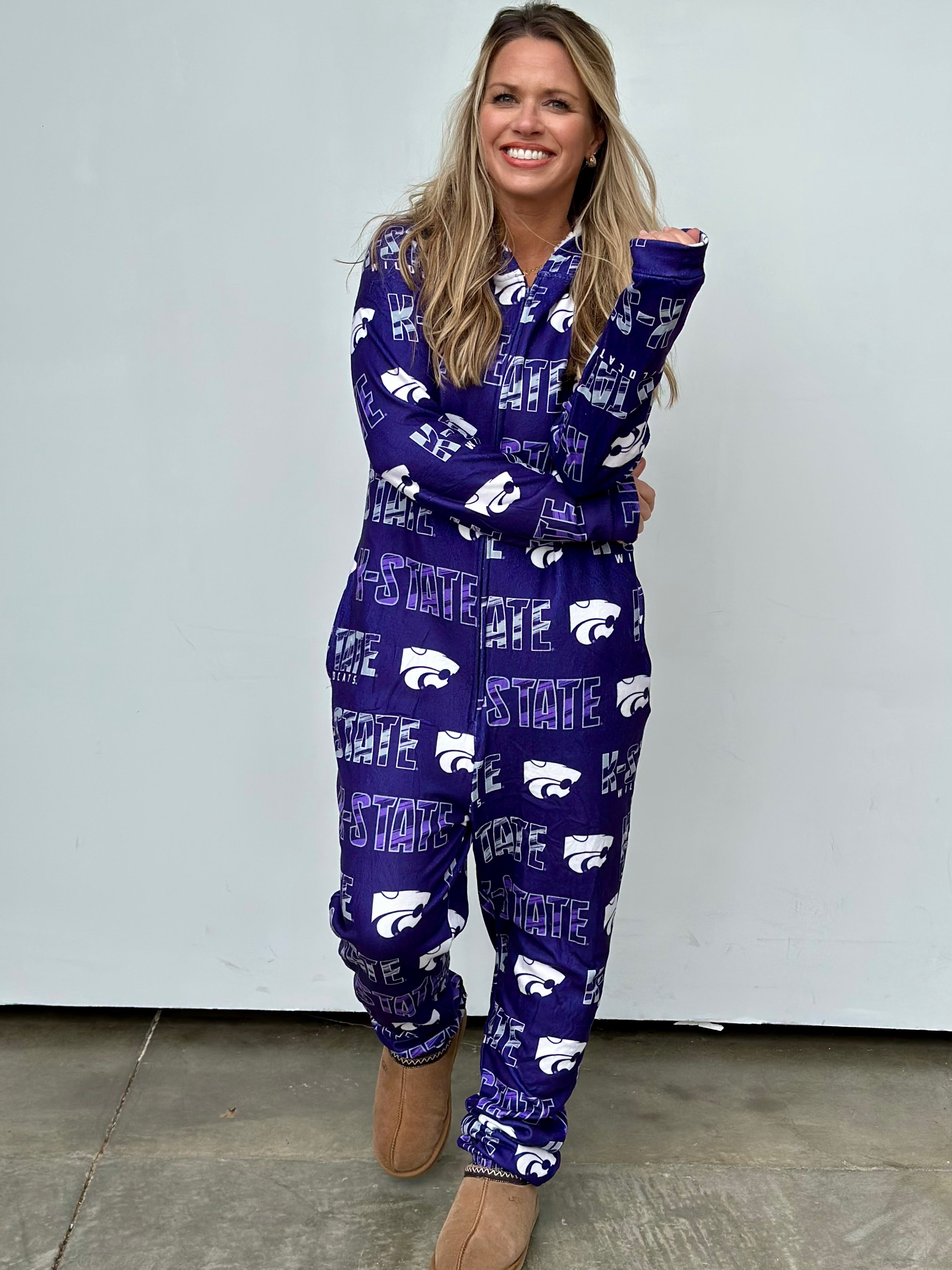 This oversized button-up cardi brings that vintage varsity vibe with a bold KC twist. Made in a vibrant game-day red with gold and white striping on the sleeves and hem, it features a detailed embroidered helmet patch on the front and “Kansas City” across the back for the ultimate fan finish.