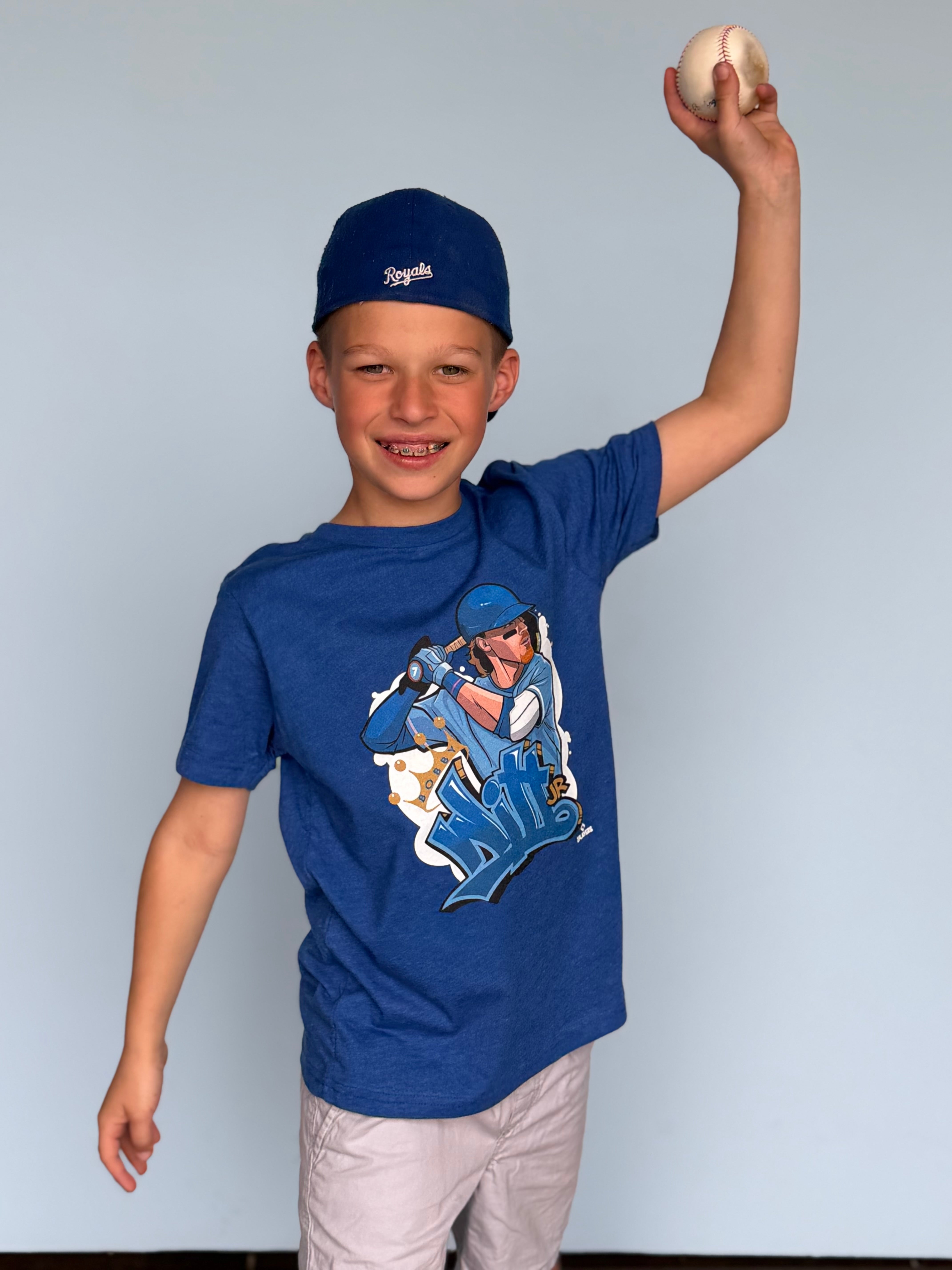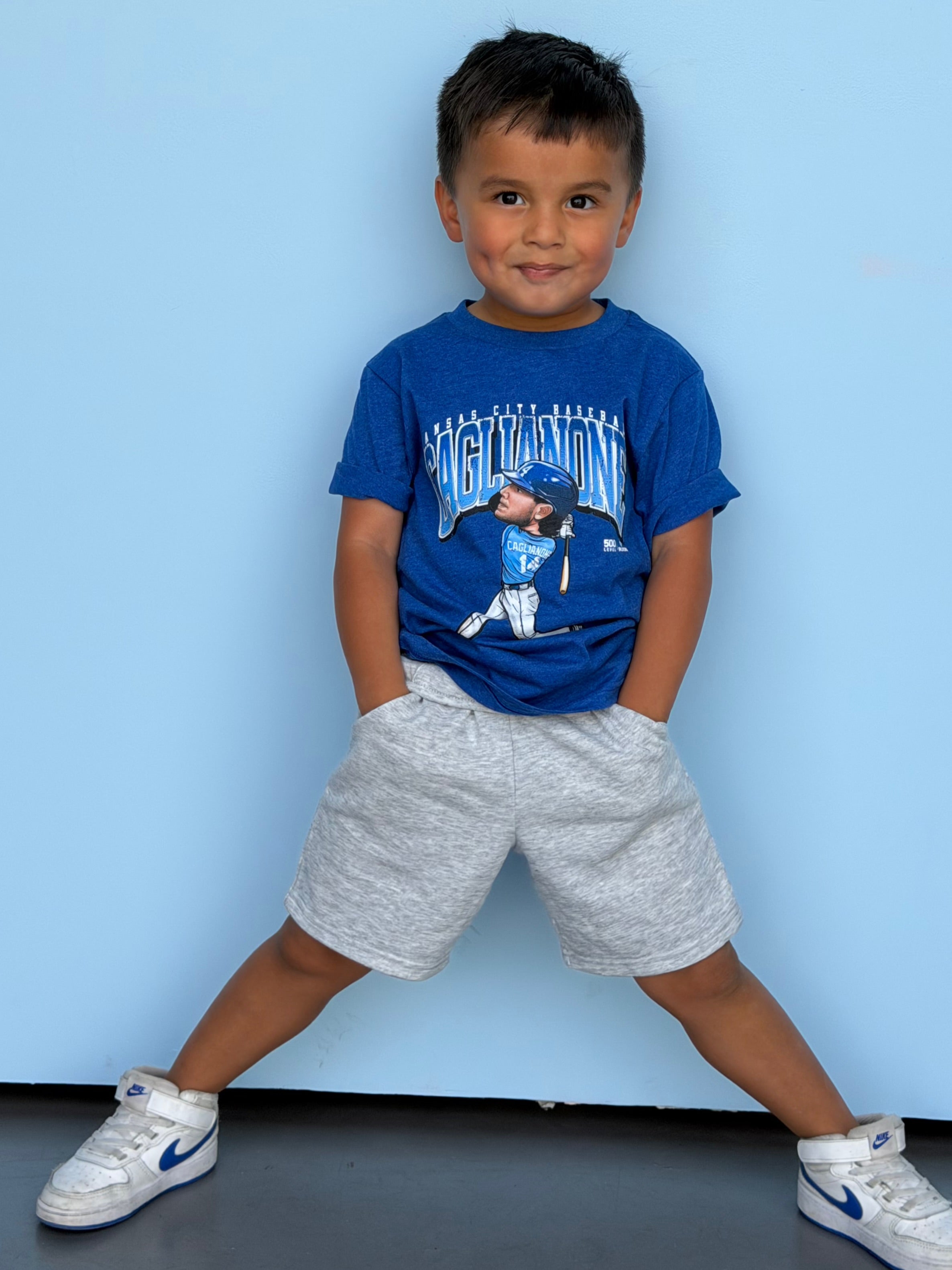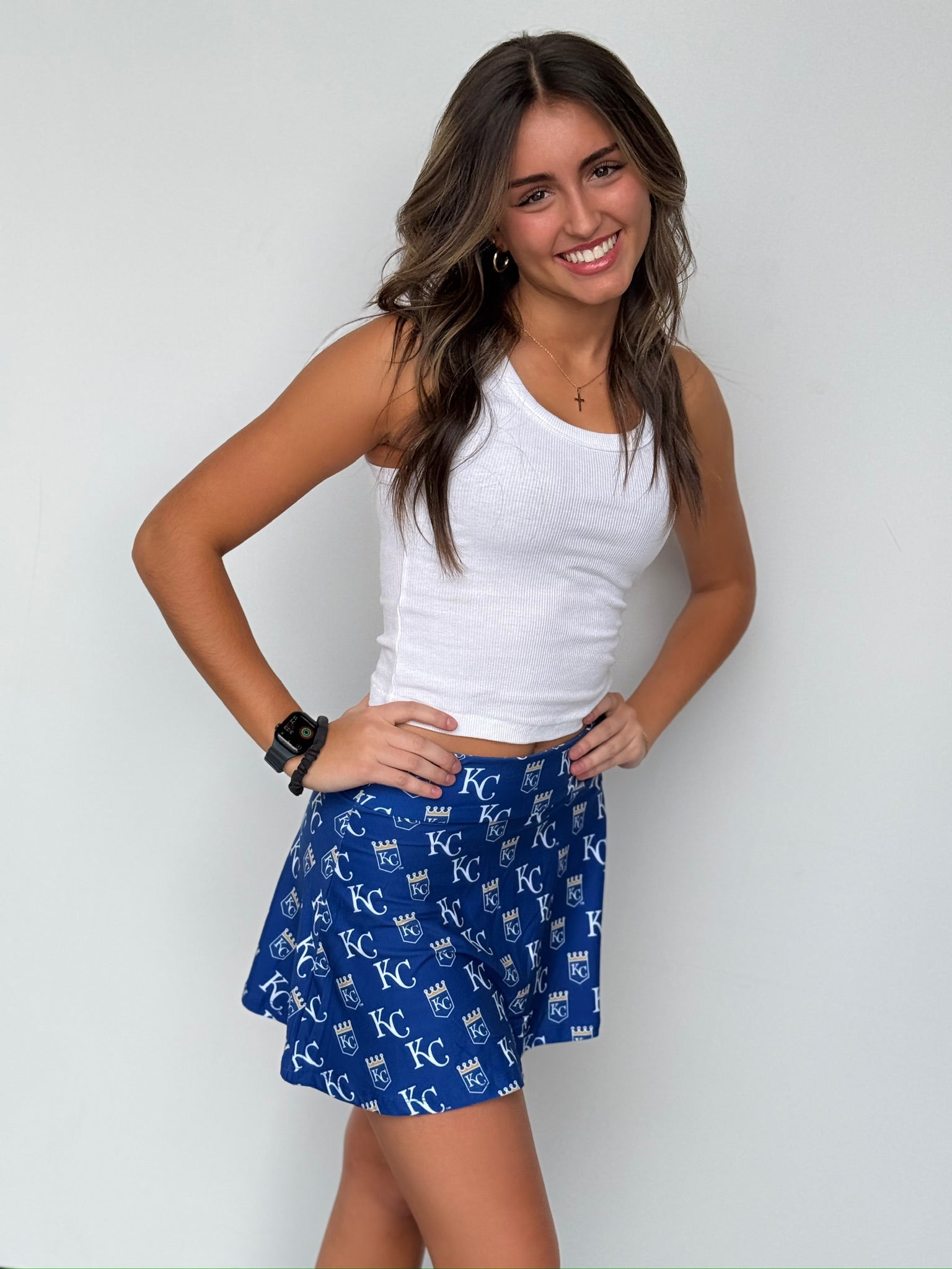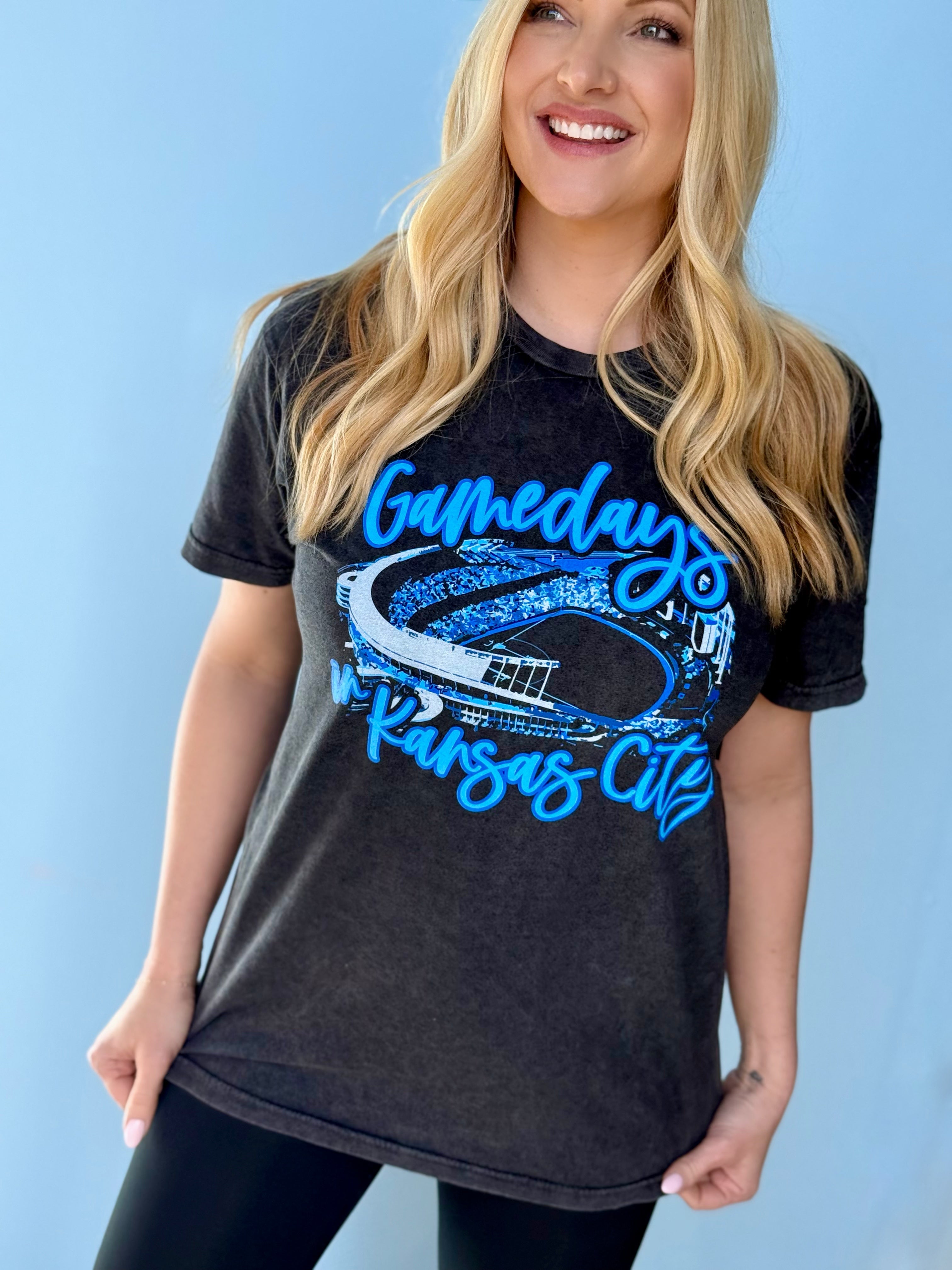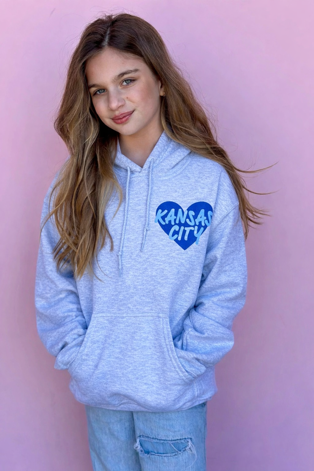 This oversized button-up cardi brings that vintage varsity vibe with a bold KC twist. Made in a vibrant game-day red with gold and white striping on the sleeves and hem, it features a detailed embroidered helmet patch on the front and “Kansas City” across the back for the ultimate fan finish.