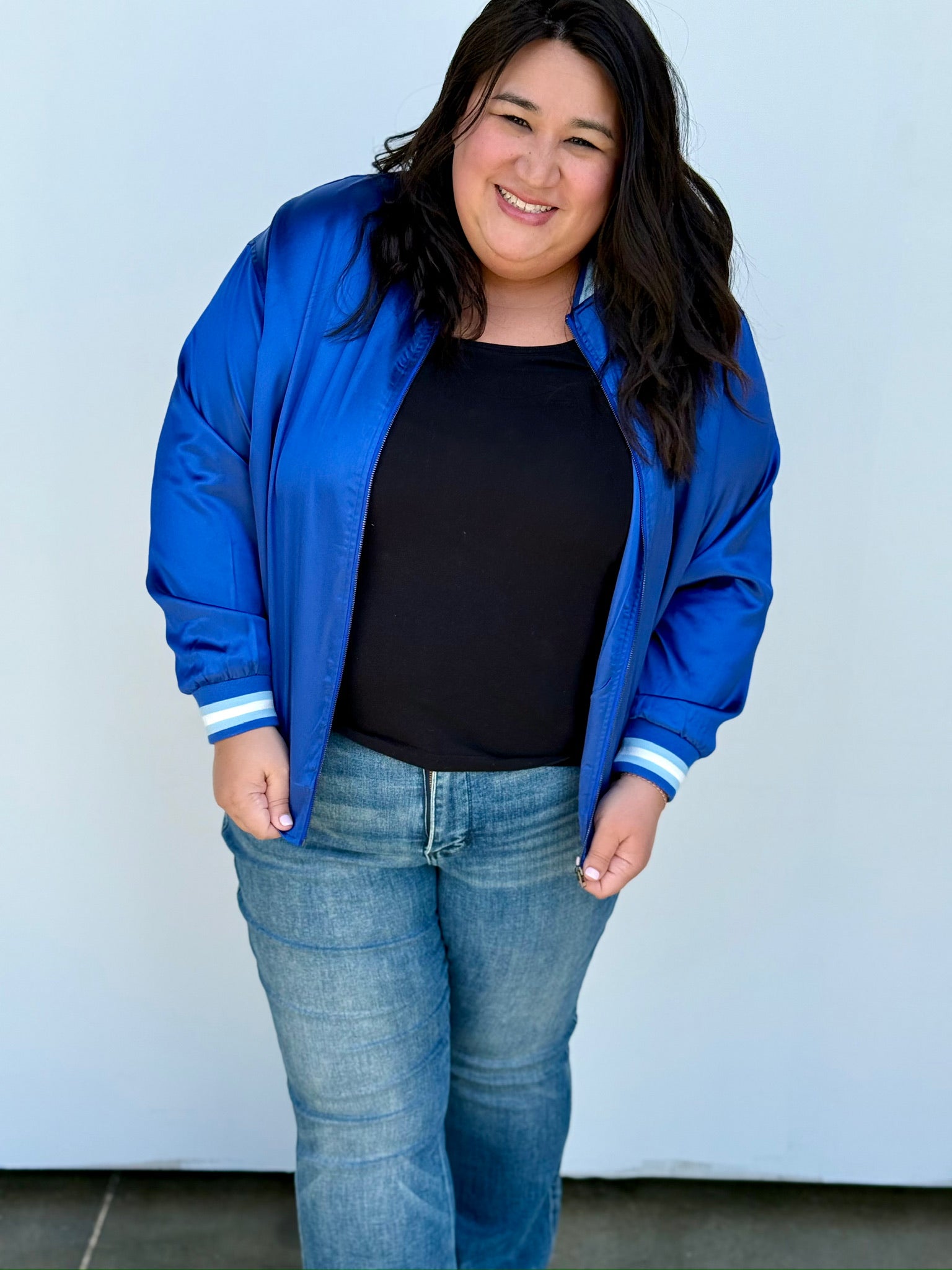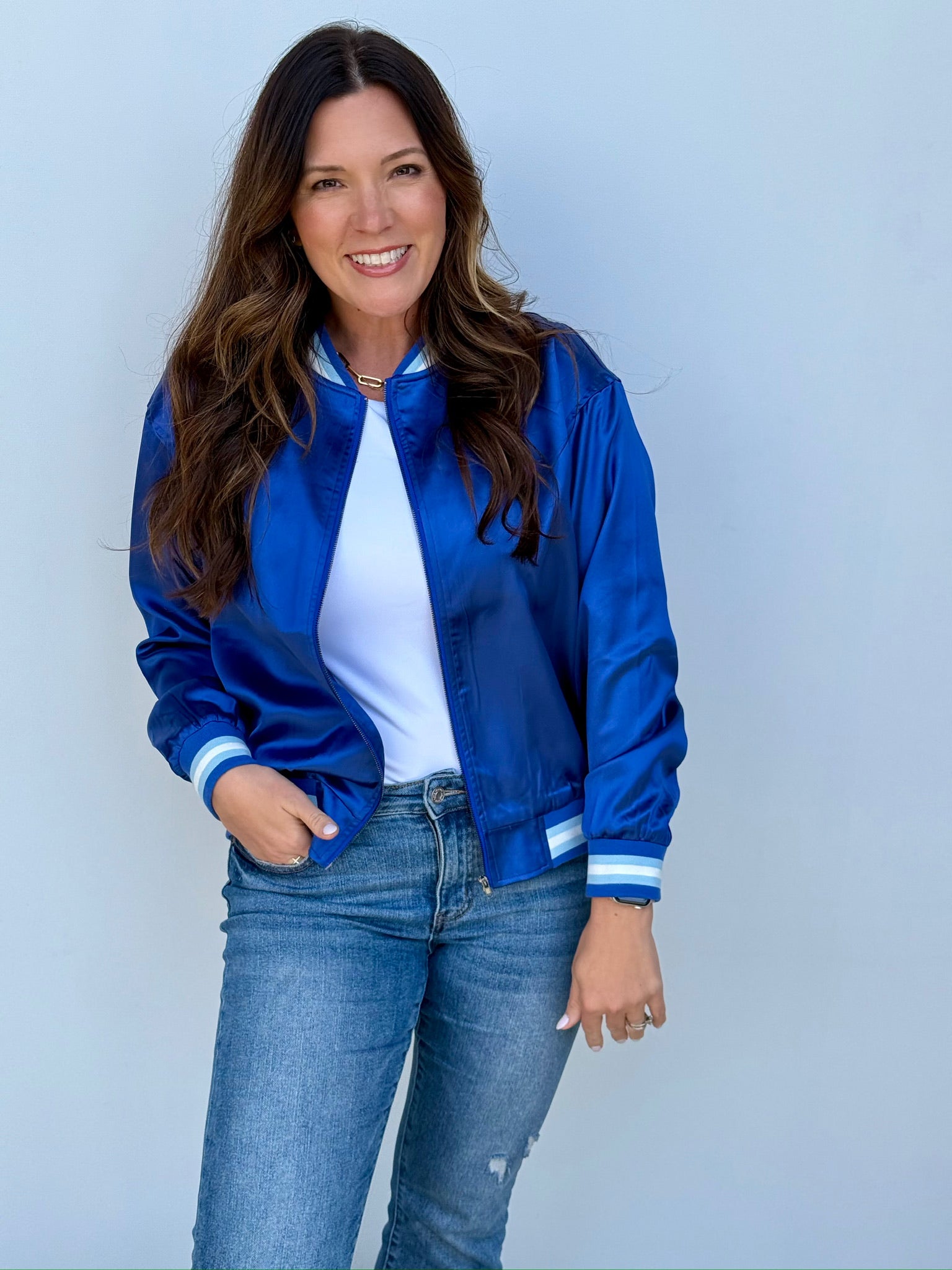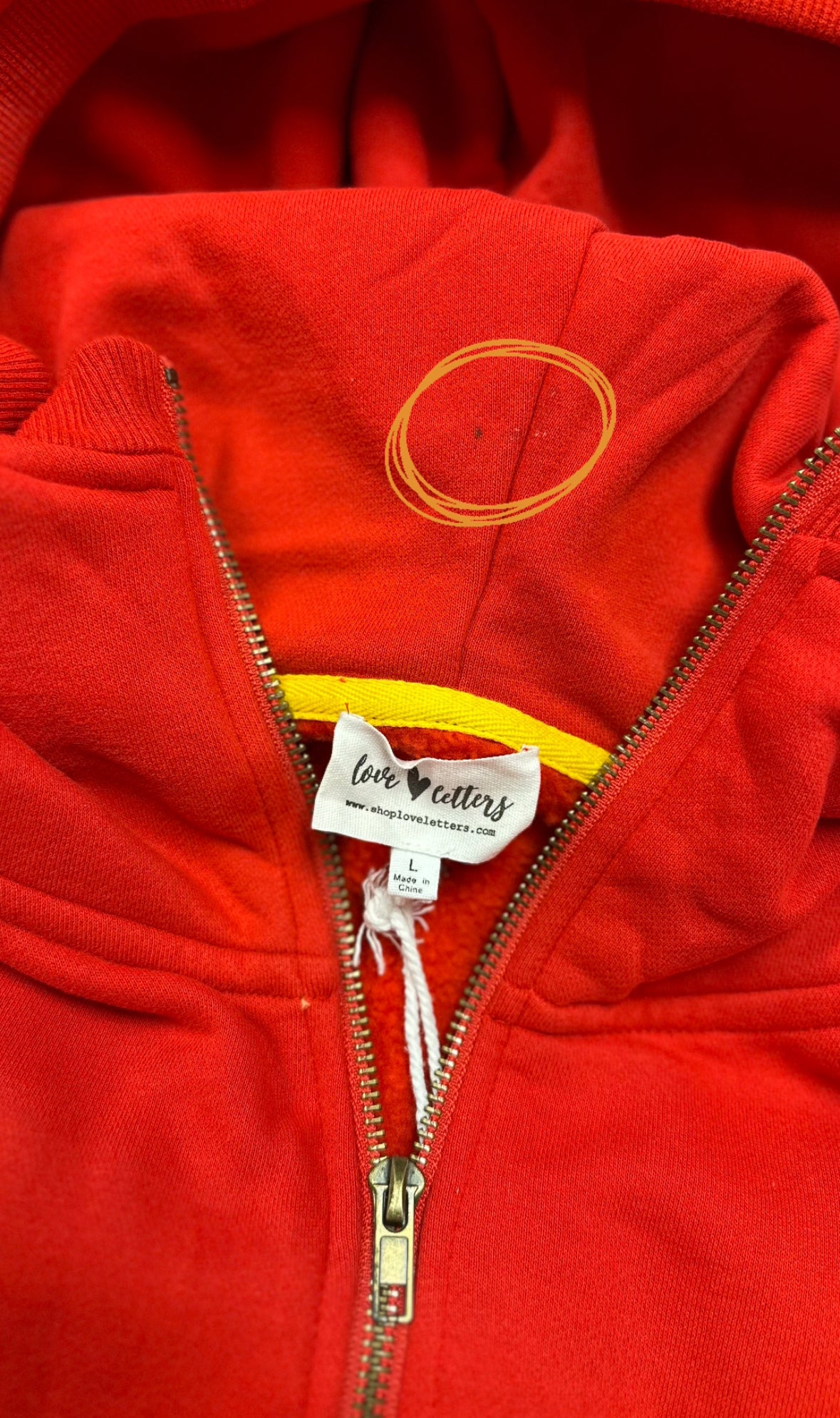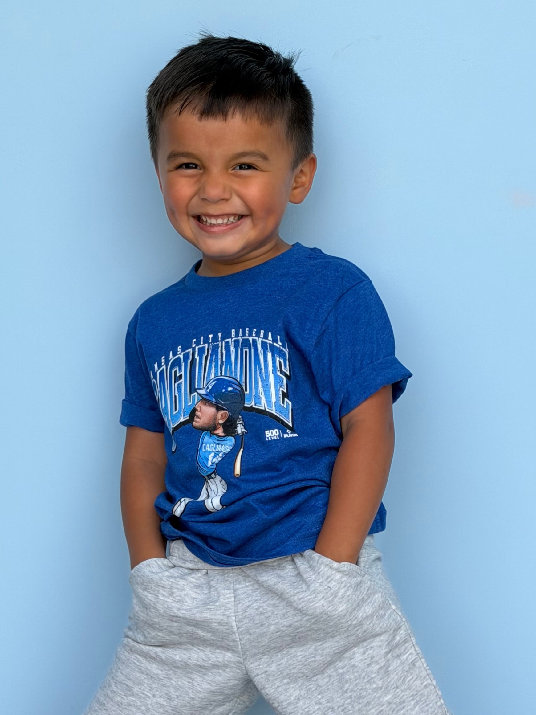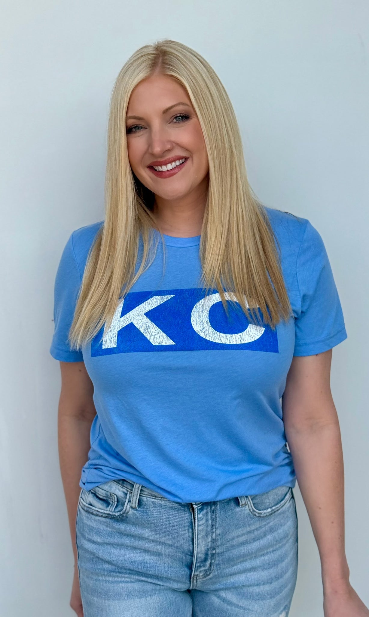 This oversized button-up cardi brings that vintage varsity vibe with a bold KC twist. Made in a vibrant game-day red with gold and white striping on the sleeves and hem, it features a detailed embroidered helmet patch on the front and “Kansas City” across the back for the ultimate fan finish.