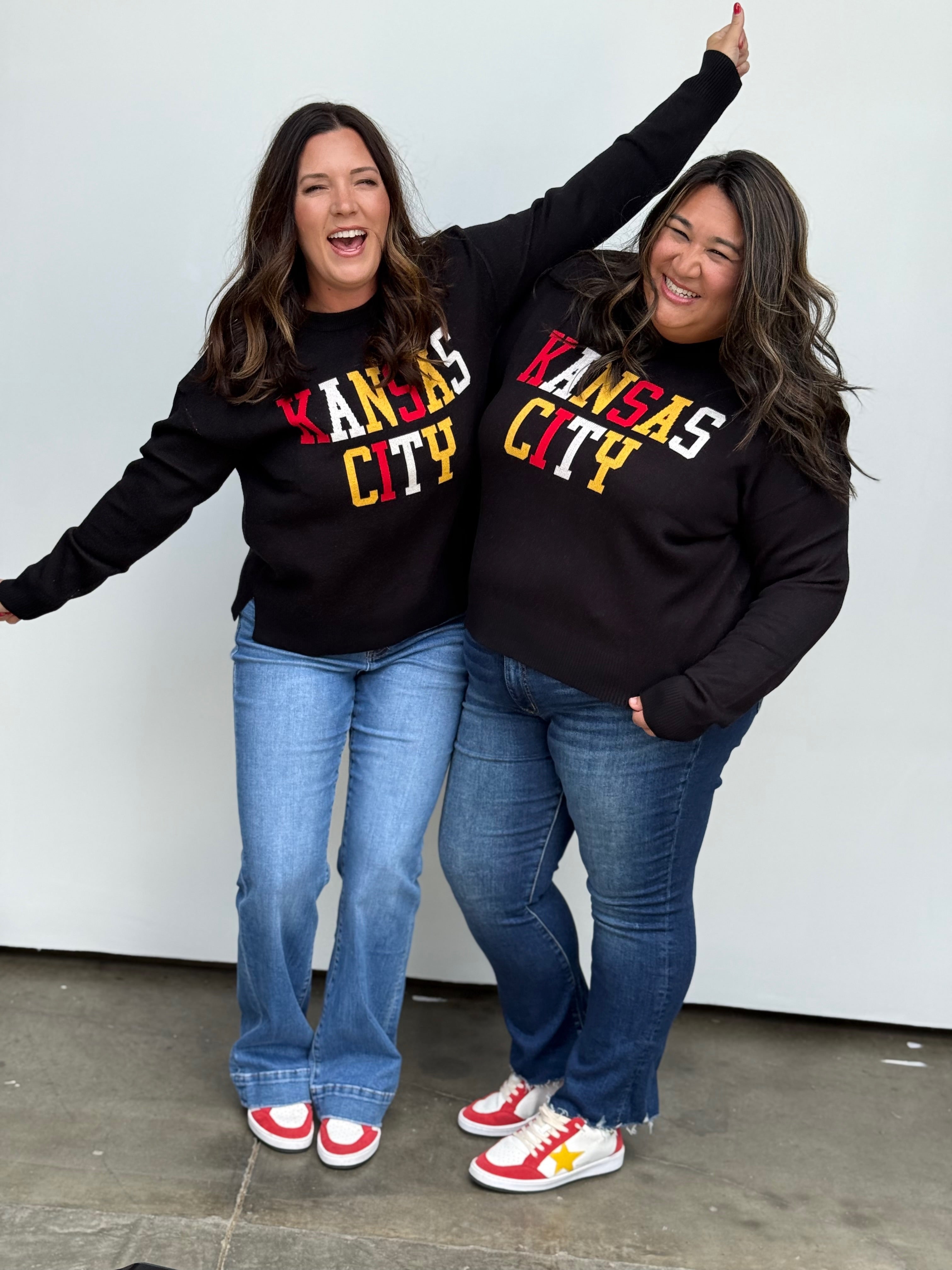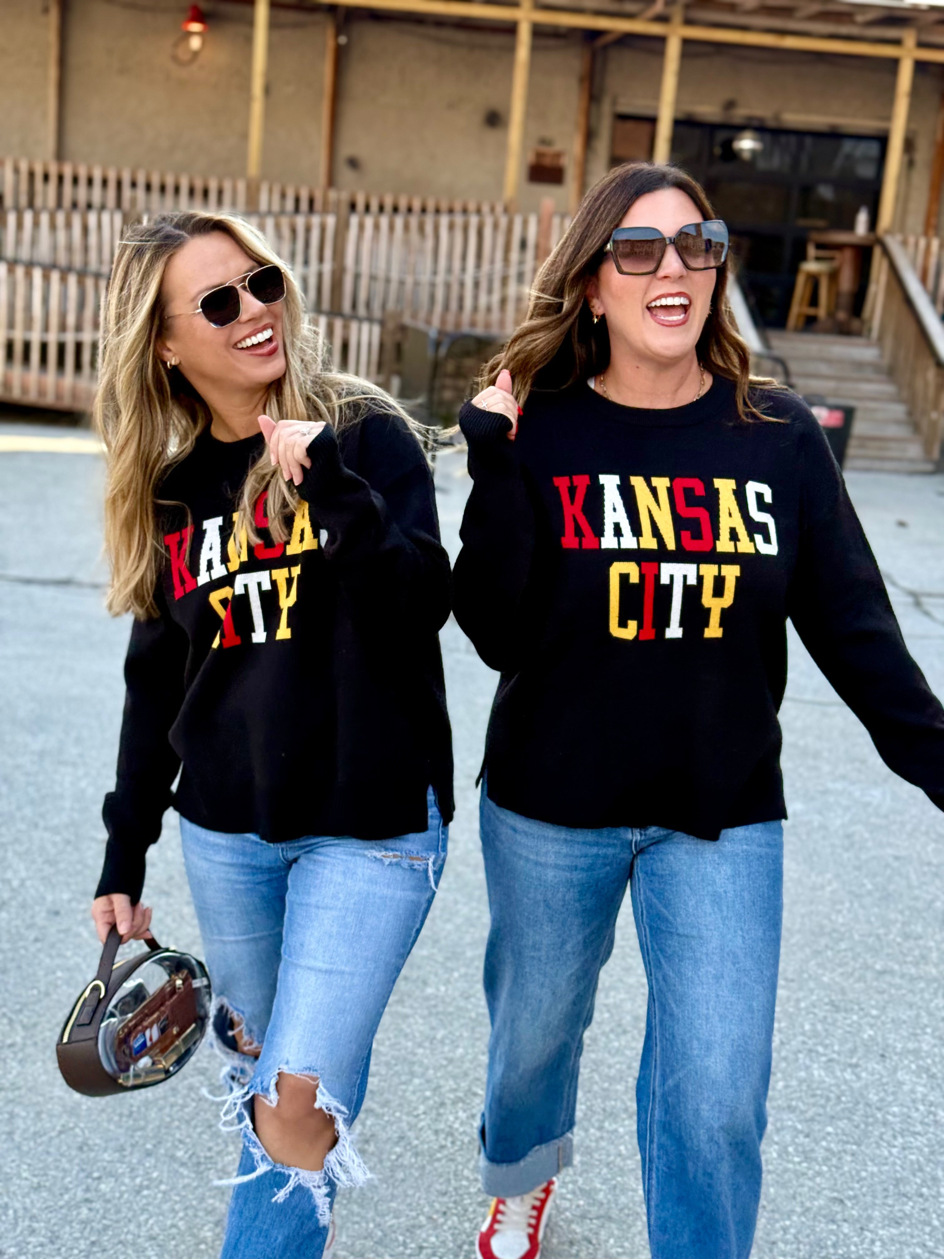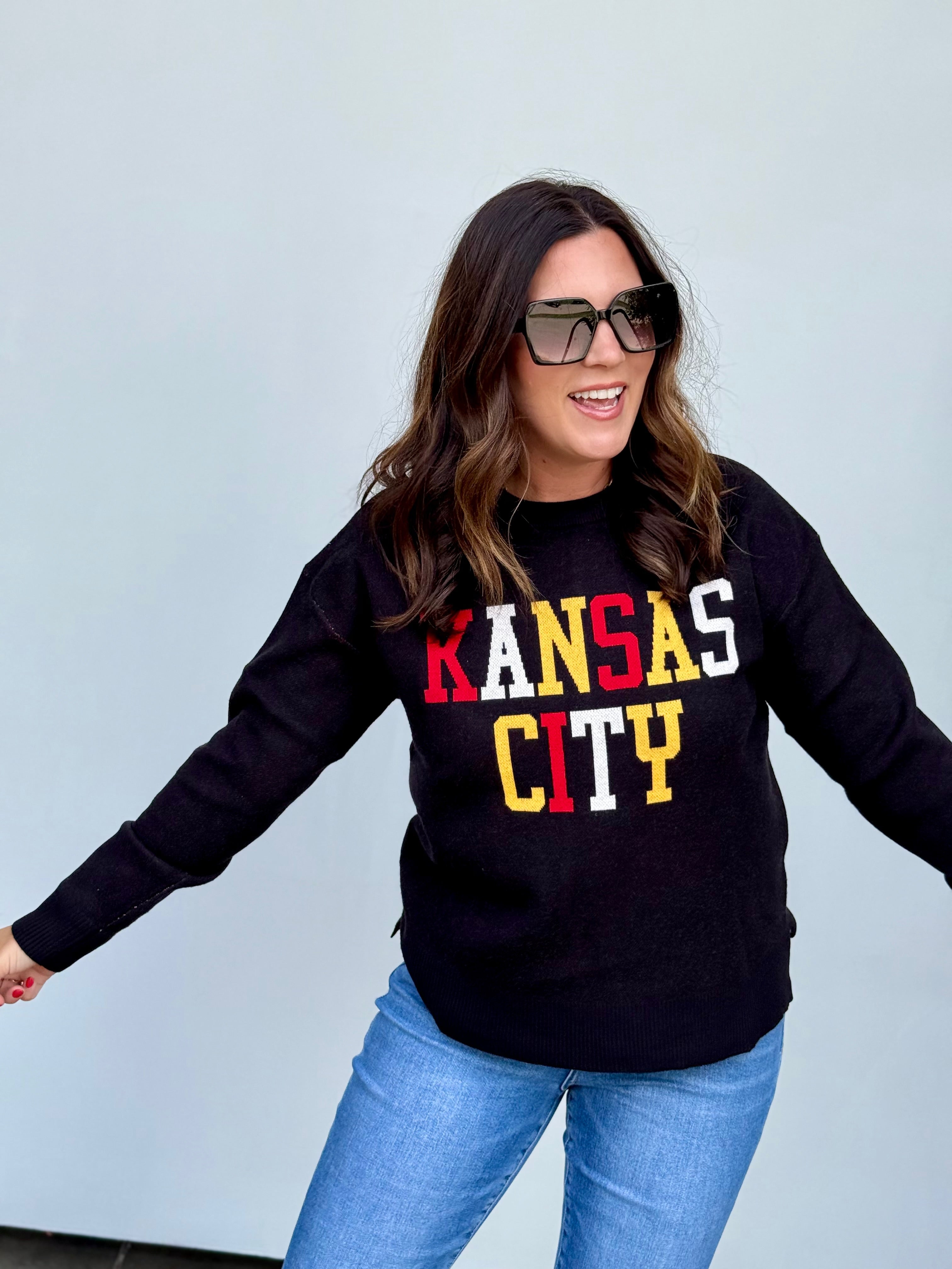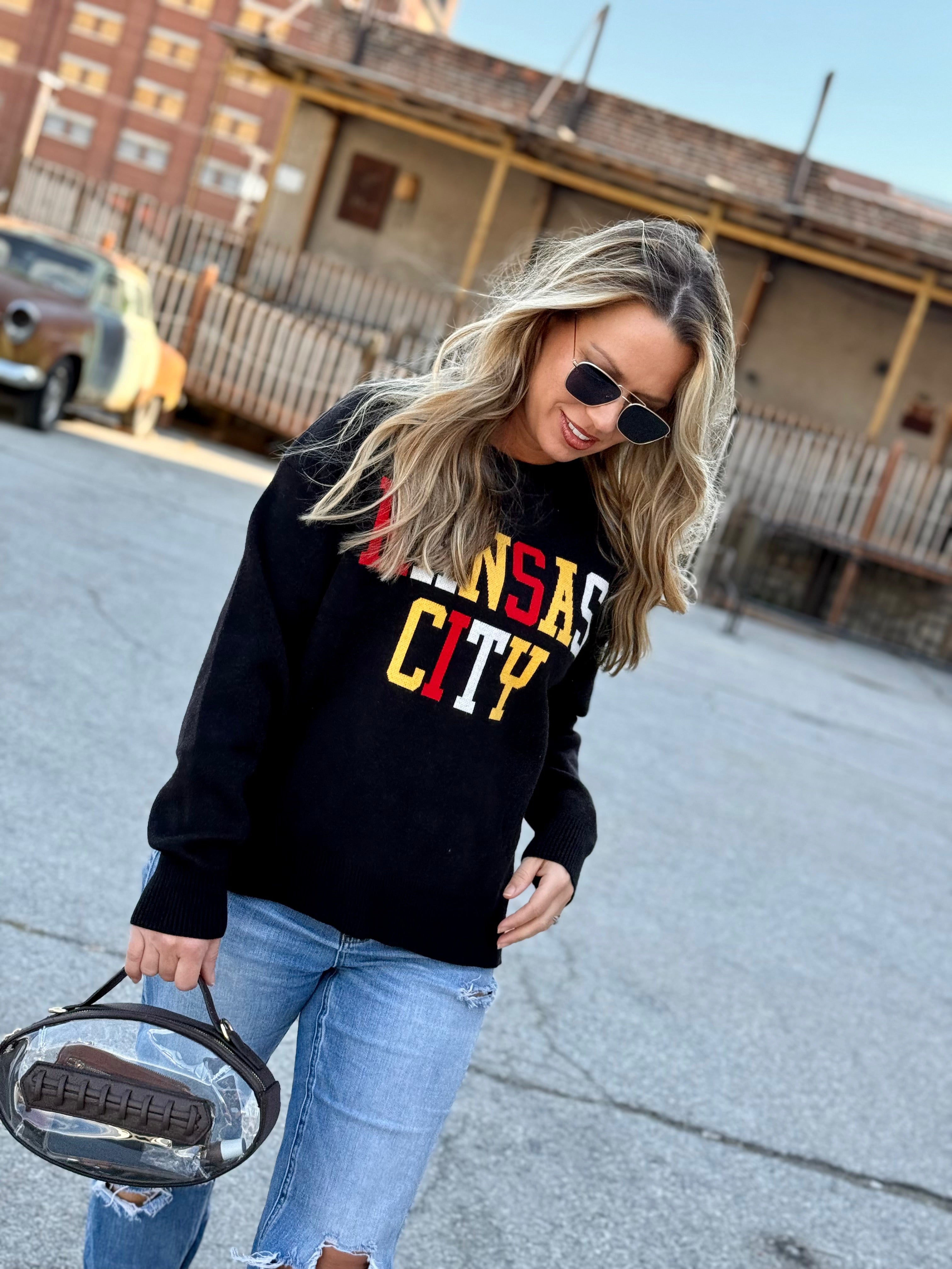 Get ready to score some style points with our End Zone Black Sweater! Made from soft material, this sweater will keep you cozy and comfortable while showing off your love for Kansas City. Perfect for game days or just everyday wear. Touchdown!