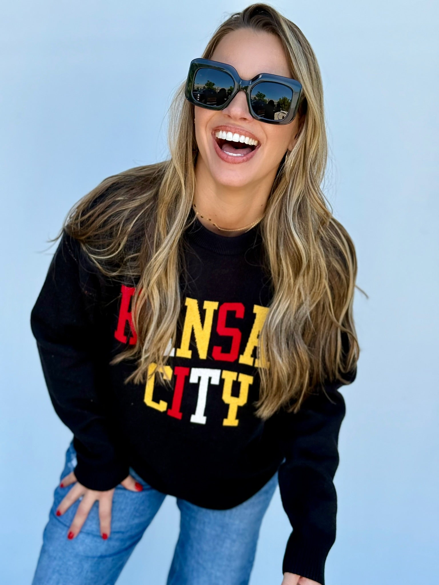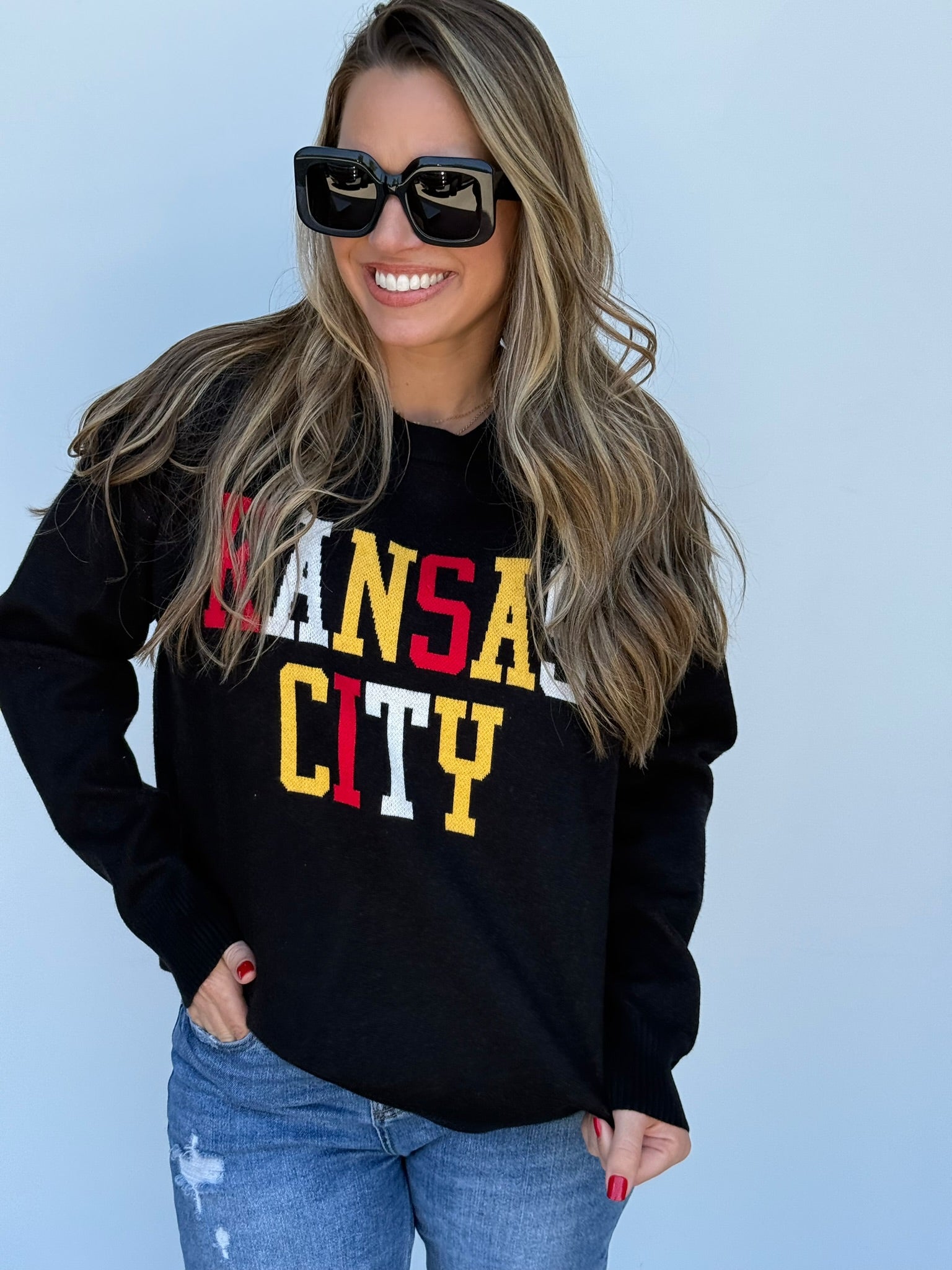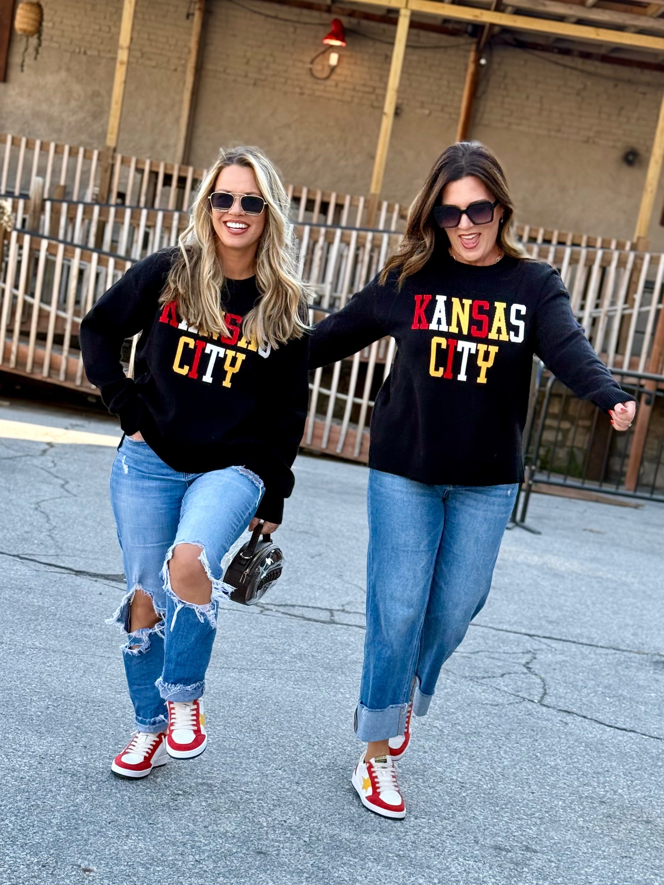 Get ready to score some style points with our End Zone Black Sweater! Made from soft material, this sweater will keep you cozy and comfortable while showing off your love for Kansas City. Perfect for game days or just everyday wear. Touchdown!