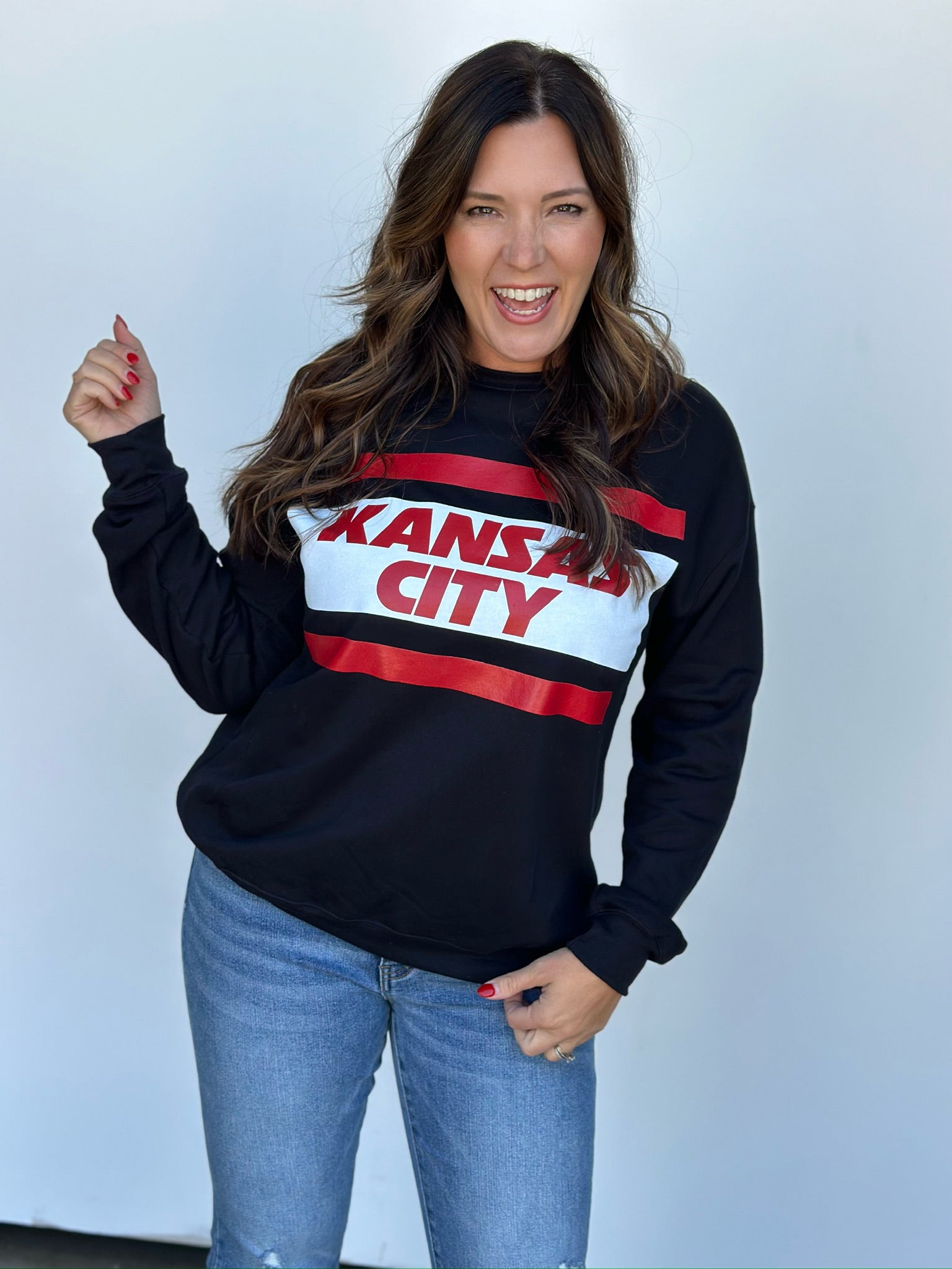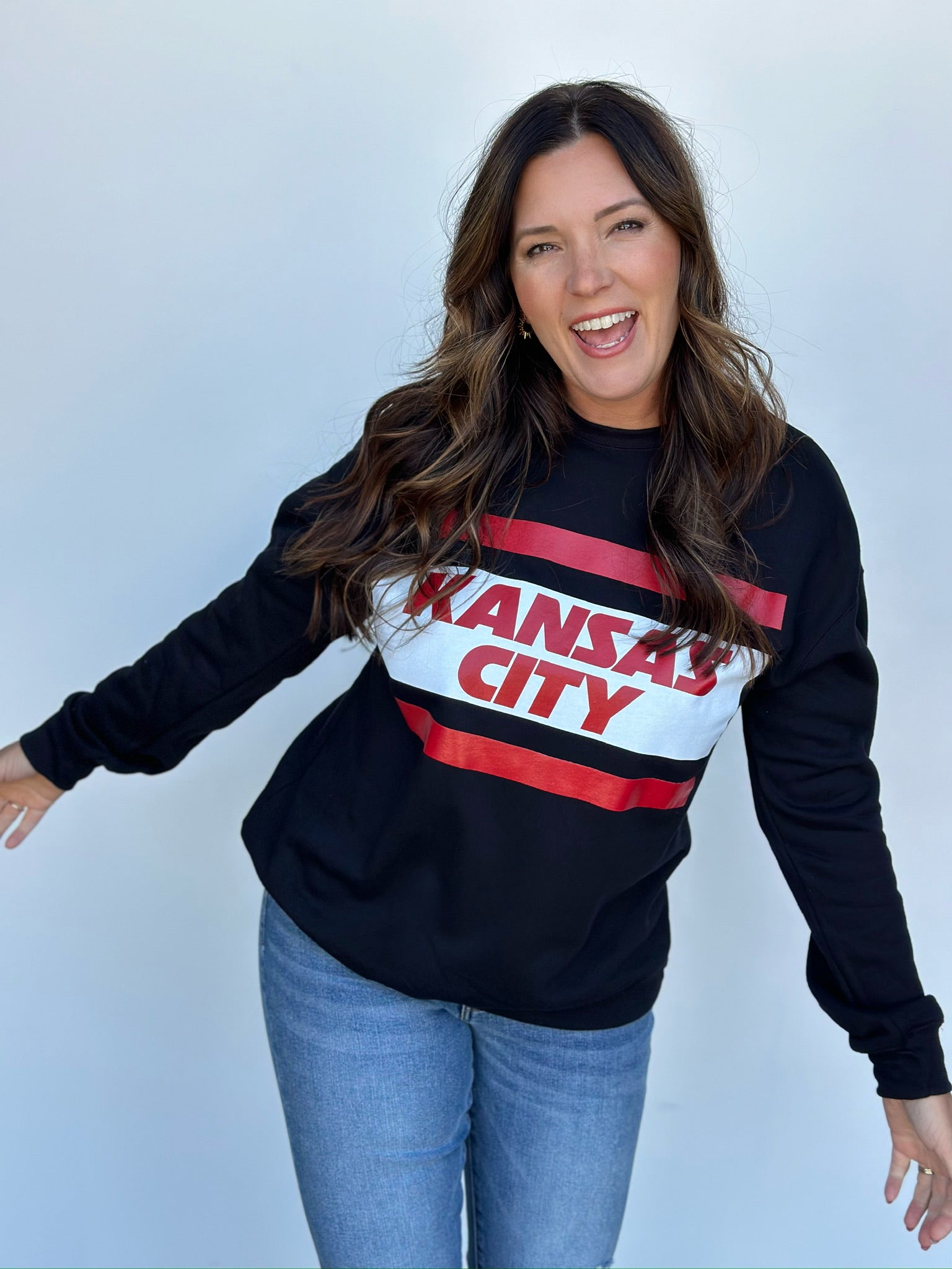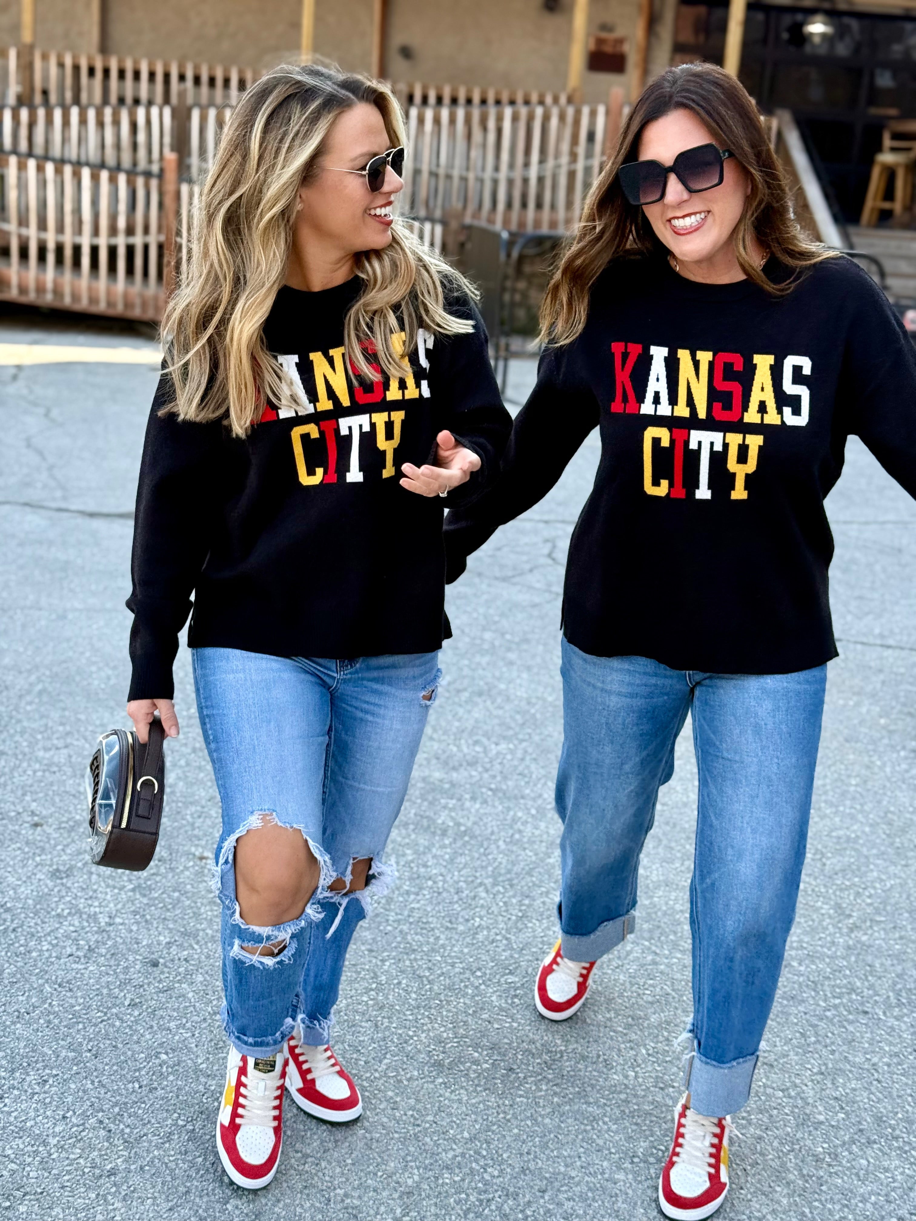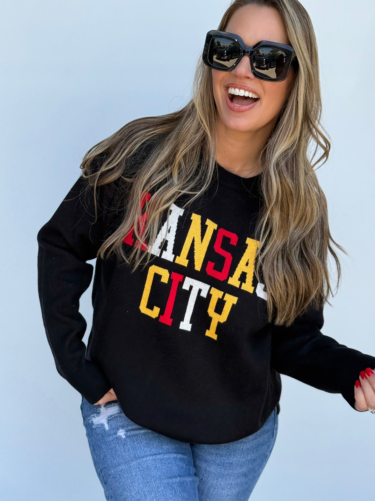 Get ready to score some style points with our End Zone Black Sweater! Made from soft material, this sweater will keep you cozy and comfortable while showing off your love for Kansas City. Perfect for game days or just everyday wear. Touchdown!