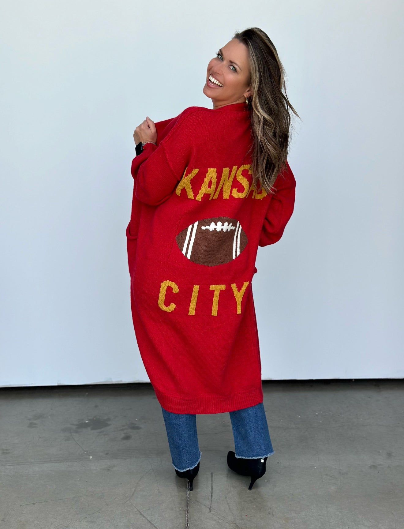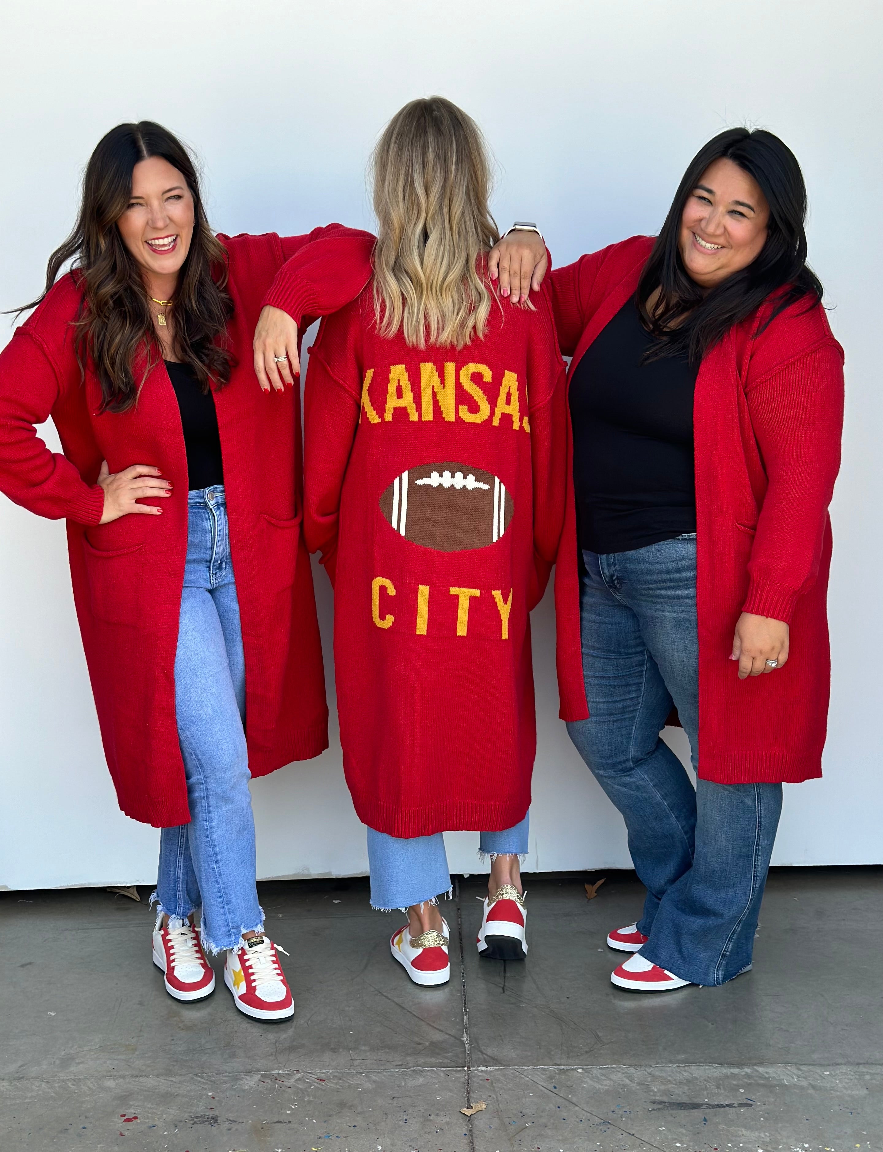 Celebrate your Kansas City football pride with our exclusive long cardigan! Perfect for layering on game day or any day you want to show your team spirit. Made with high-quality materials, this cardigan ensures comfort and style.