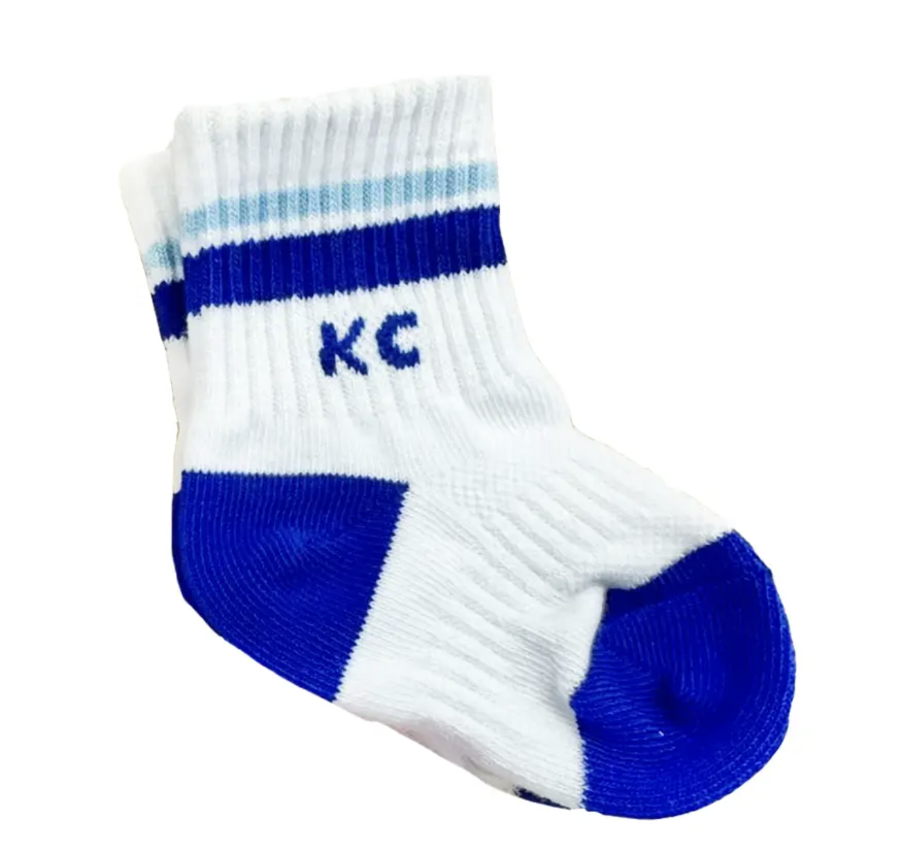 Kansas City Crew Socks - BABY - White with Blue Stripes