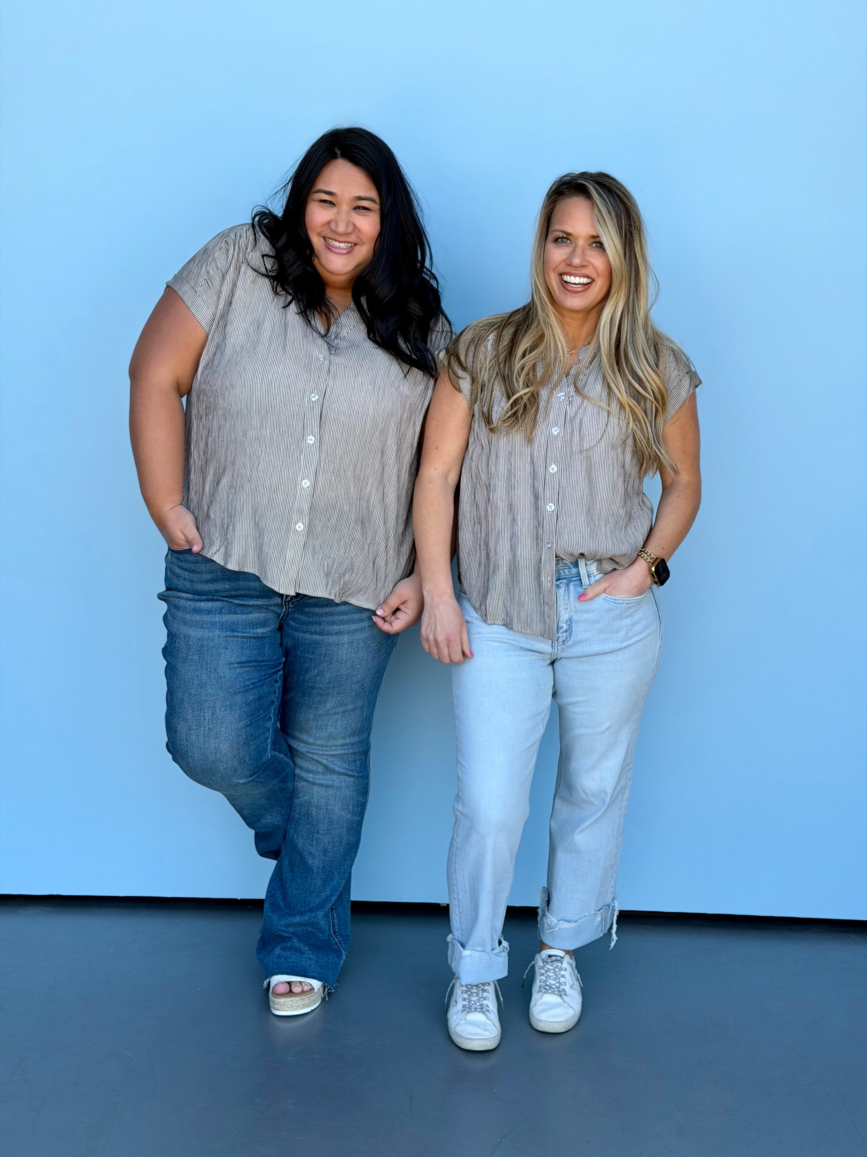 Crisp pinstripe button-down with a refined cuff sleeve design that transitions seamlessly from office to weekend wear. Lightweight fabric keeps you comfortable throughout the day, while the tailored fit runs true to size for an effortless, polished look. Perfect for layering or wearing solo.
