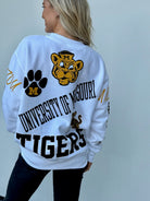 Get ready to roar with the Mizzou Kelcey Crew! Soft and comfortable, this fun print crew is perfect for any fan of the Tigers. Show off your school spirit in style.