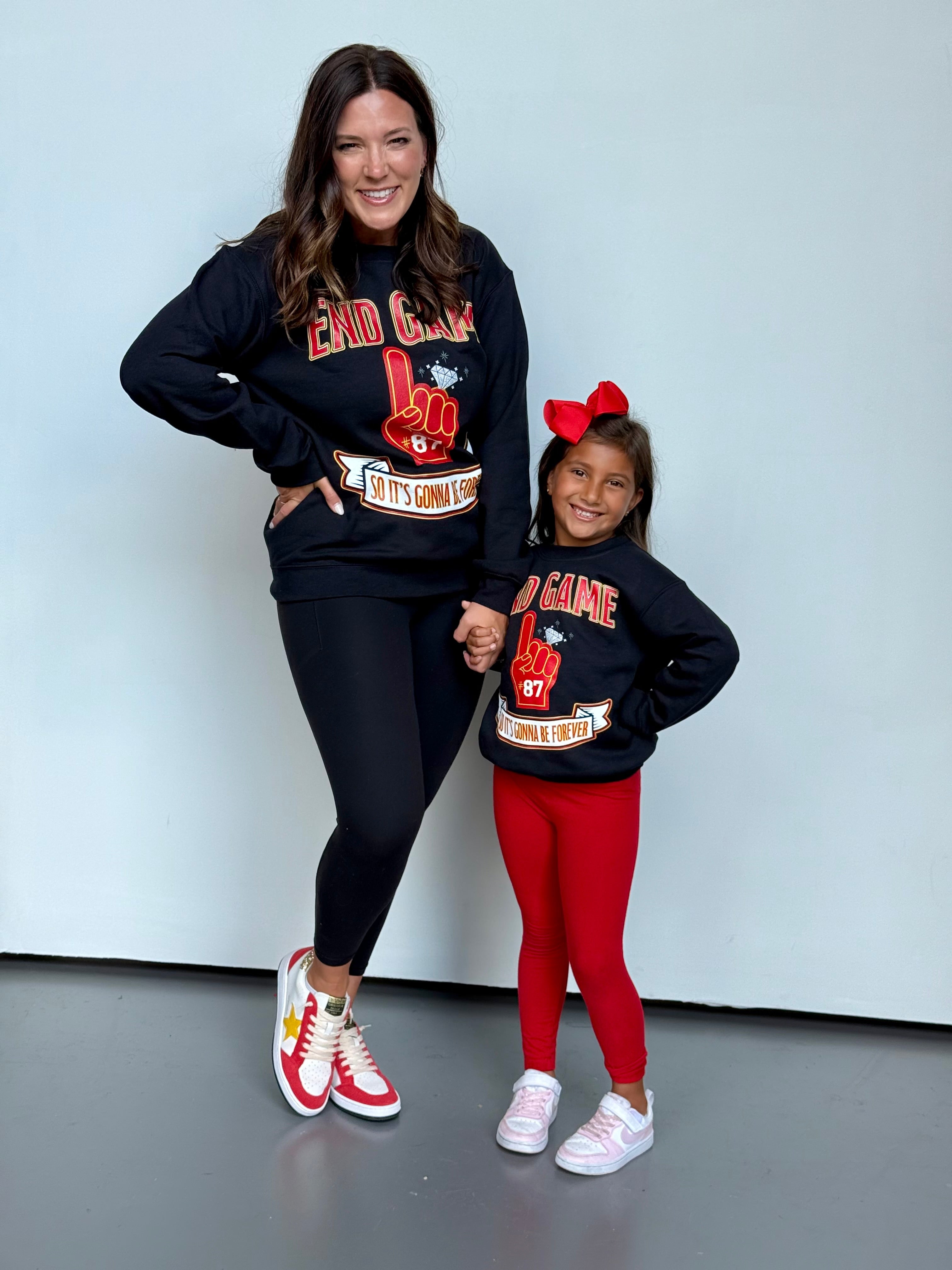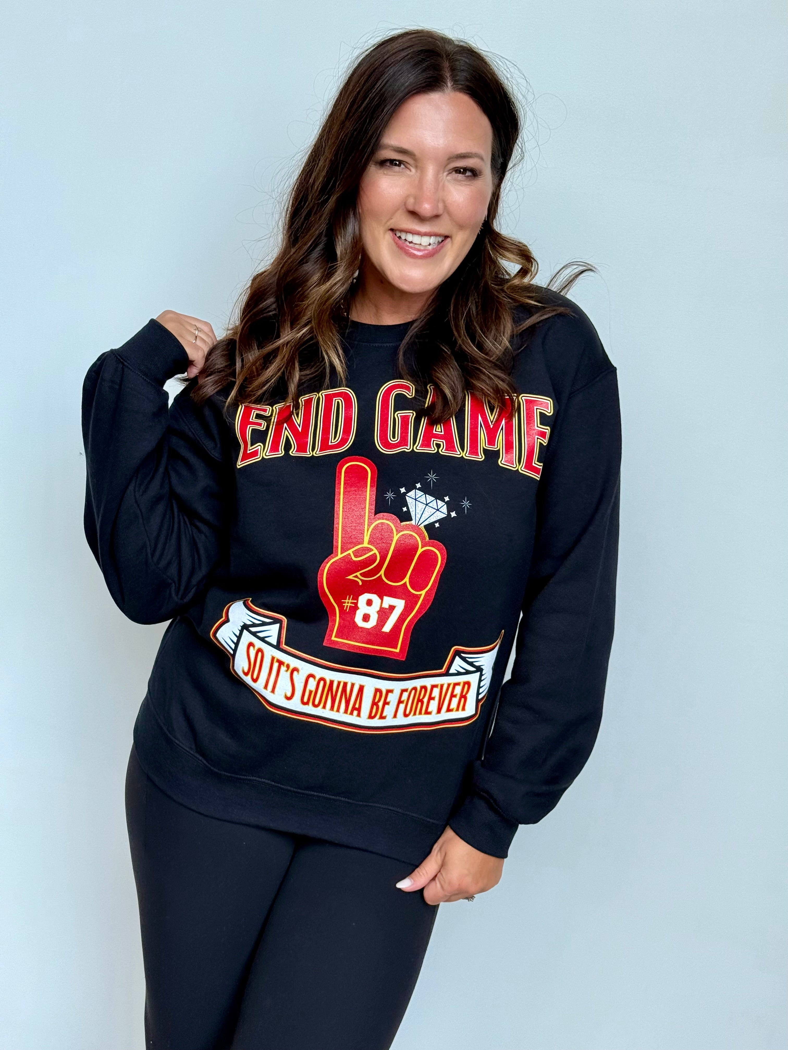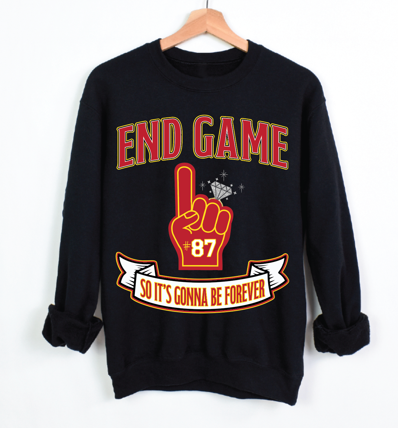 This limited-edition End Game crewneck celebrates the unmatched greatness of Kansas City football and the city’s favorite newly engaged lovebirds!!! Ahhhhhh!
