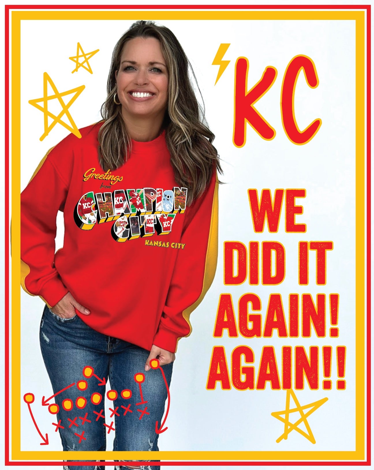 ANOTHER Love Letters private labeled masterpiece! Greetings from CHAMPION CITY!!! We’re totally crushing on the unique style of this two-toned crewneck. It’s women’s sizing, our model is rocking her true size here, size small!