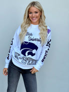 Get ready to cheer on your favorite team with the K-State Kelcey Crew! With a fun K State print and soft material, this crew is perfect for showcasing your Wildcats pride. Comfort and style? That's a win-win!