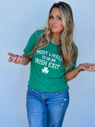 Featuring the playful phrase โMost Likely to Do an Irish Exit,โ this tee is the perfect blend of comfy + clever. Lightweight, lived-in soft, and destined to become the one you reach for every single time.ย ๐โจ