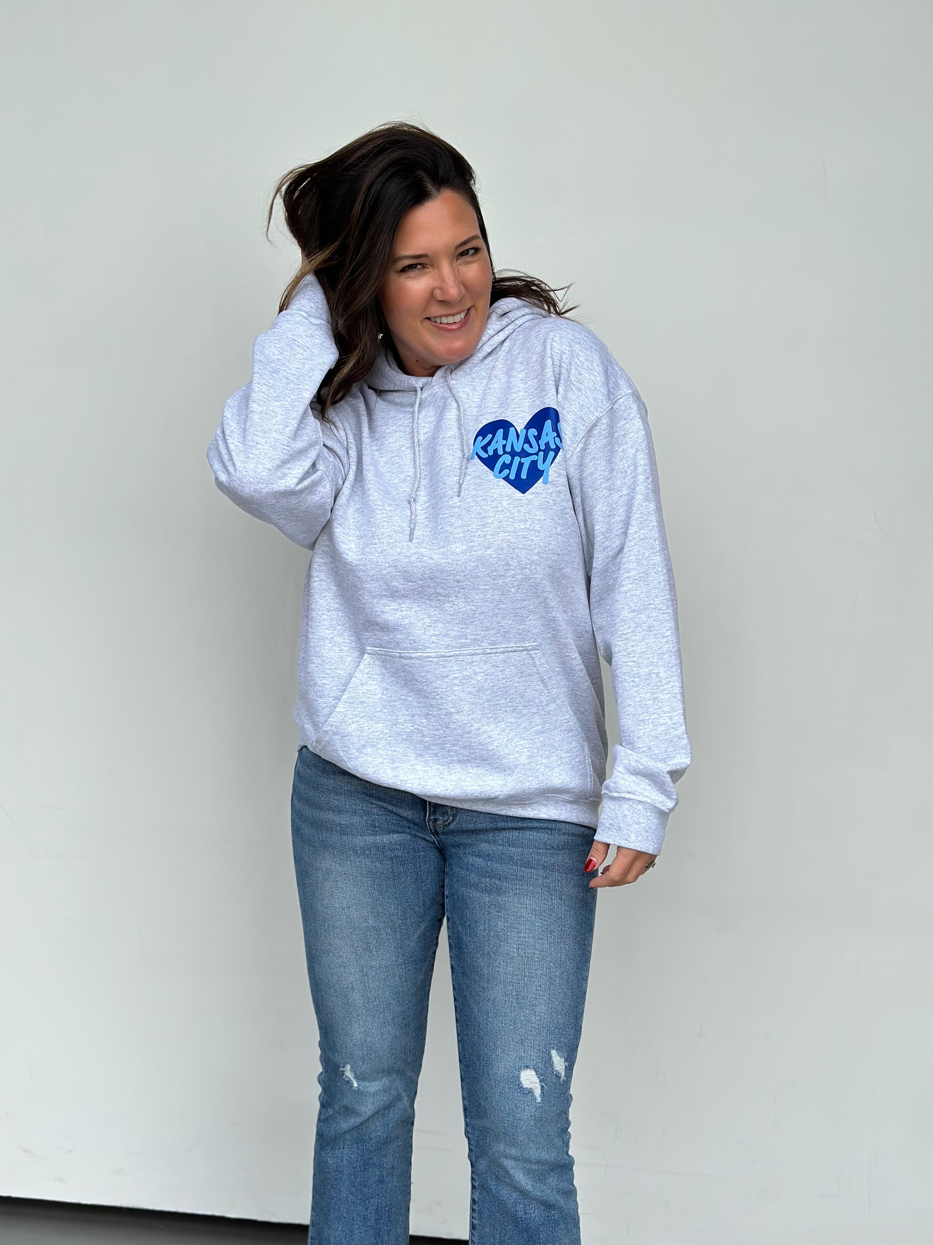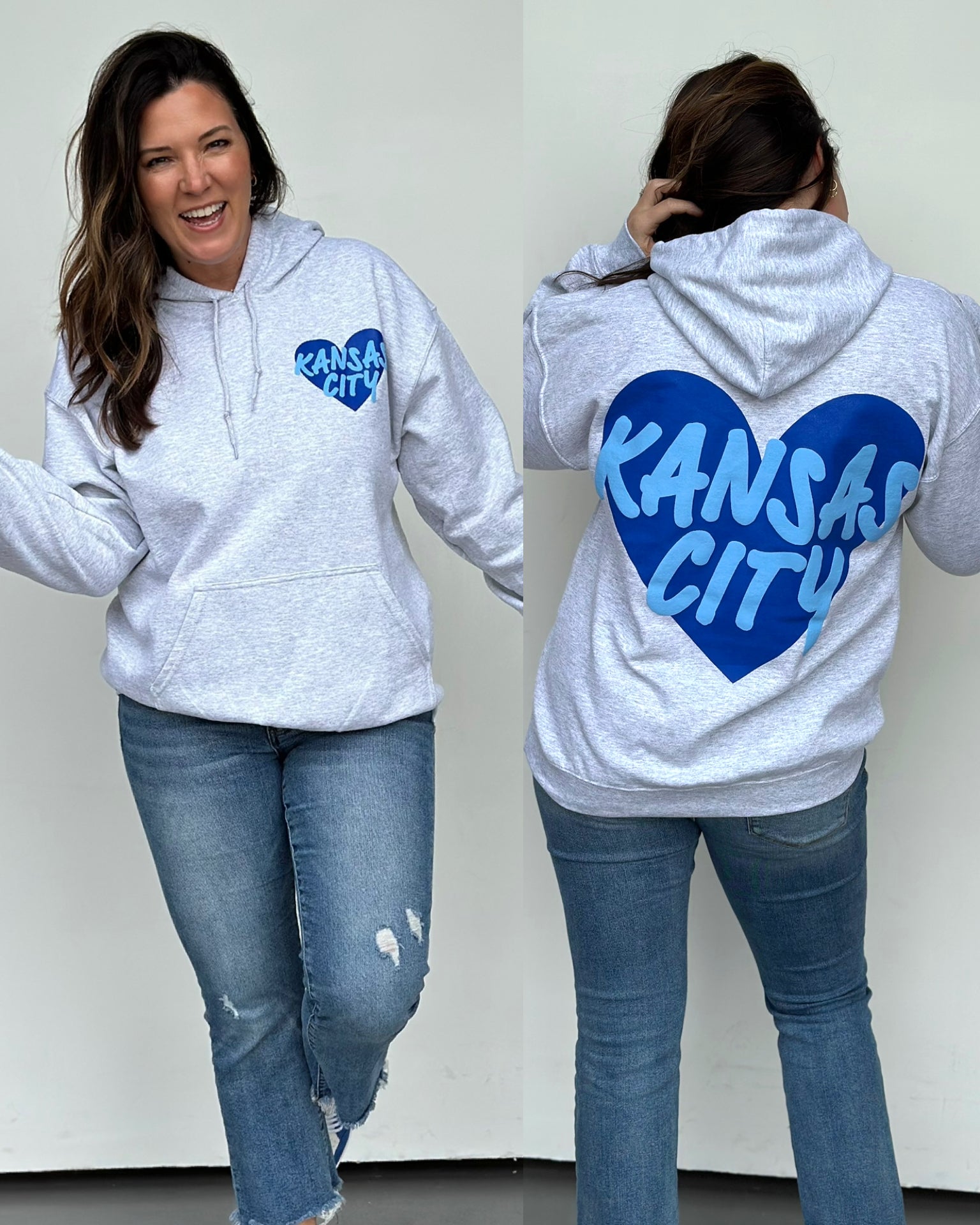 Meet the hoodie that checks every box: the perfect Ash Grey, super-soft, sweatshirt paired with an eye-catching puff print in gorgeous blue hues. 💙. True to size unisex fit.
