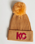 Mustard beanie red KC sequin letters. Shimmery thread throughout. * Spot clean only * Do not put in washer or dryer