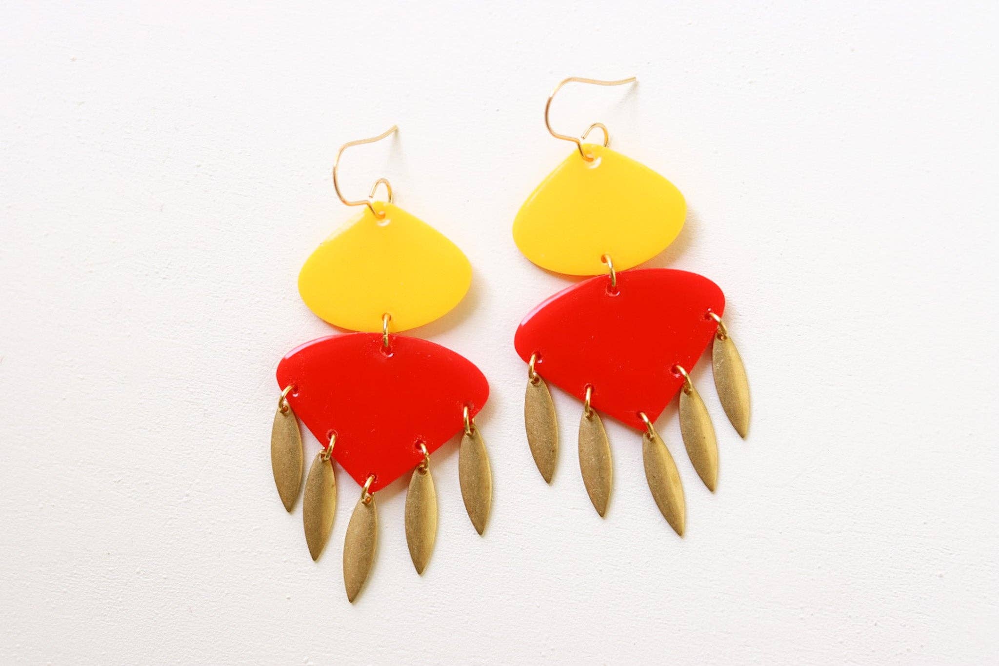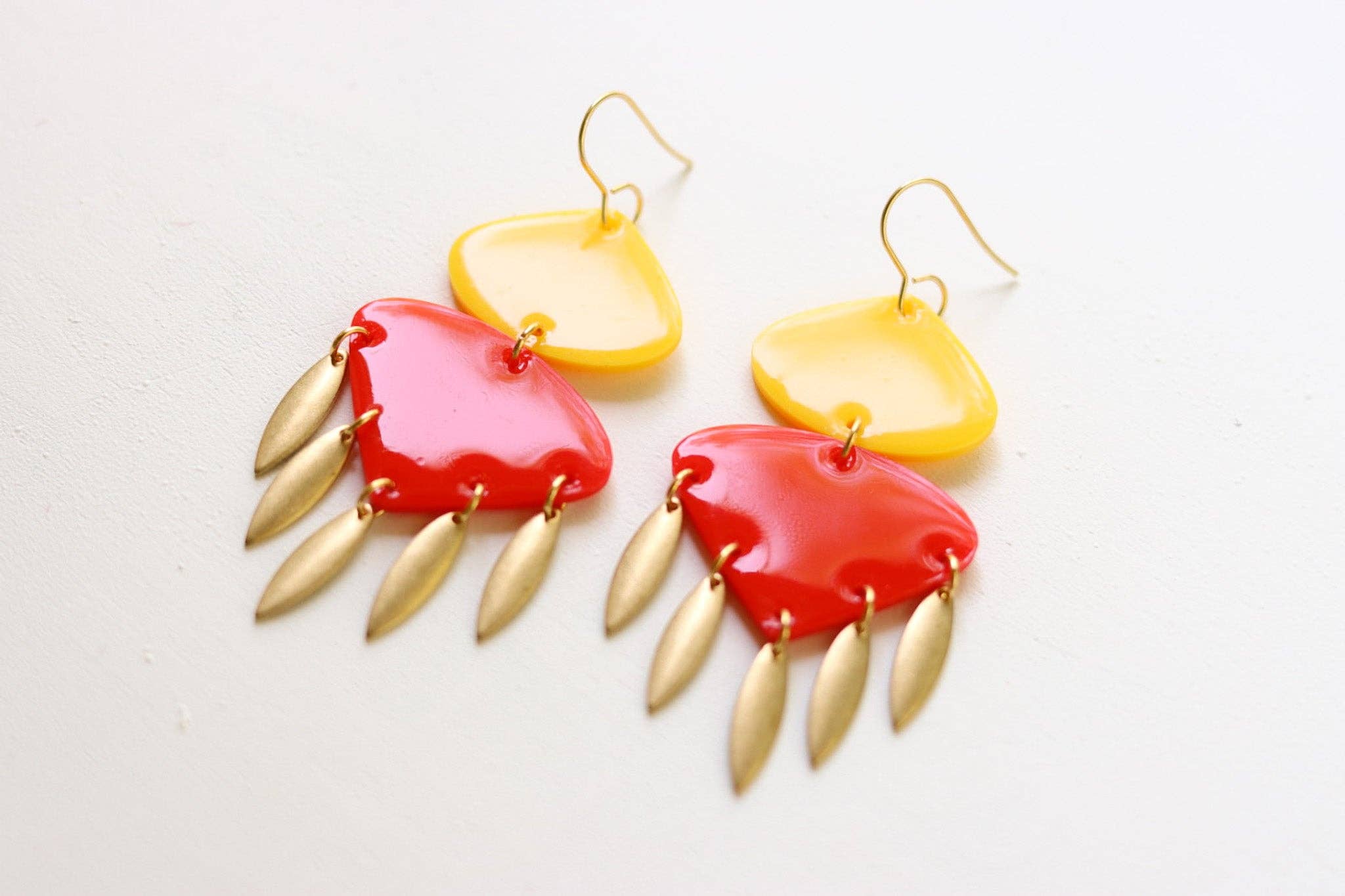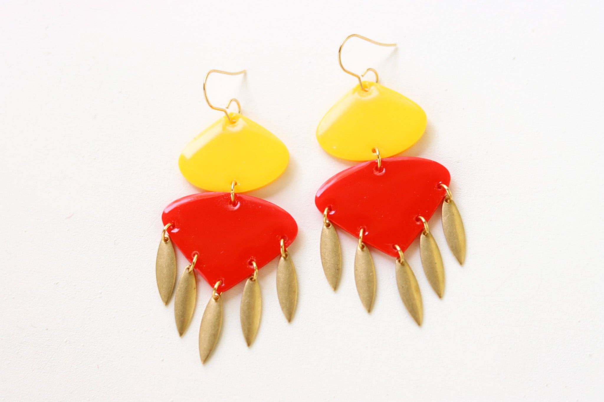 Red & Yellow w/ Gold Fringe Earring