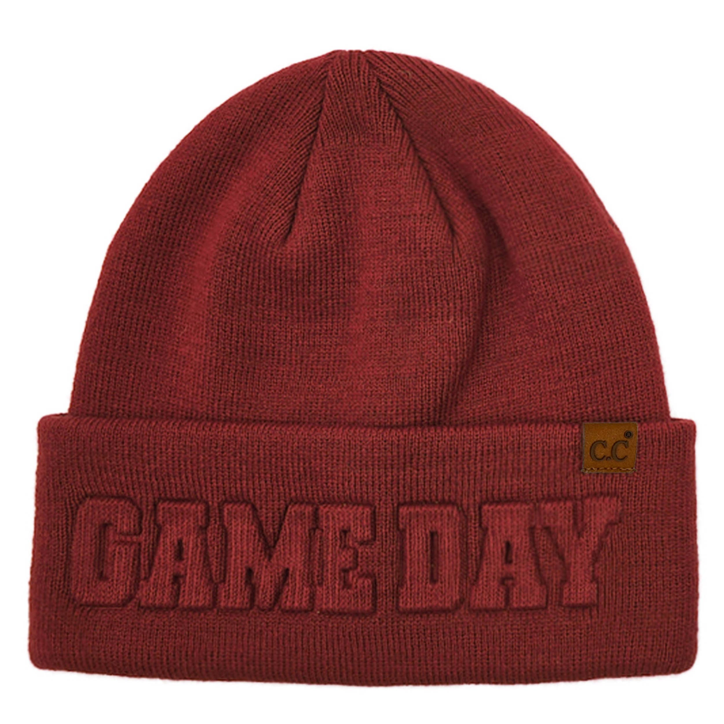 C.C GAME DAY Embossed Lettering Solid Color Cuff Beanie Winter Hat 100% Acrylic 9.5" x 8.75" Cuff 3.5" One Size
