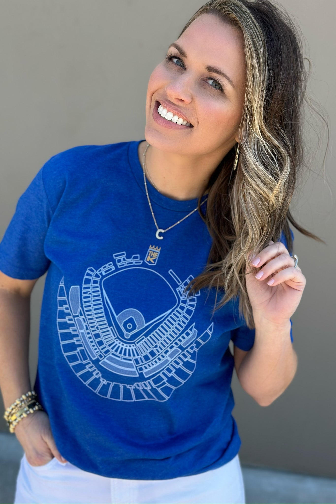 In Kansas City, we celebrate our boys in blue all year long! Shop our huge selection of women's blue t-shirts and blue sweatshirts to cheer on your favorite Kansas City baseball team. Browse the Kansas City Collection to find a wide variety of women's tops with our favorite KC designs.