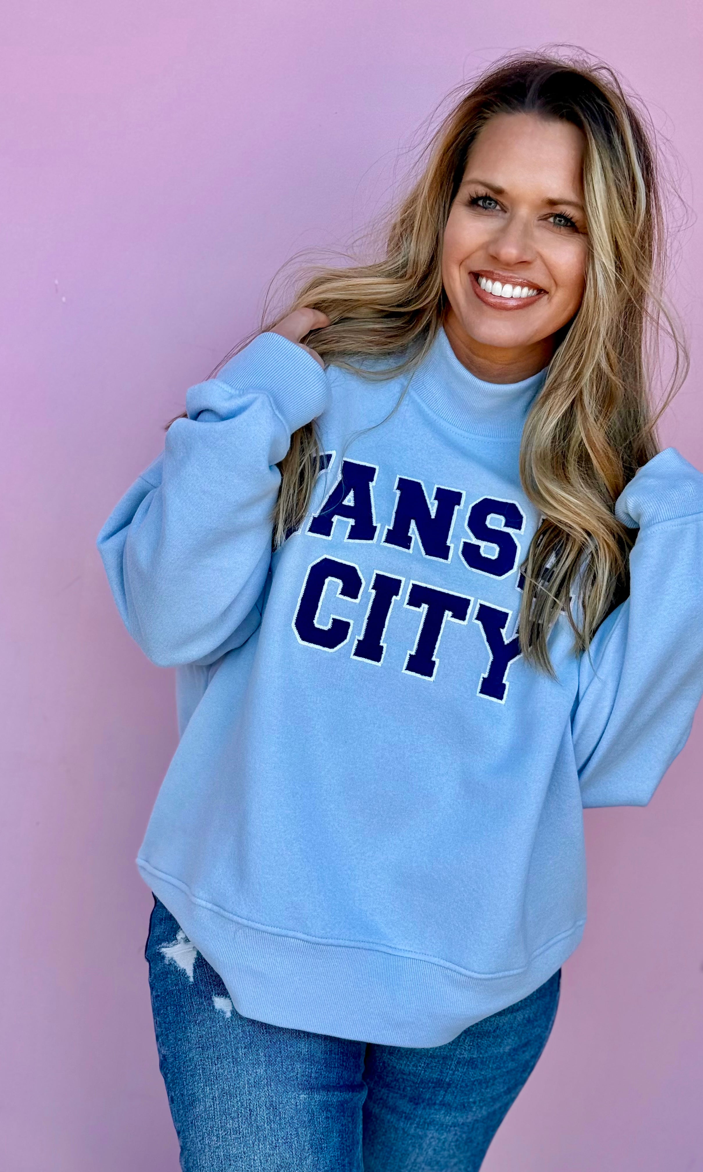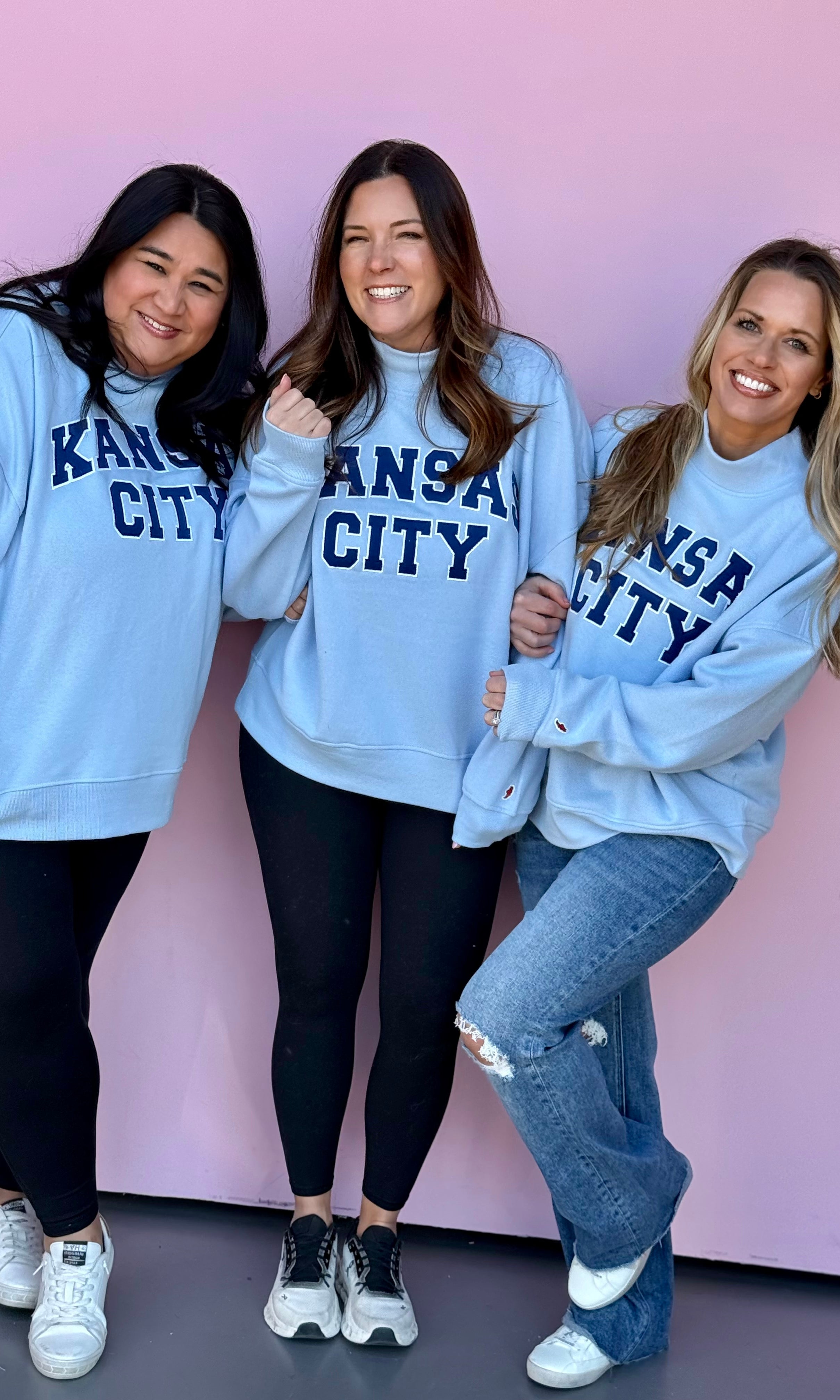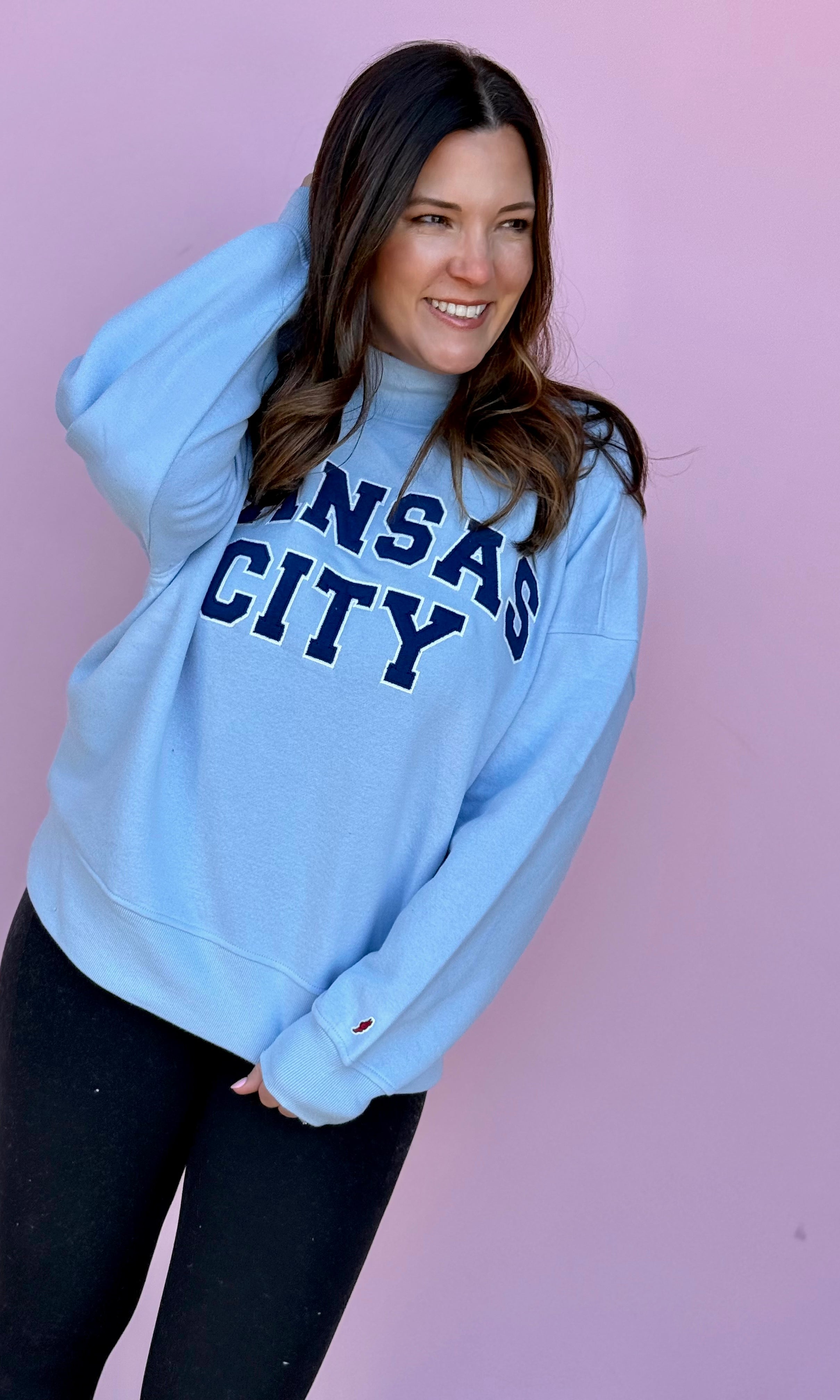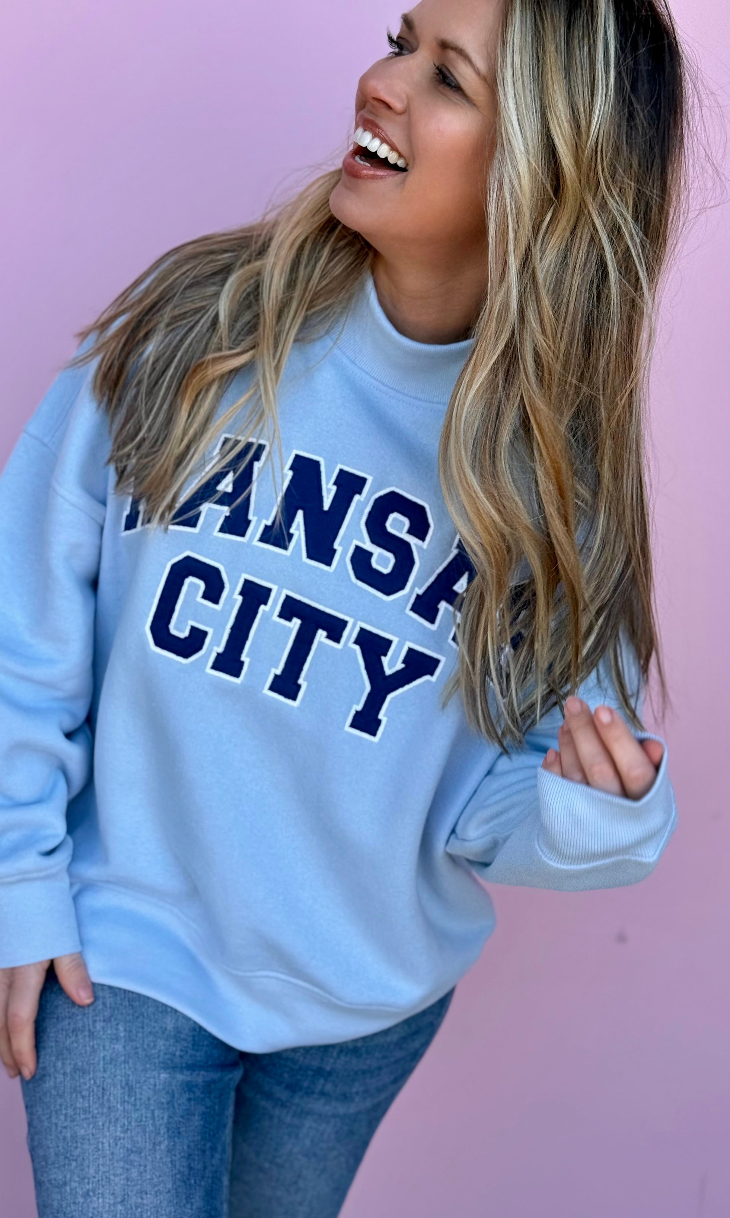 In Kansas City, we celebrate our boys in blue all year long! Shop our huge selection of women's blue t-shirts and blue sweatshirts to cheer on your favorite Kansas City baseball team. Browse the Kansas City Collection to find a wide variety of women's tops with our favorite KC designs.