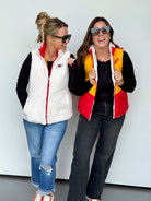 Show your Chiefs pride from every angle with this reversible vest that gives you two bold looks in one. Flip between the cozy white fuzzy side featuring the iconic arrowhead and the vibrant red and yellow side with "Chiefs" emblazoned across the front. Practical pockets on both sides keep your essentials close, while the full zip closure makes layering effortless. Officially licensed and cut to true size, this is the ultimate game day essential for fans who want versatility without compromise.