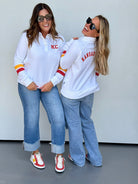 Stay stylish on game day with this true to size KC Chiefs Women’s Fleece Polo! White with a pop of red and yellow stripe on the sleeve, this polo features a 1/4 button for easy wear and is made of incredibly soft fleece. Perfect for cheering on your team in comfort and style!
