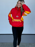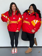 Rock your team spirit in this classic Starter 1/4 zip coat featuring the iconic Chiefs colors. The detachable hood gives you versatility for any game day mood, while functional pockets keep your essentials close. An adjustable hood and elastic waistband ensure a customized fit that moves with you. Also, has a side zipper for added room. Perfect for die-hard fans who want comfort without compromising style. Note: Men's sizing runs generous—consider sizing down if you prefer a snugger fit.