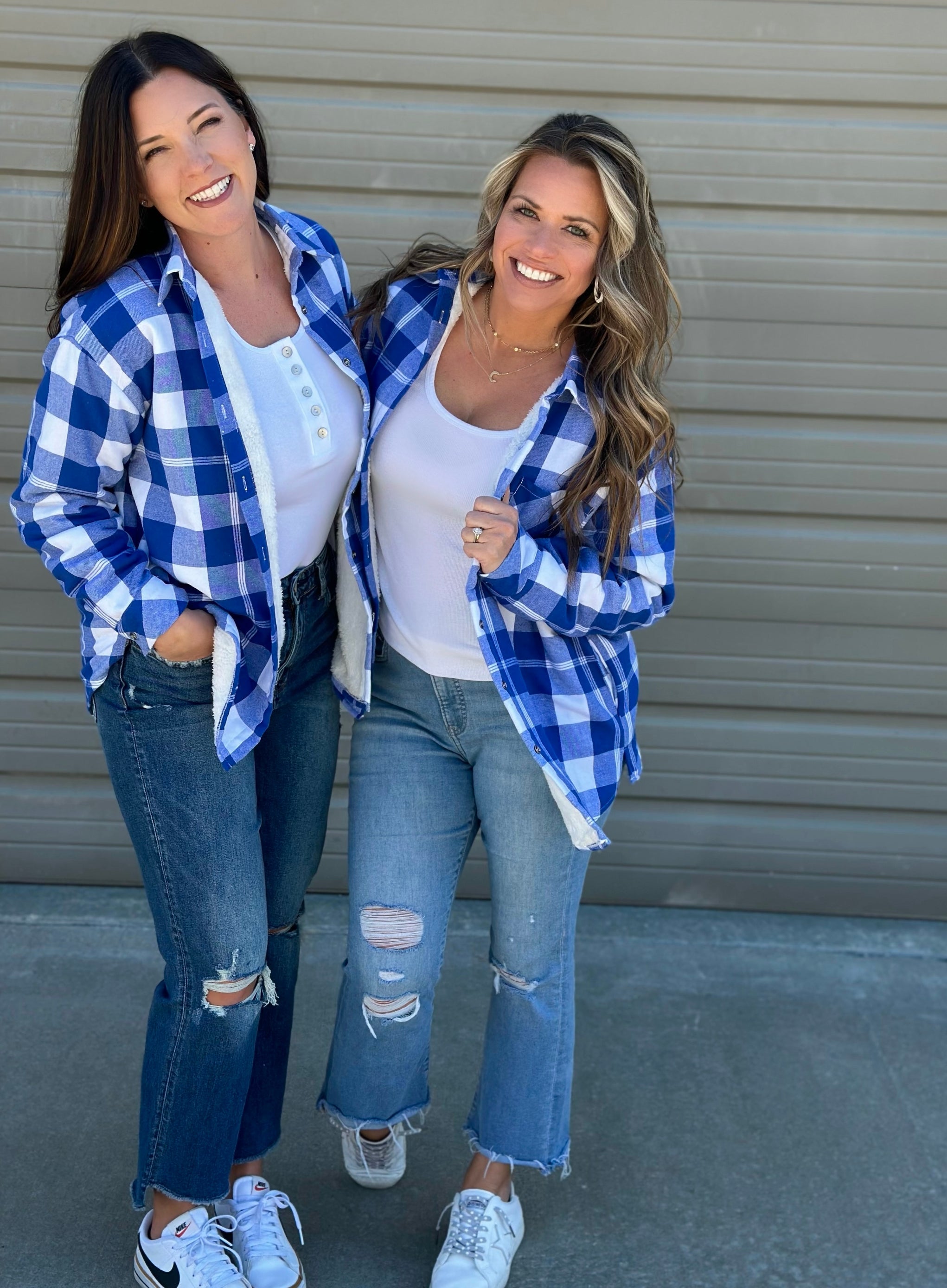 A gorgeous custom Shacket with Kansas City’s favorite spring colors - Royal Blue and White! The colors are beautiful and bright. It’s Sherpa lined but light weight enough to layer, has pockets and the perfect length to wear with jeans or leggings. This is the PERFECT item for the chilly night games and all the fall games too! The Shacket is a must have for this baseball season!!! (If you have the red and gold Shacket, this one fits the exact same!)