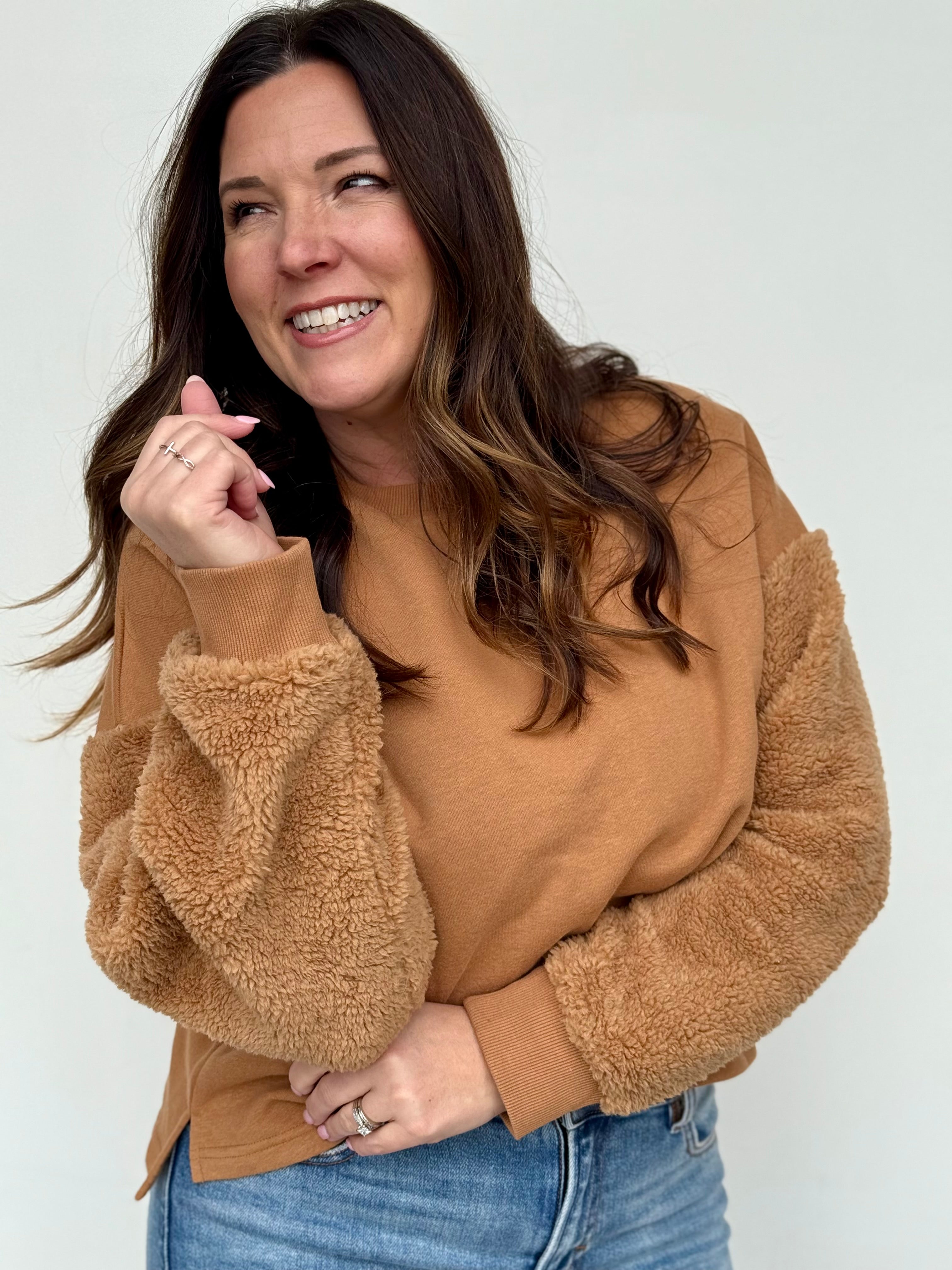 Sherpa Sleeve Crewneck- FINAL SALE