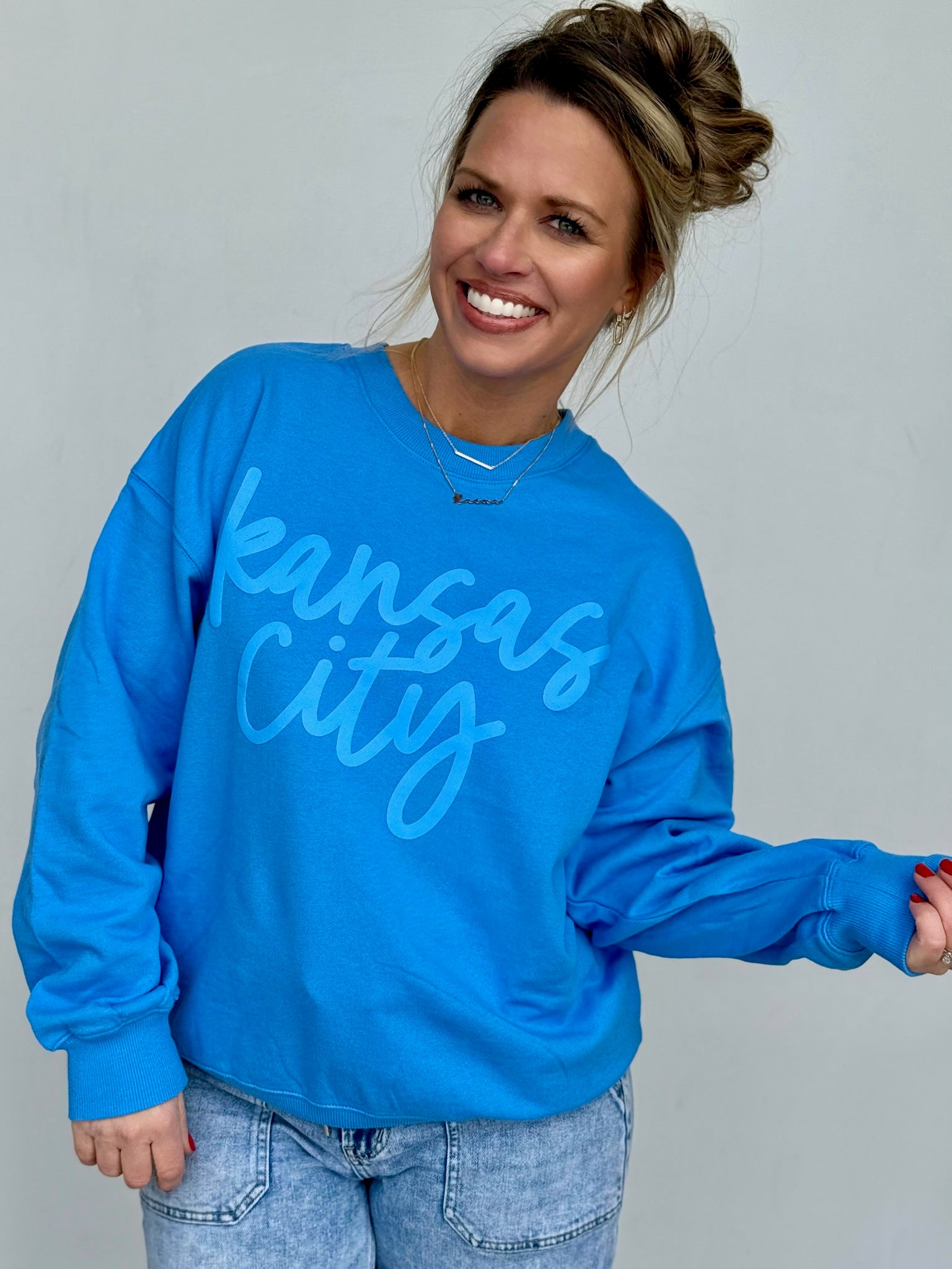 Get ready to rock the Tone on Tone Kansas City crewneck! With its puffy print that practically begs for a hug and a lightweight feel that's perfect for flitting about town, you'll be the envy of fashionistas and couch potatoes alike! (Seriously, who knew comfort could look this fly?)