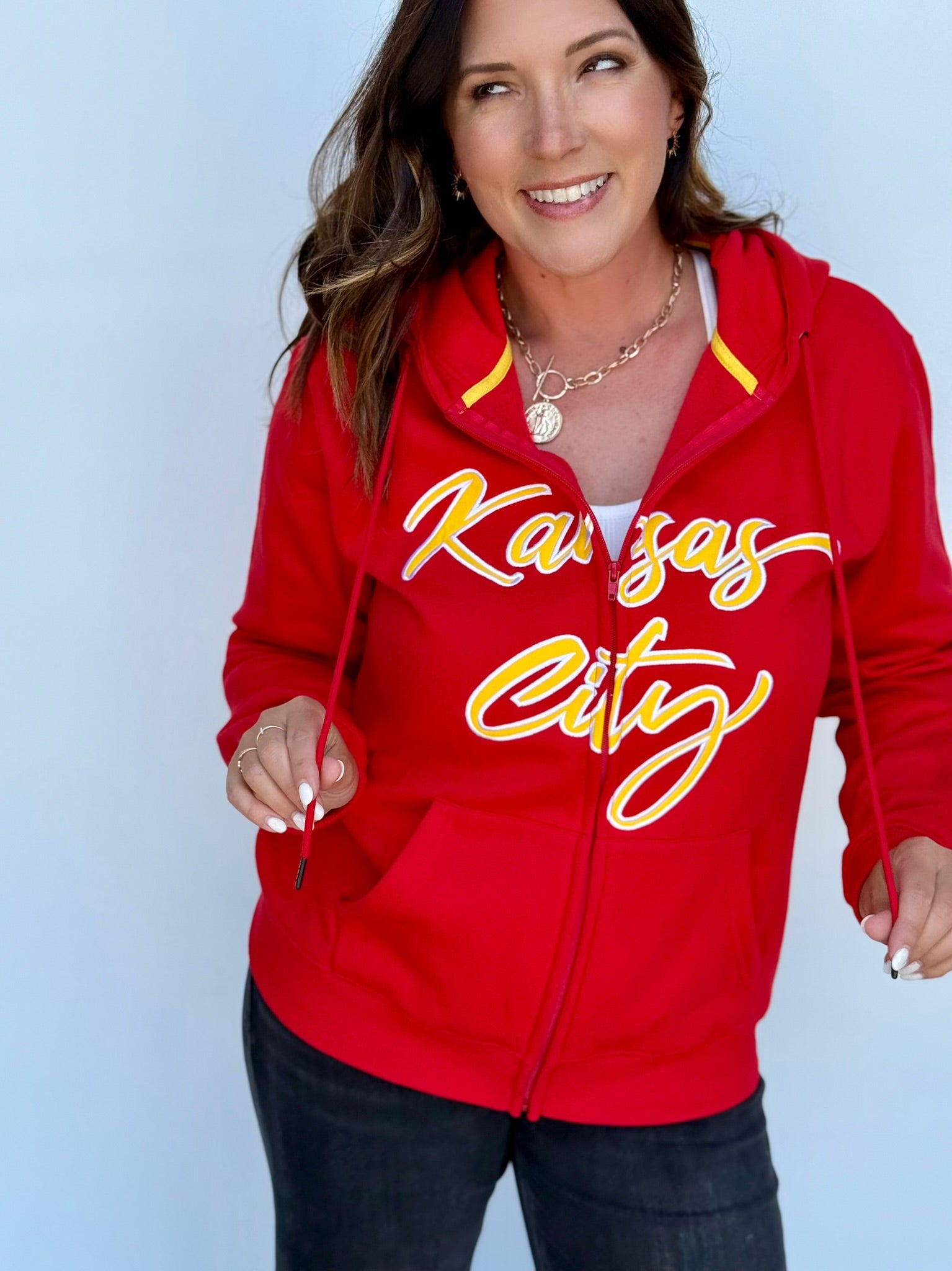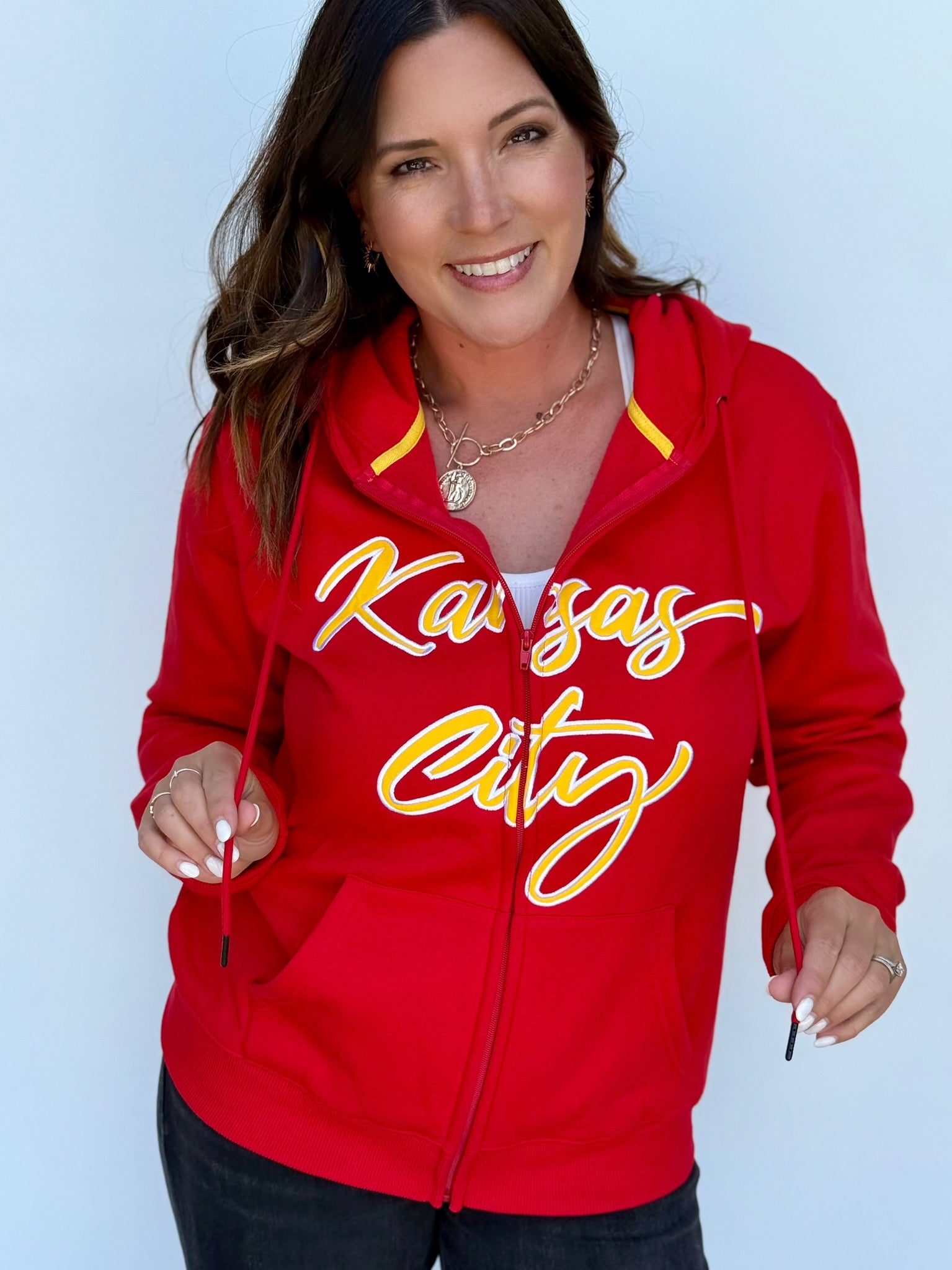 Don't forget to shop our Kansas City Collections! There's a reason every woman in Kansas City is wearing our KC hoodies and favorite crewneck sweatshirts. Love Letters carries the BEST women's shirts for Kansas City baseball fans and Kansas City football fans. Shop Kansas City t-shirts, long-sleeved tops and accessories today!