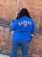 Stay stylish on game day with this officially licensed true to size KU Women’s Fleece Polo! In KU blue with a pop of red and yellow stripe on the sleeve, this polo features a 1/4 button for easy wear and is made of incredibly soft fleece. Perfect for cheering on your team in comfort and style!