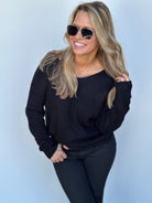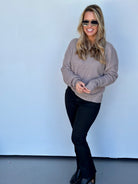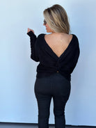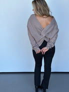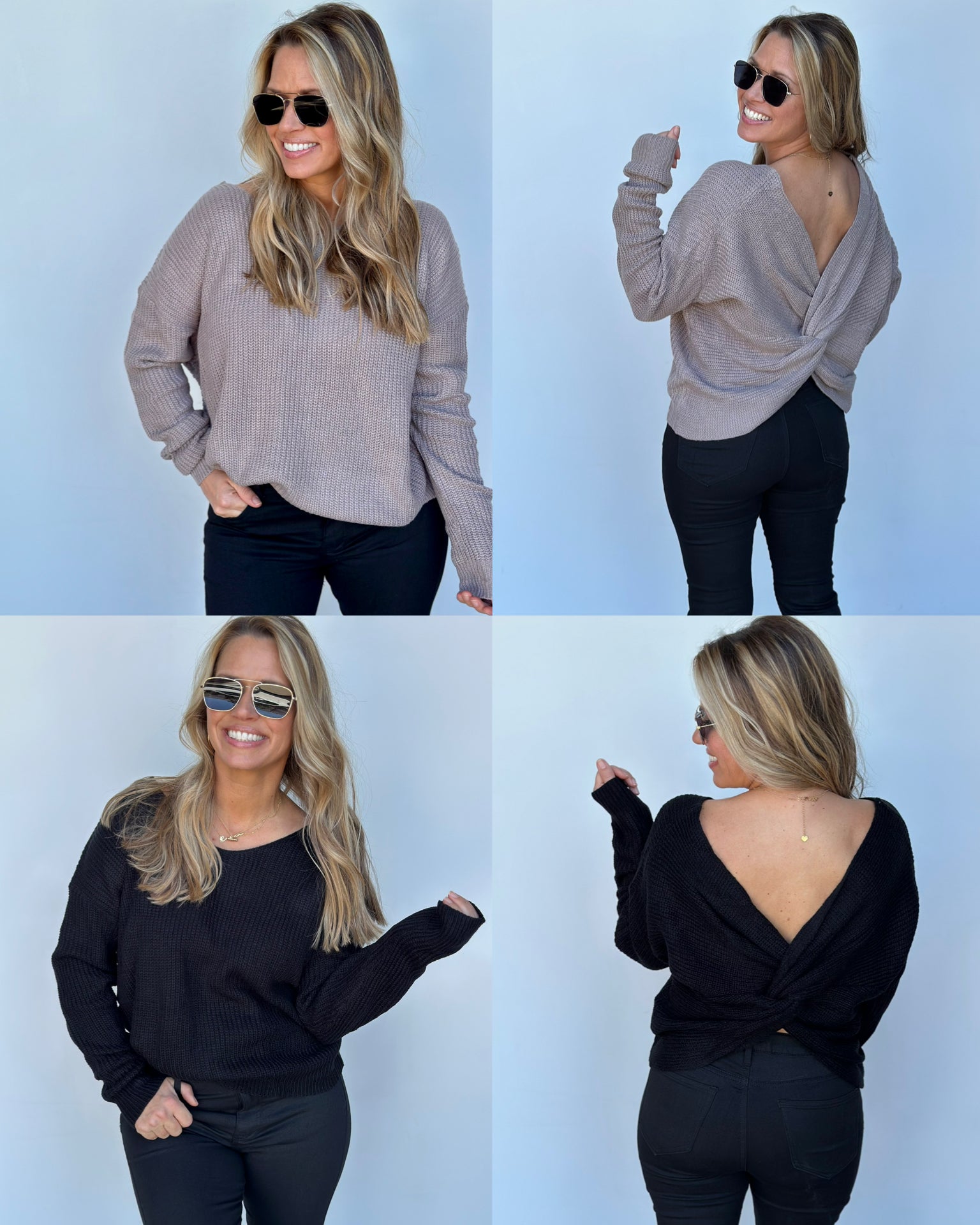 This lightweight twisted sweater comes in chic black and taupe, perfect for layering. Its playful twisted back detail adds a unique touch, while the slightly oversized fit lets you wear it effortlessly off the shoulder. True to size, it’s comfy and stylish for any casual day.