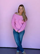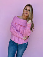 Pink Candy Off Shoulder Sweater