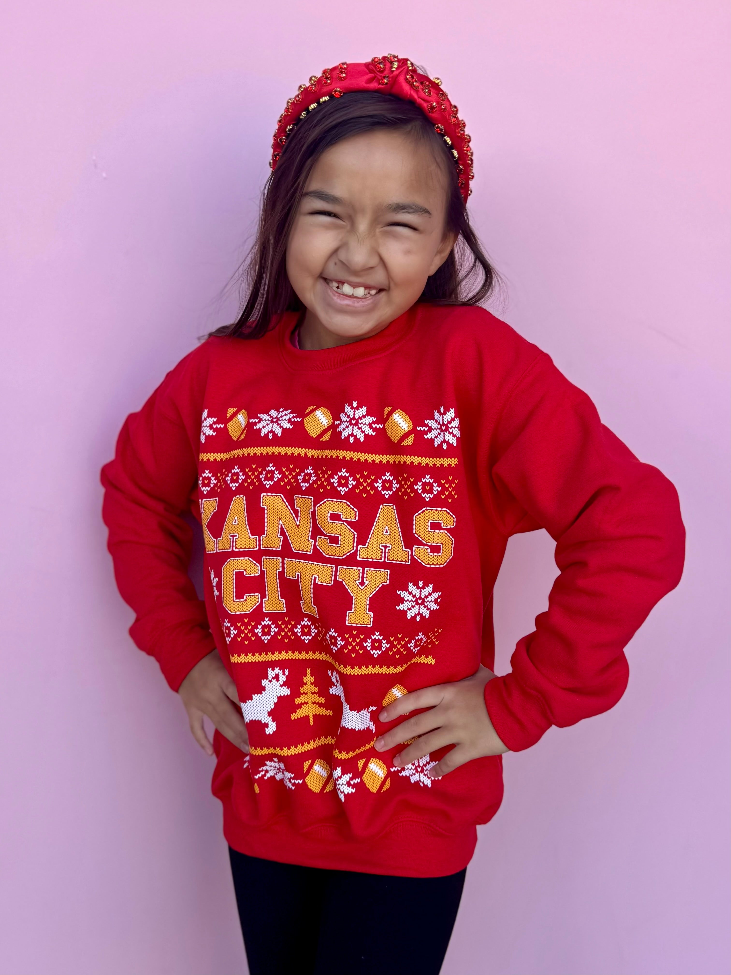 Turn up the holiday cheer with this youth KC Christmas 2.0! Revamped from last season, this holiday must-have is sure to make your festivities brighter and merrier. Get ready to celebrate in style with KC Christmas 2.0!
