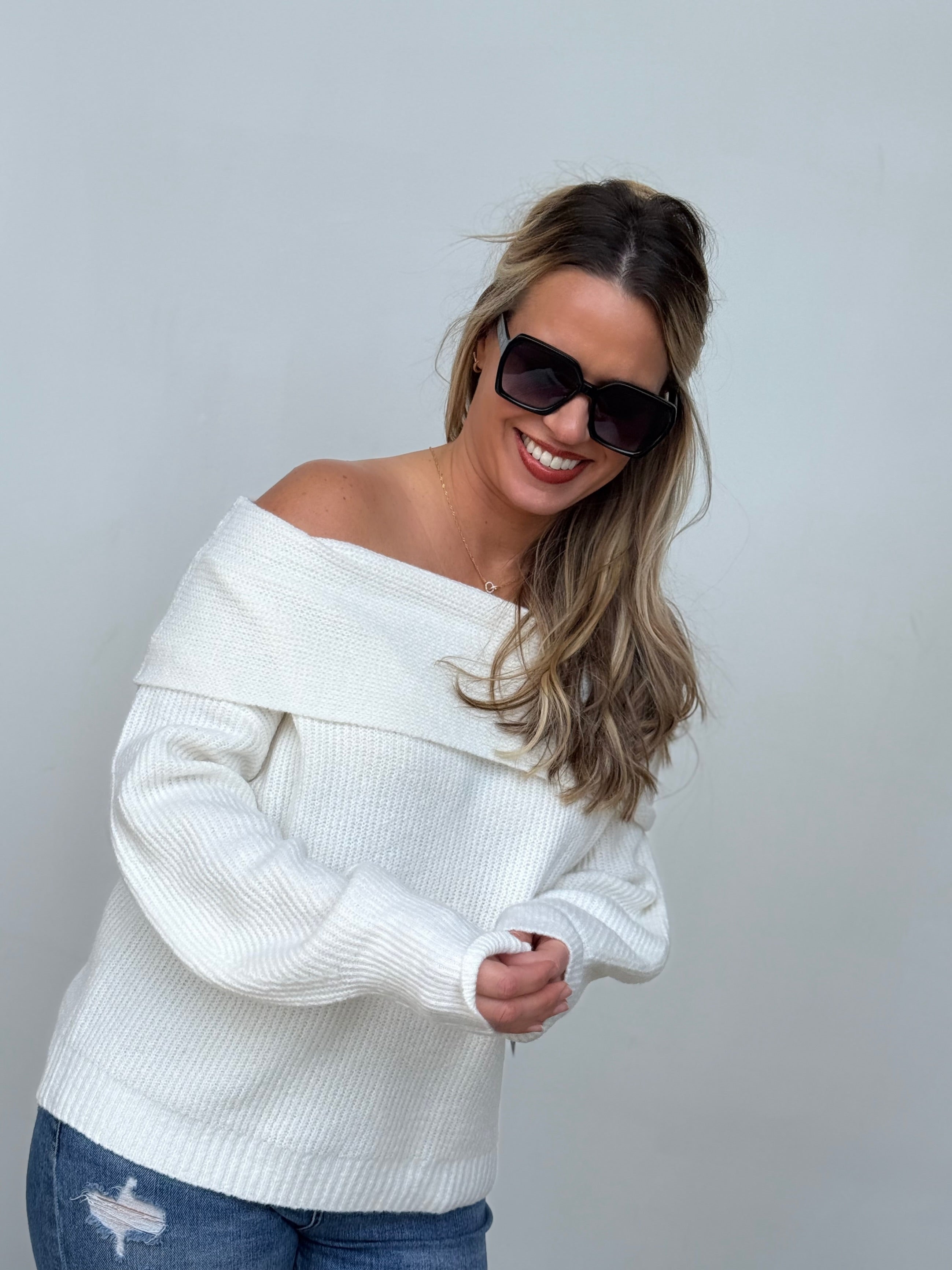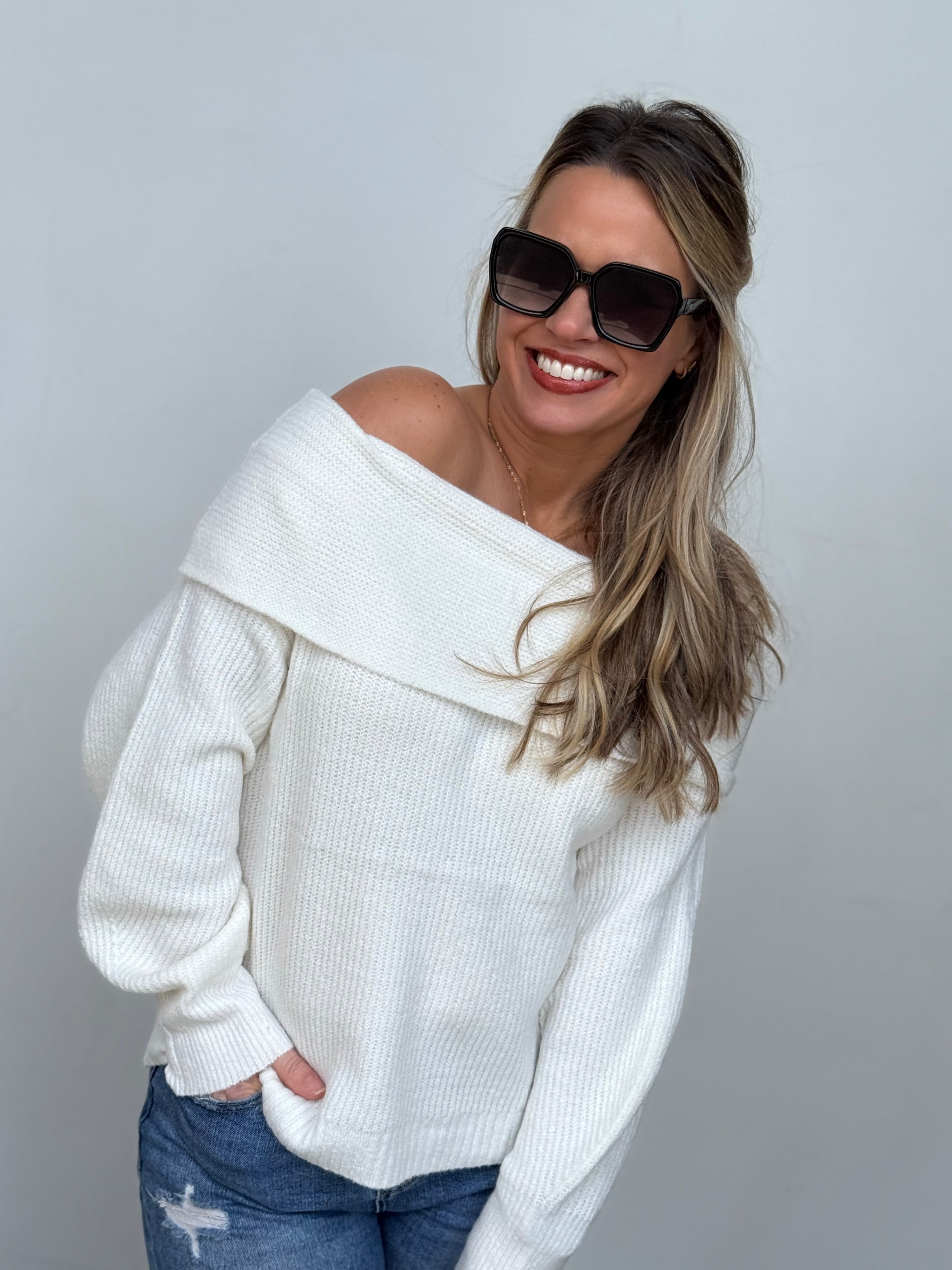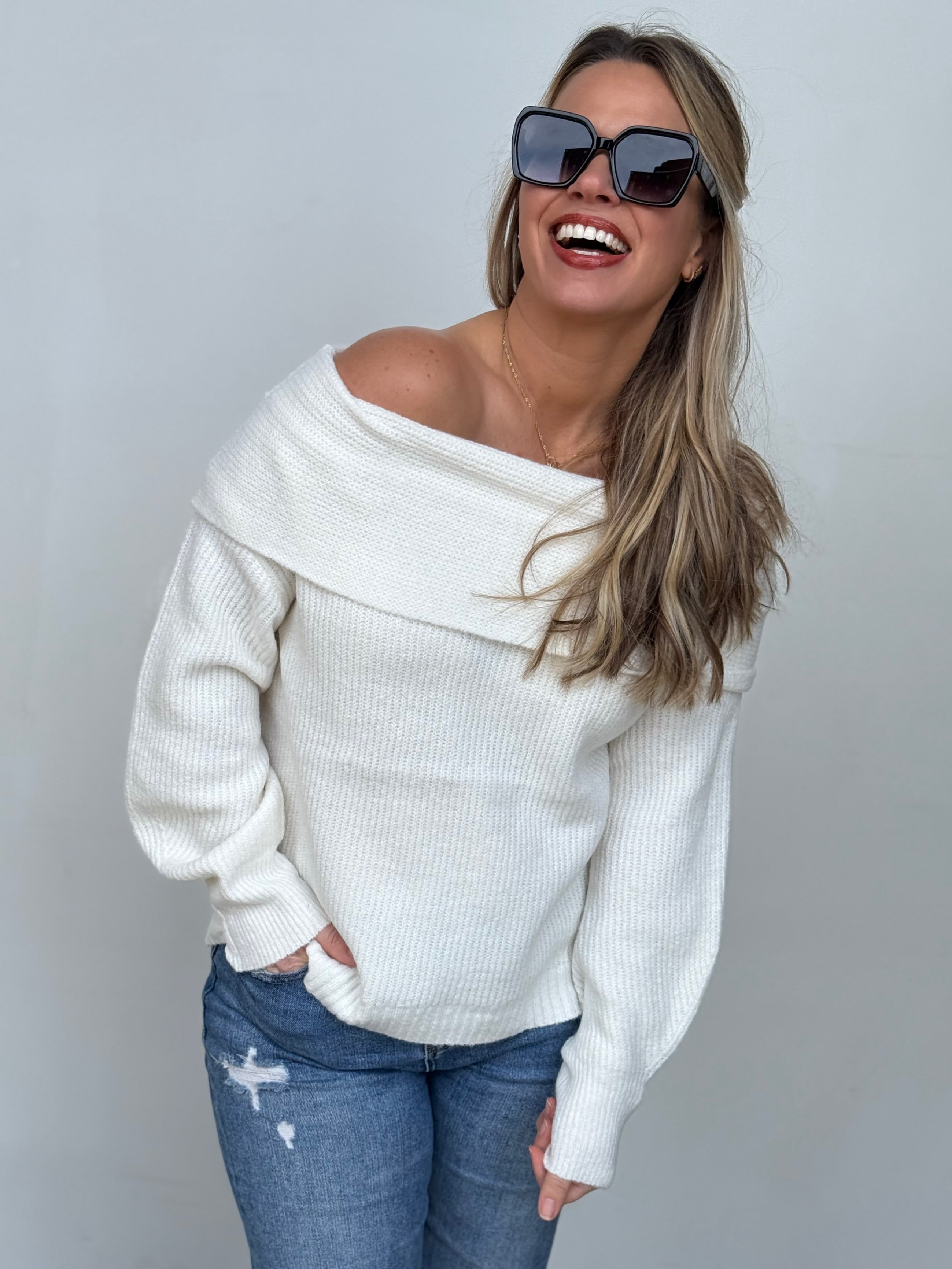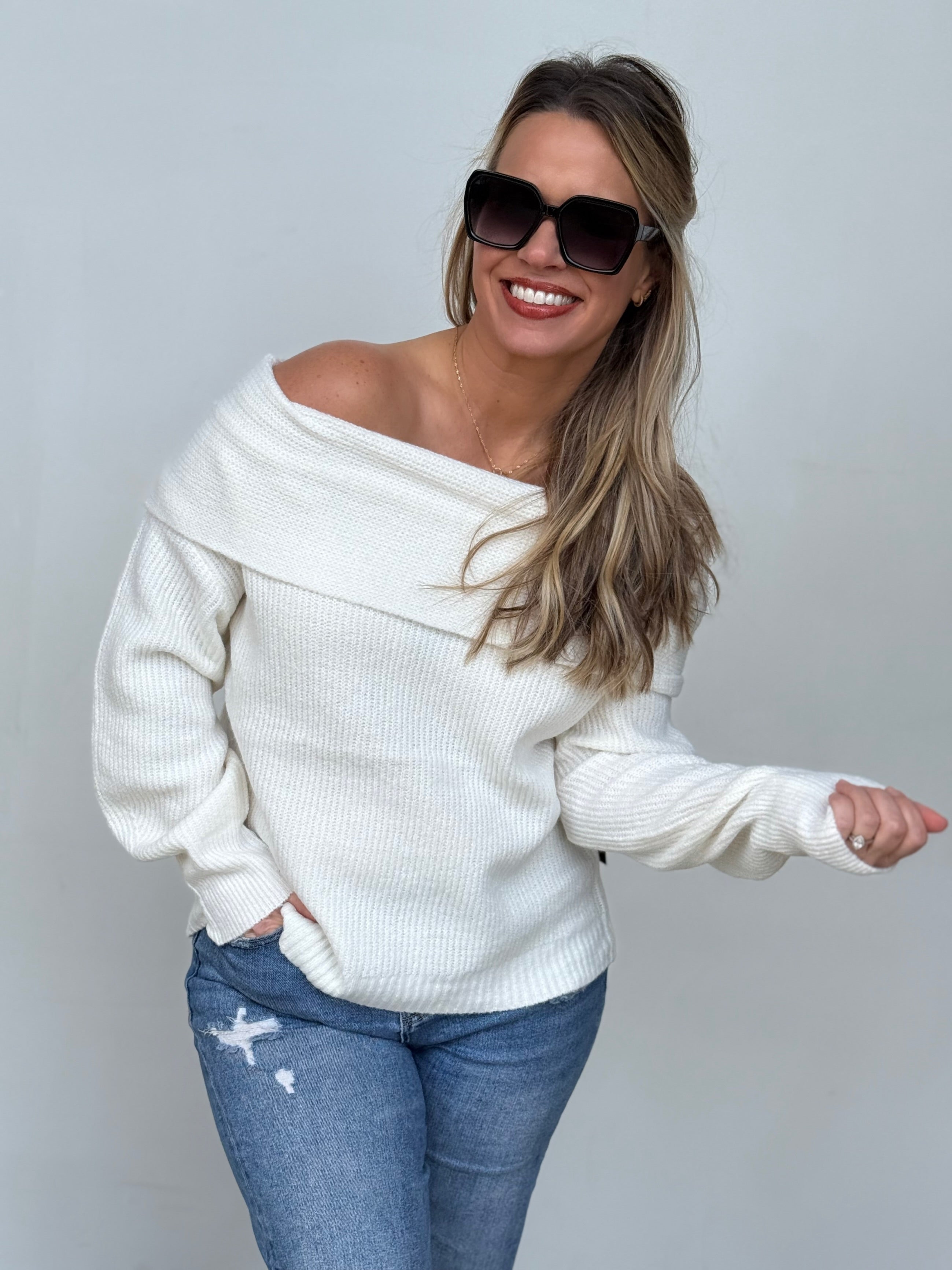 Slip into effortless elegance with this cream off-shoulder sweater that's as breezy as it is chic. Lightweight and perfectly true to size, it's your go-to piece for showing a little shoulder while staying cozy. Whether you're dressing it up for a night out or keeping it casual with your favorite jeans, this sweater delivers style without the bulk. Pure comfort meets pure charm.