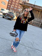 Get ready to score some style points with our End Zone Black Sweater! Made from soft material, this sweater will keep you cozy and comfortable while showing off your love for Kansas City. Perfect for game days or just everyday wear. Touchdown!