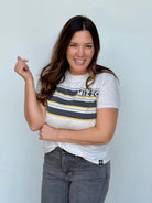 Throw on this officially licensed Mizzou tee and celebrate in style. Crafted from super soft fabric that feels as good as it looks, it's cut slightly cropped and keeps things light with a breathable, weightless feel. A playful stripe detail runs across the front for that extra touch of personality. True to size, it's the perfect piece for game day or everyday wear.